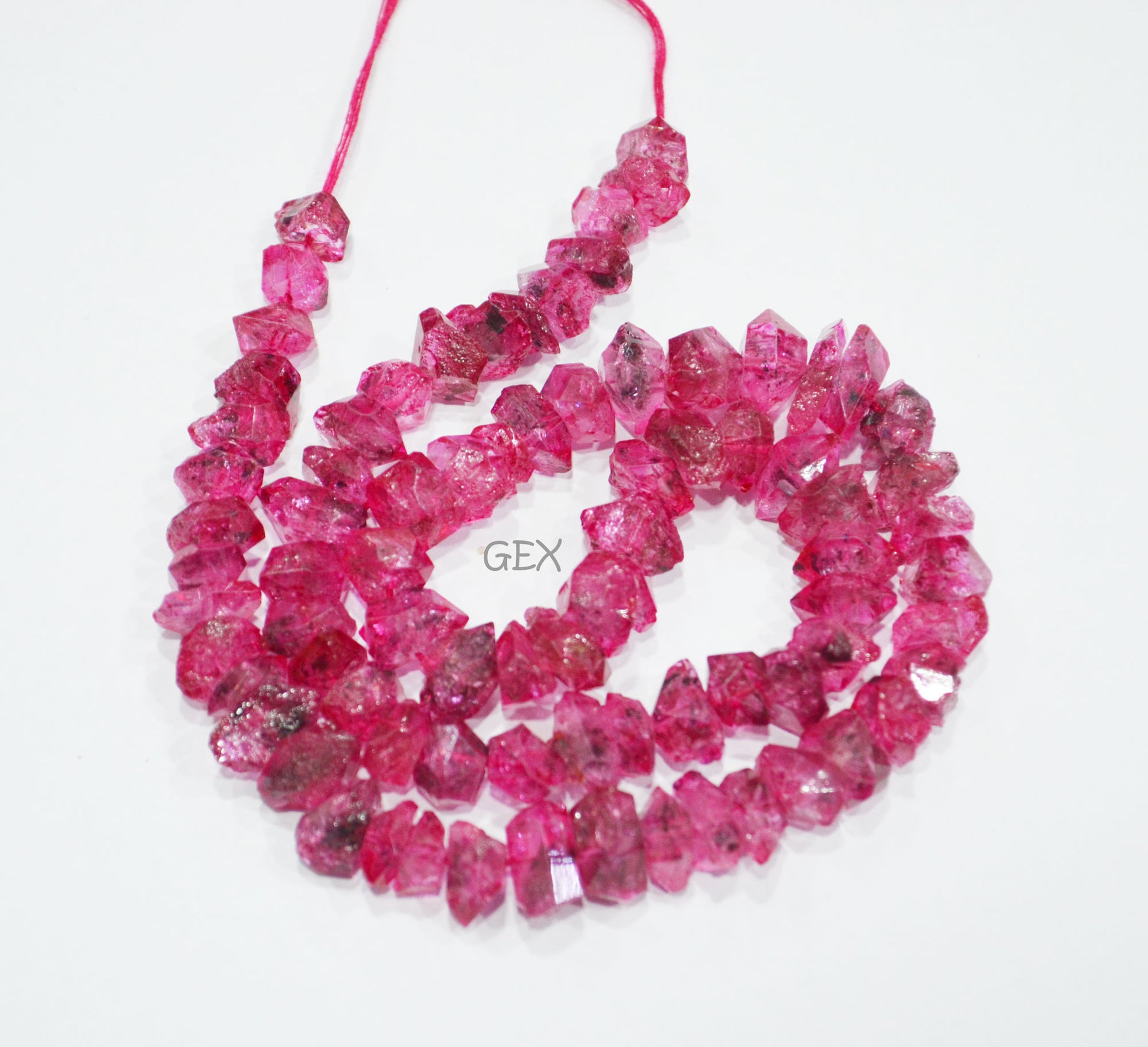 Pink Coated Herkimer Quartz Faceted Nuggets Shape Beads , Pink Coated Herkimer Quartz Faceted Beads , 16 Inches , 7x8 - 8x10 mm , 31858