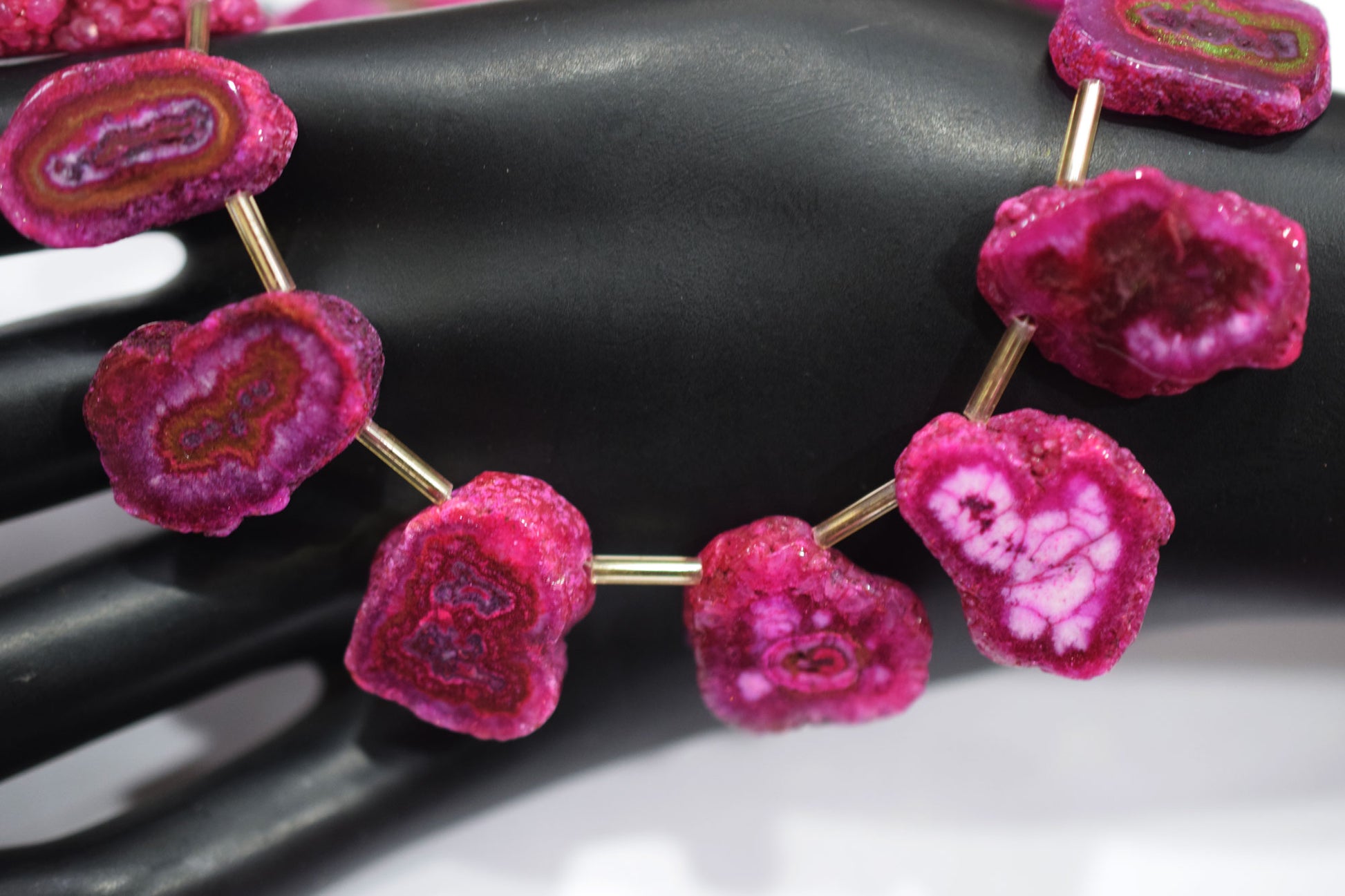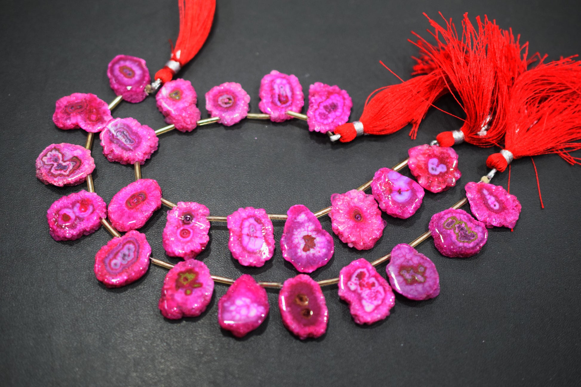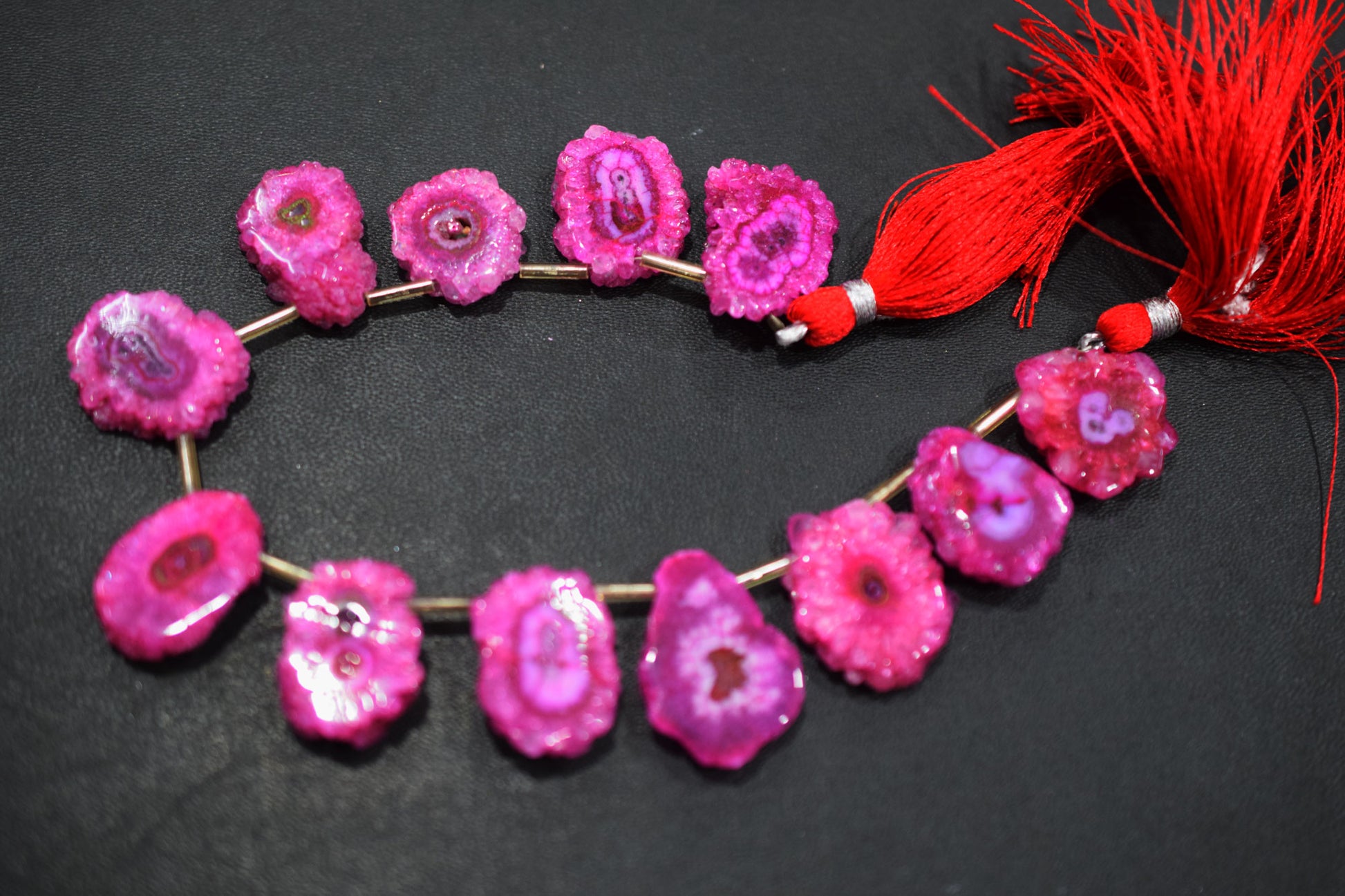Pink Color Druzy Nuggets Shape Briolettes , Pink Color Druzy Smooth Beads , Pink Druzy , Sold By Strand , 14x20 - 19x23 mm , 8" , Β 20652