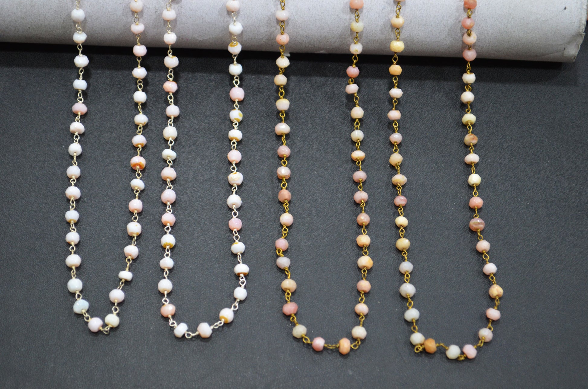 Pink Opal Faceted Rondelle Shape Rosary Beaded Chain , Pink Opal Wire Wrapped Chain , 4 - 4.50 mm , RB-5723