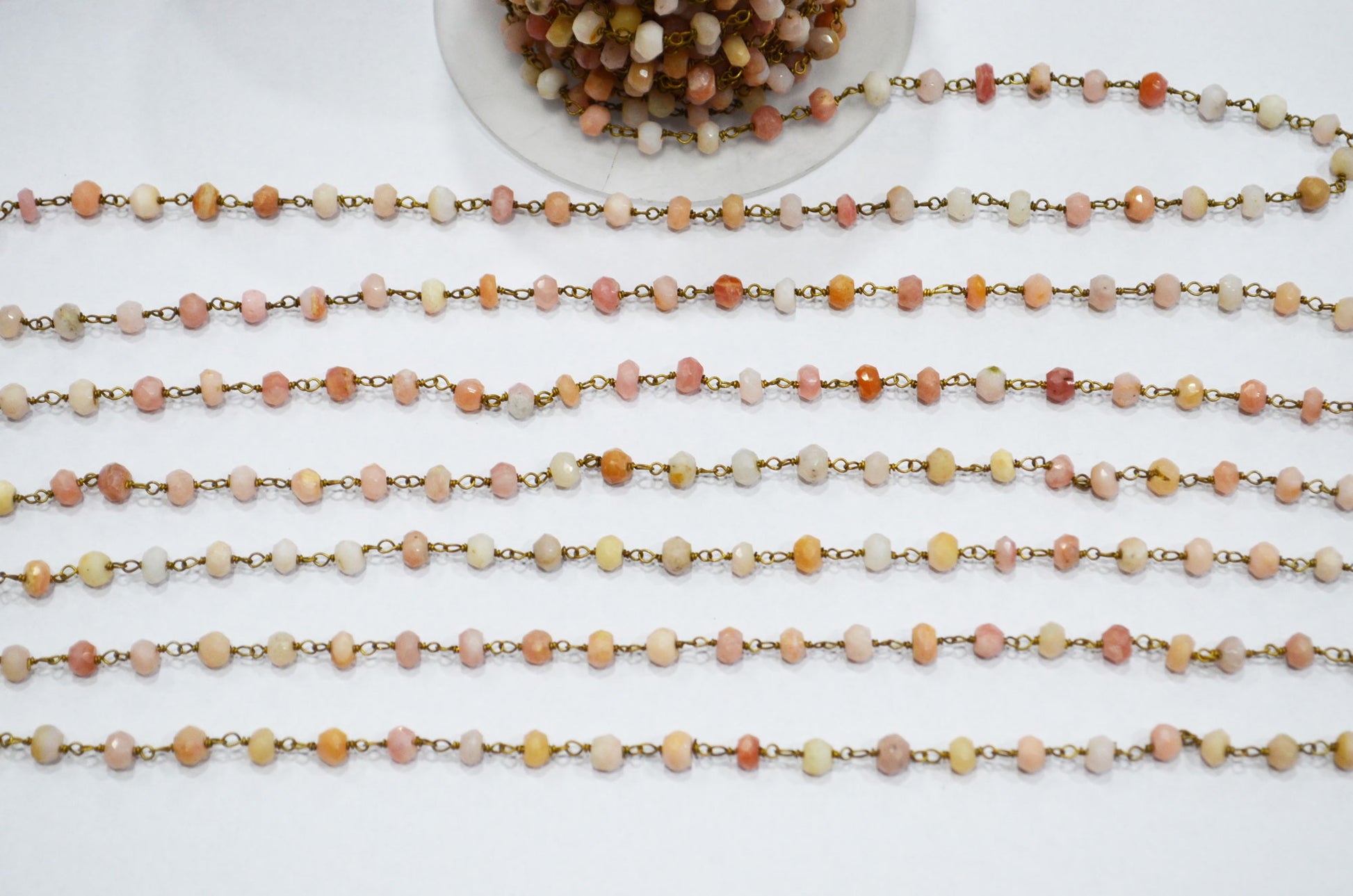 Pink Opal Faceted Rondelle Shape Rosary Beaded Chain , 4 - 4.50 mm , RB-5723