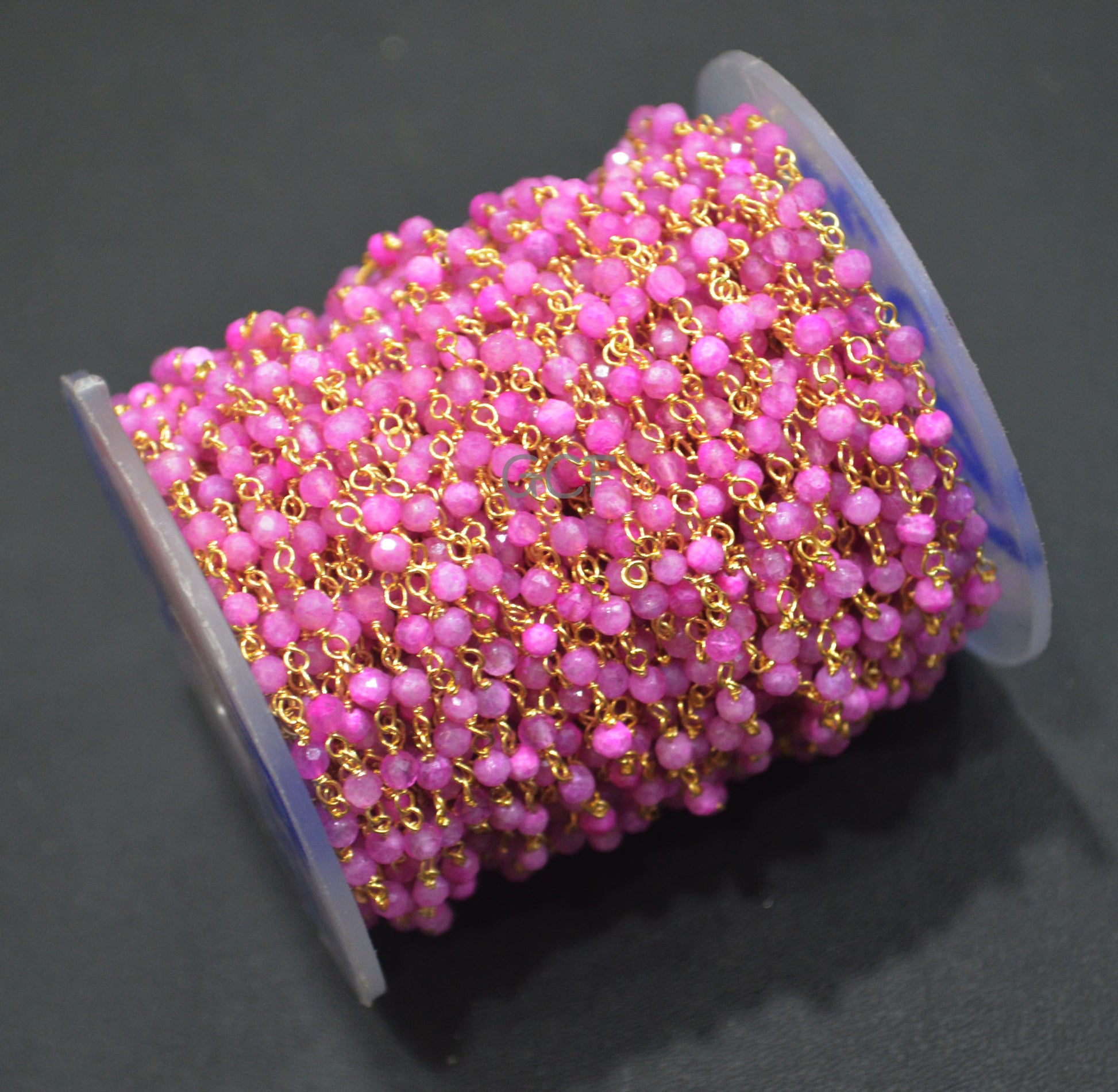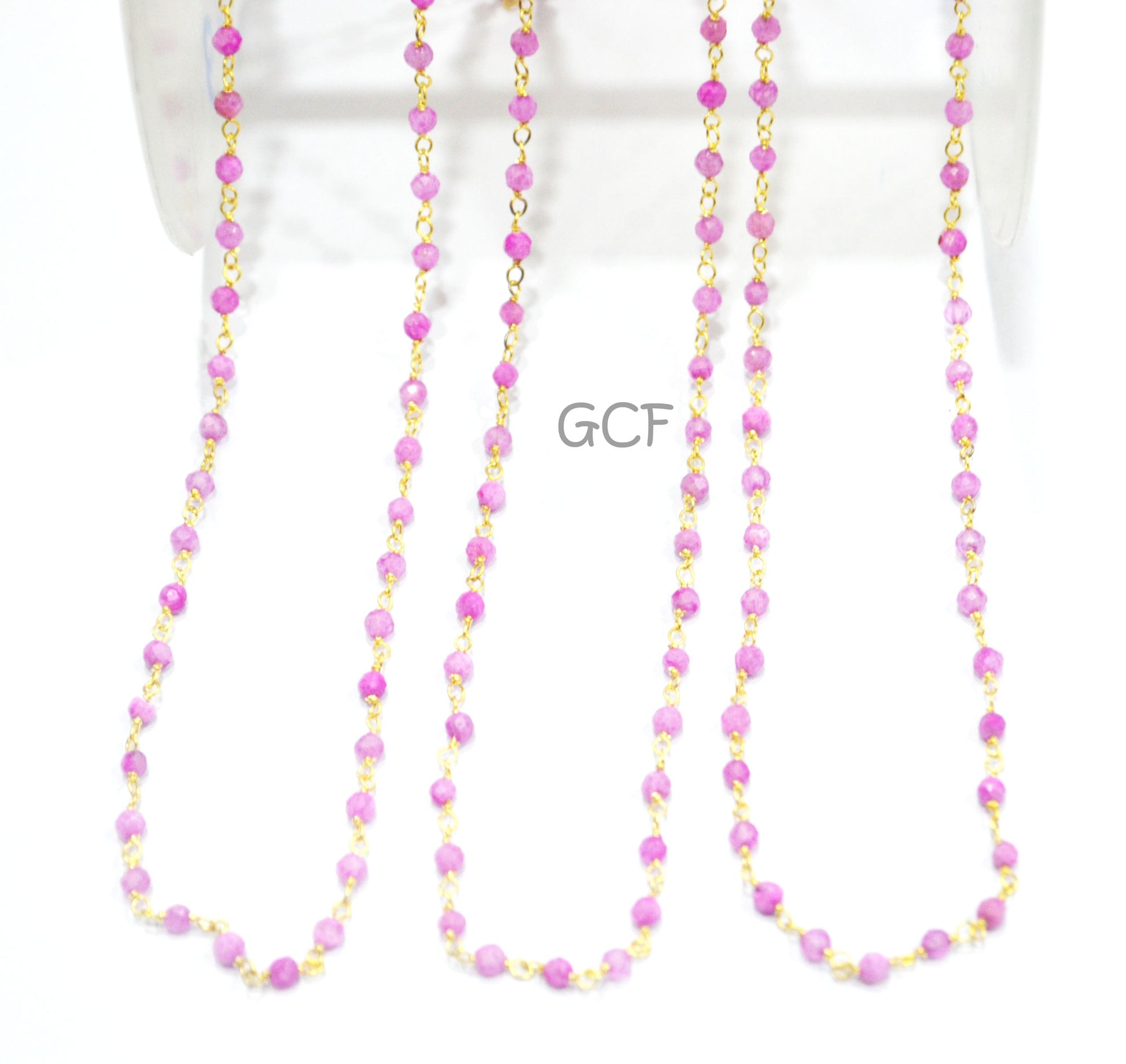 Pink Rainbow Moonstone Faceted Round Shape Rosary Chain , Mystic Coated Pink Moonstone Wire Wrapped Chain , 2 mm , 6923