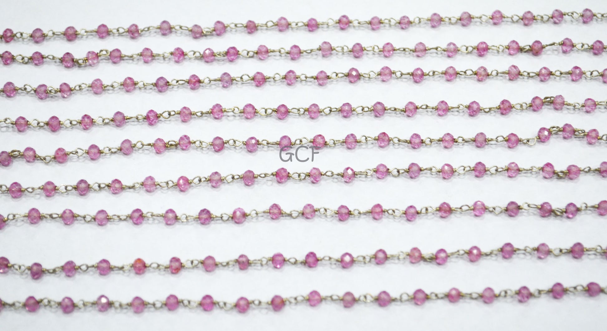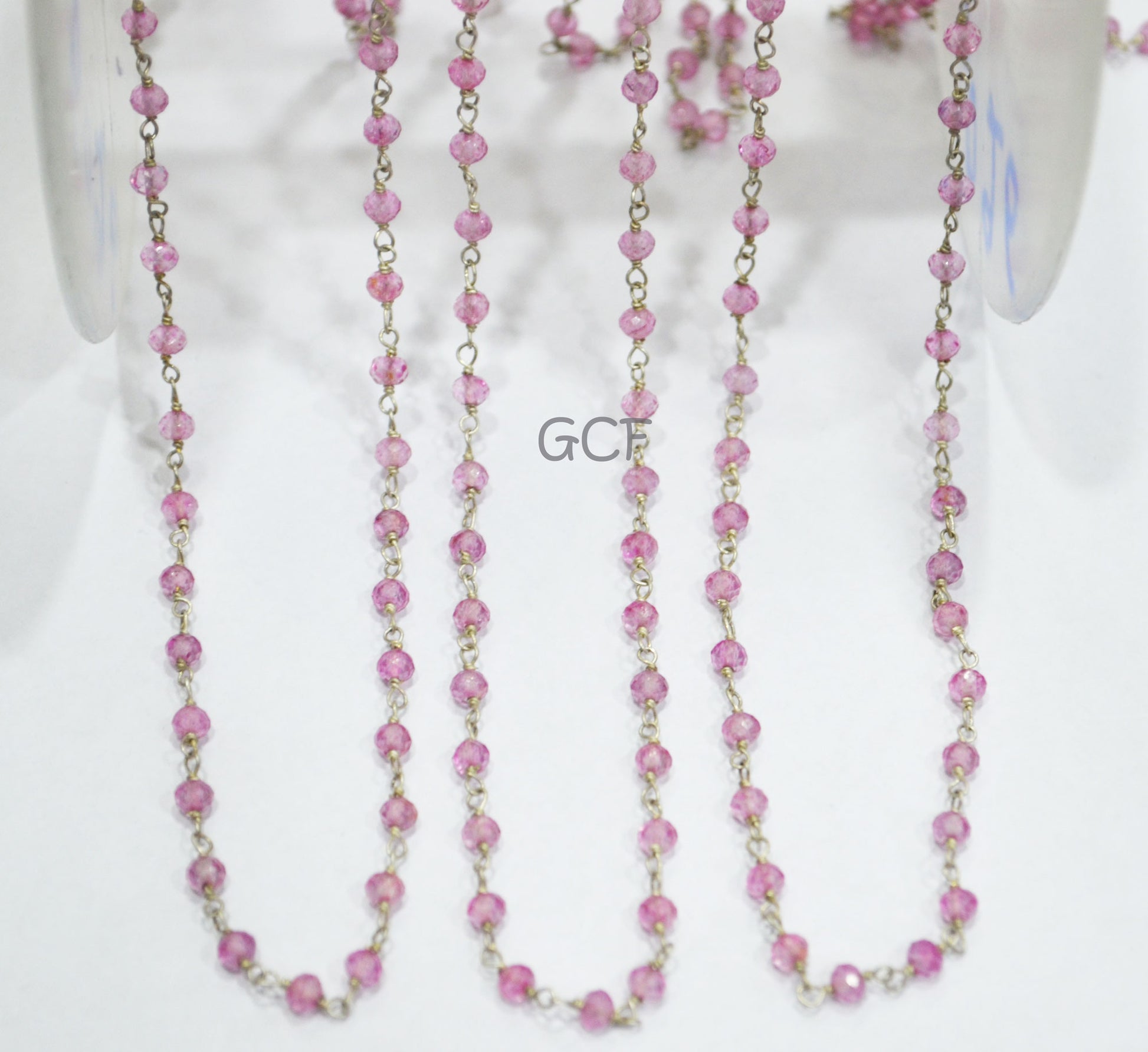 Pink Topaz Faceted Rondelle Shape Rosary Beaded Chain , Pink Topaz Wire Wrapped ChainΒ , 3 - 3.50 mm , 6759