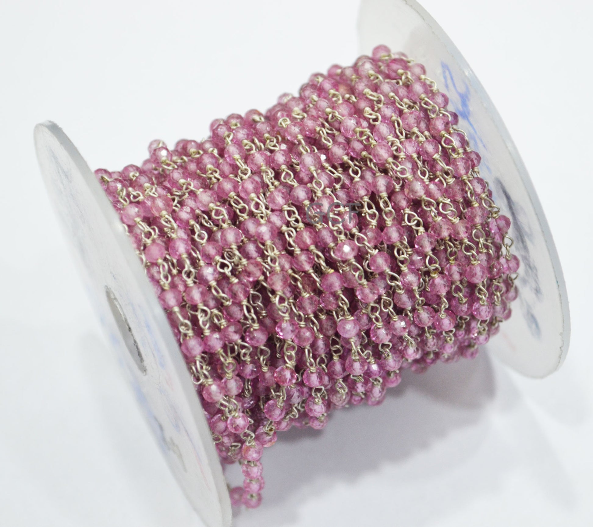 Pink Topaz Faceted Rondelle Shape Rosary Beaded Chain , Pink Topaz Wire Wrapped Chain , 3 - 3.50 mm , 6759