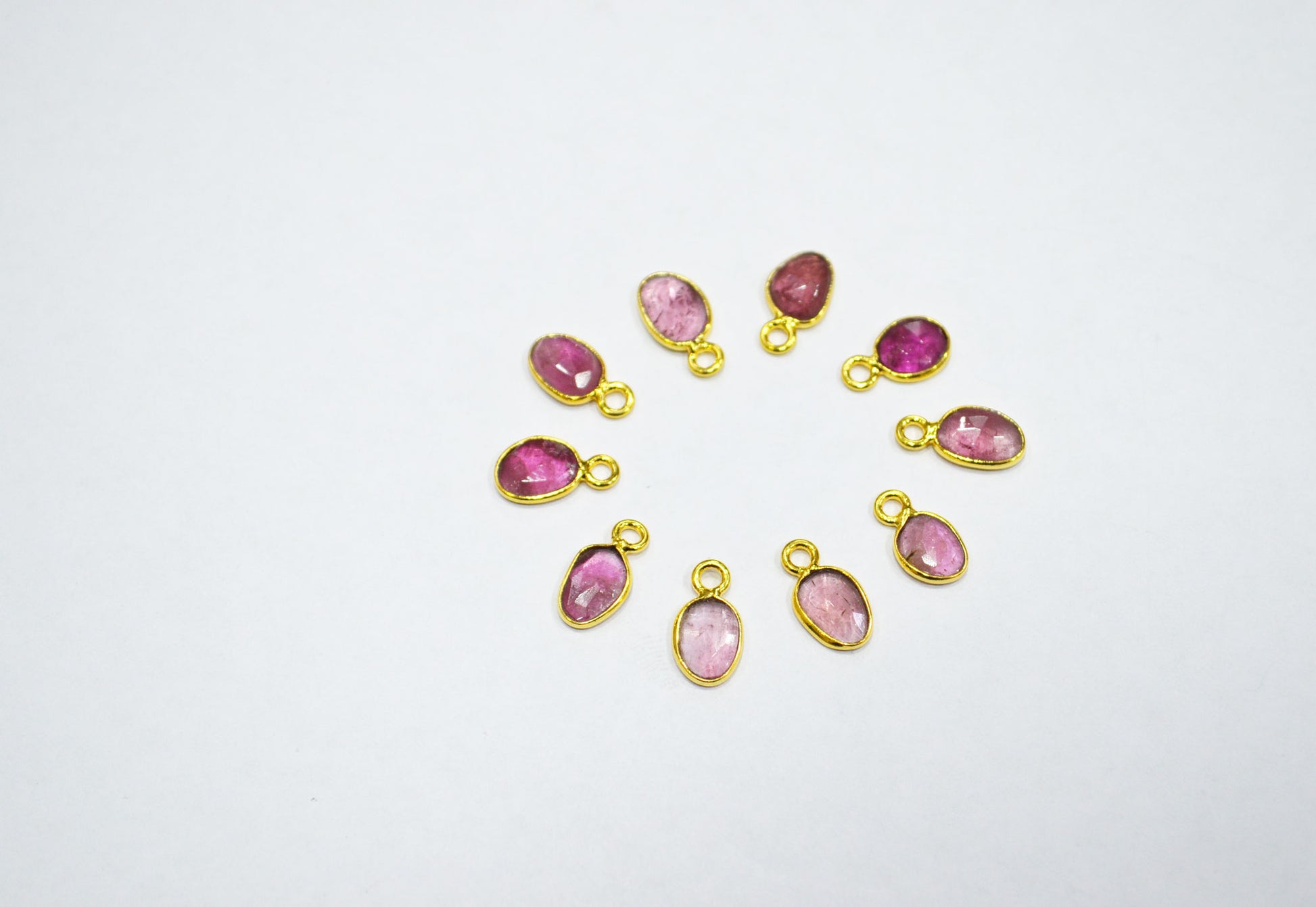 Pink Tourmaline Faceted Free Form Shape Connector , Pink Tourmaline Slice Shape Single Bail Bezel Connector , Sold By Piece , 6x7 - 7x9 mm , RB-7406