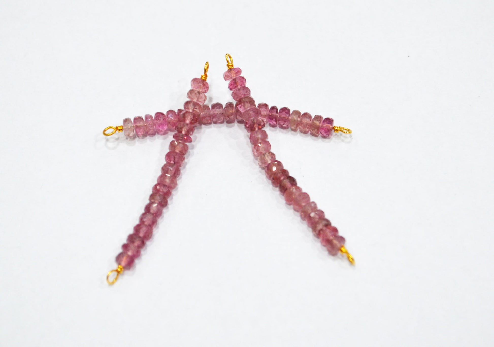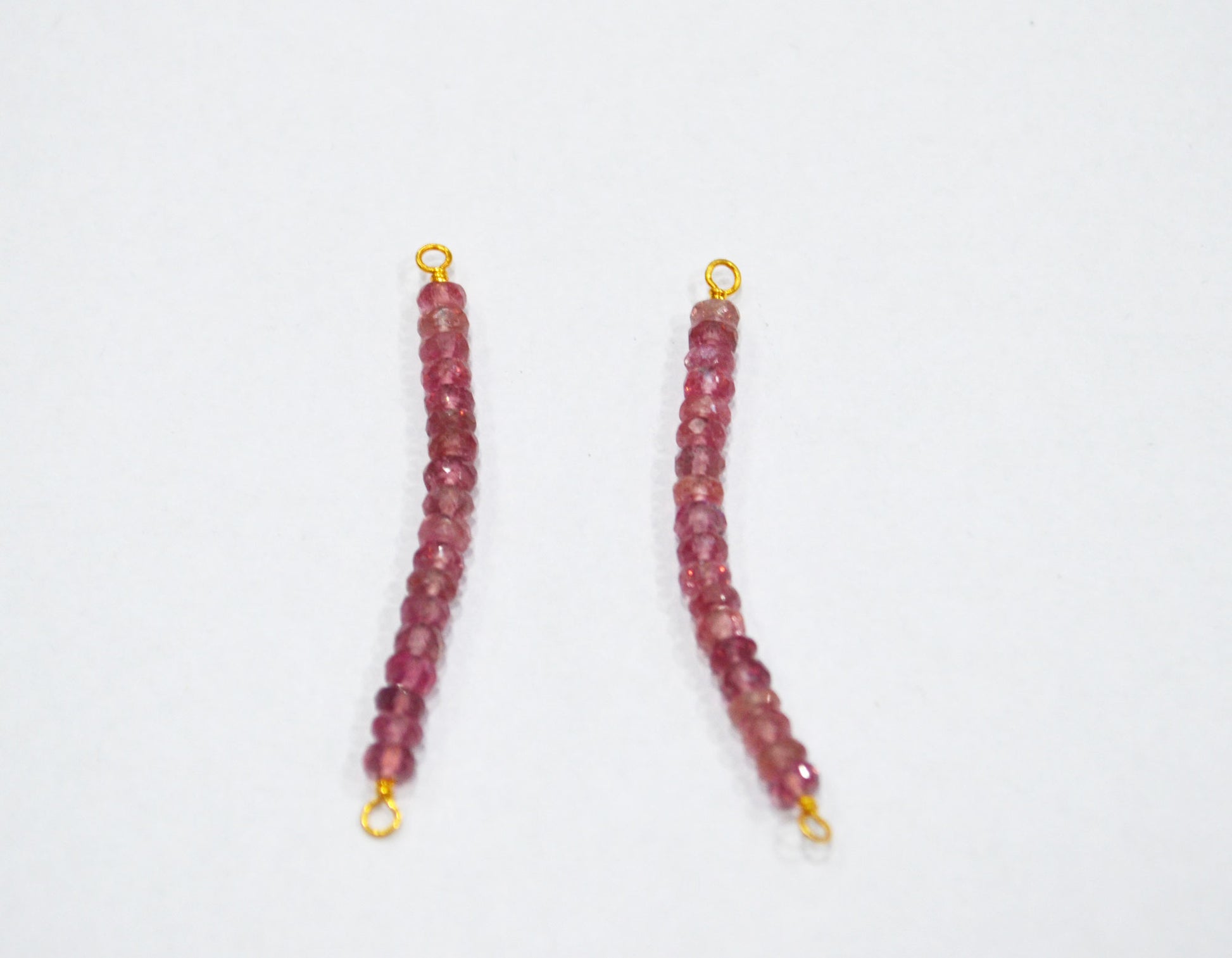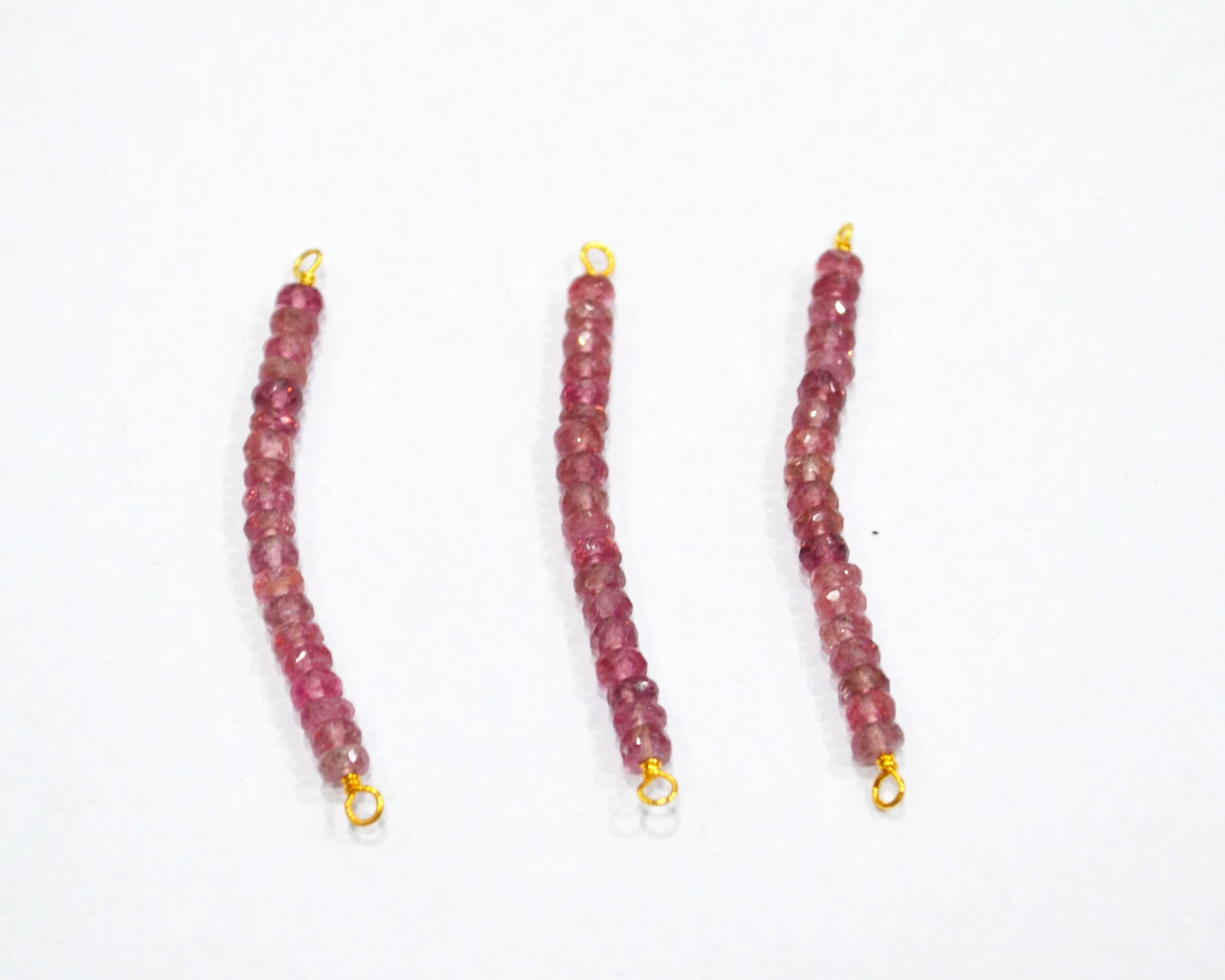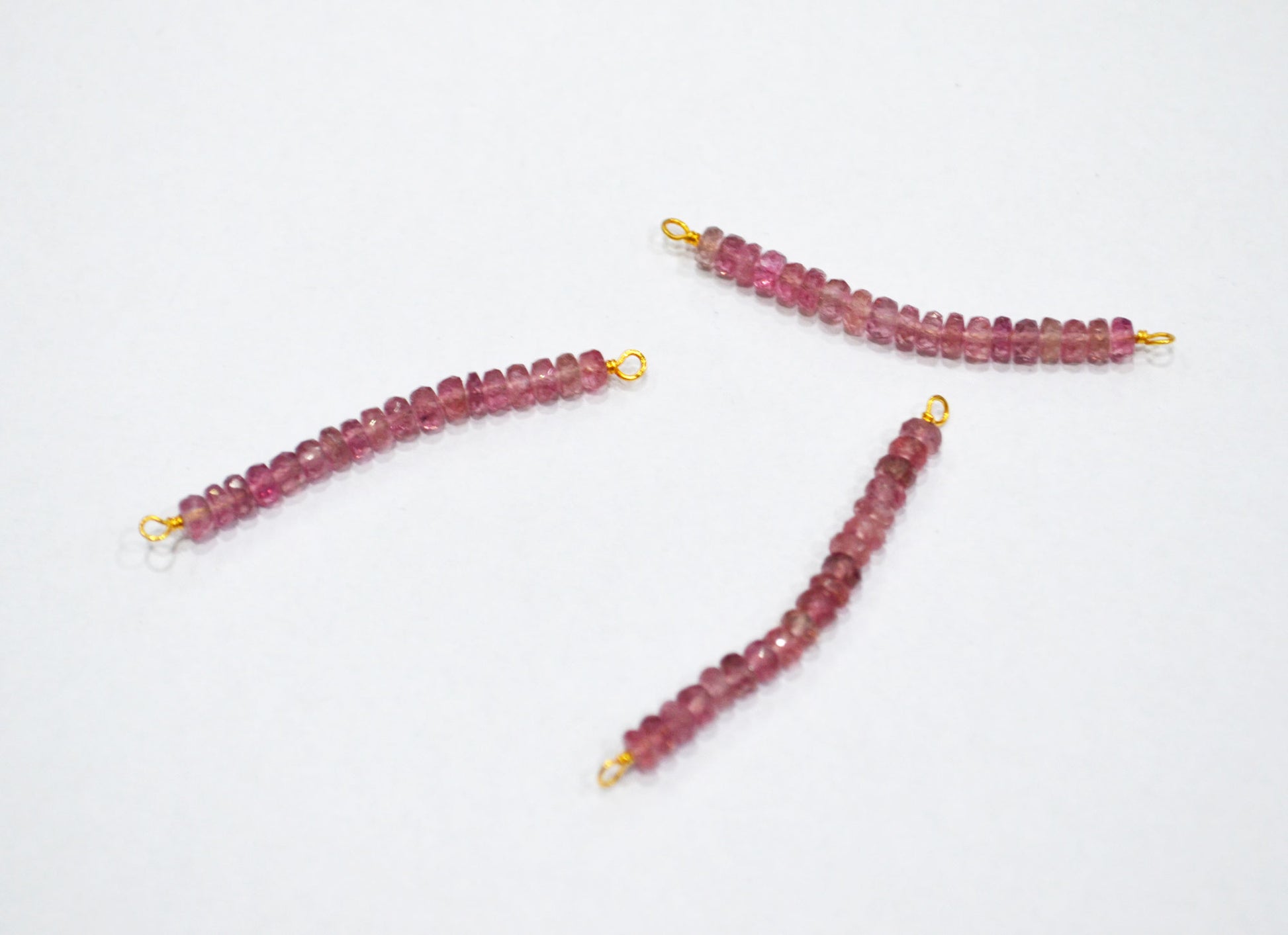 Pink Tourmaline Faceted Rondelle Shape Charm , Pink Tourmaline Gold Plated Wire Wrapped Bar , Sold By Piece , 30 - 35 mm , RB-6361