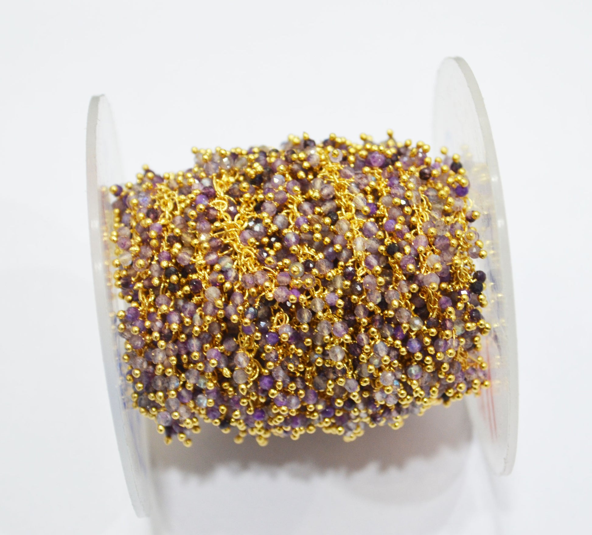 Purple Labradorite Faceted Round Shape Grape Chain , 3 mm , RB-6661