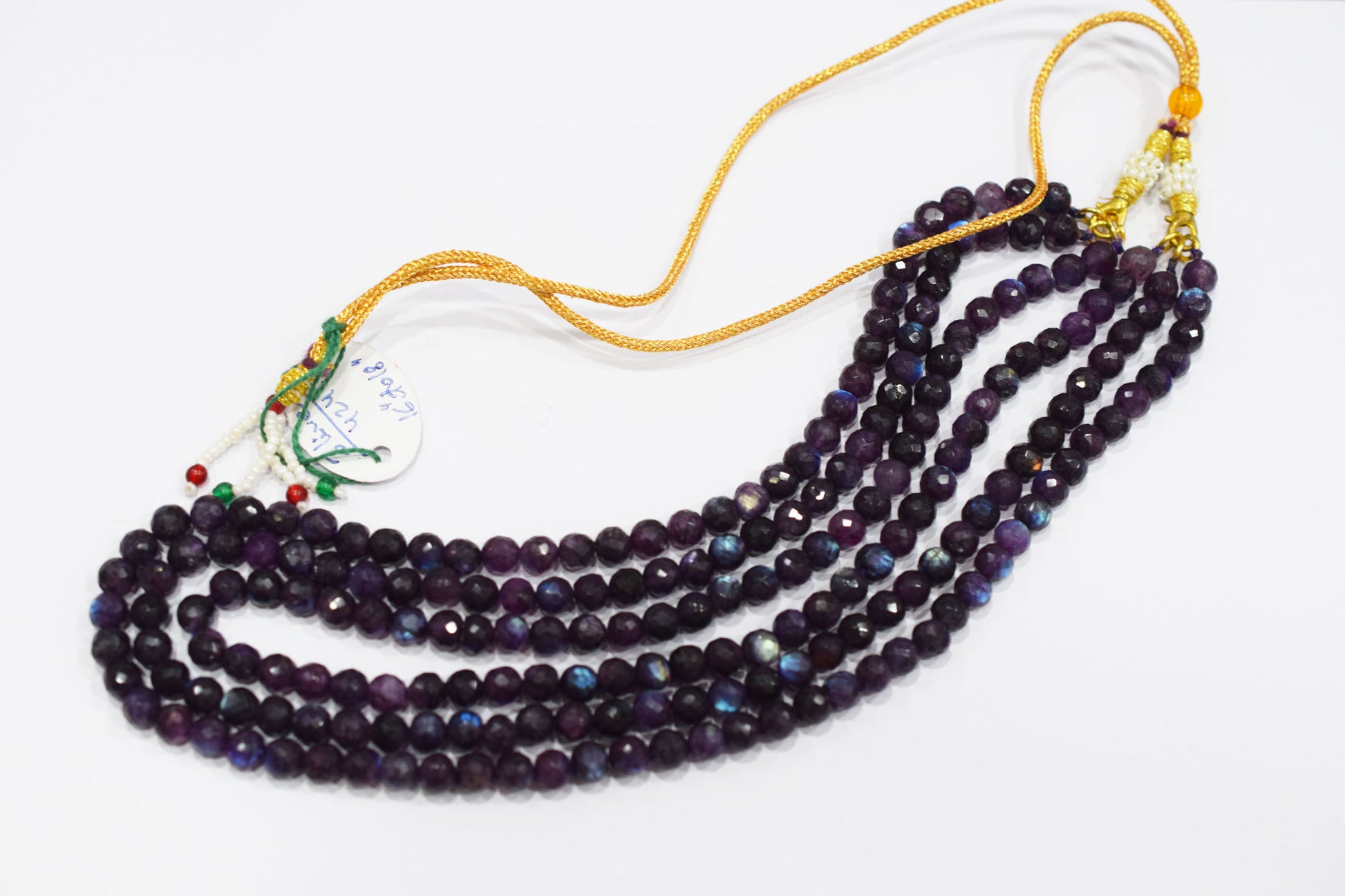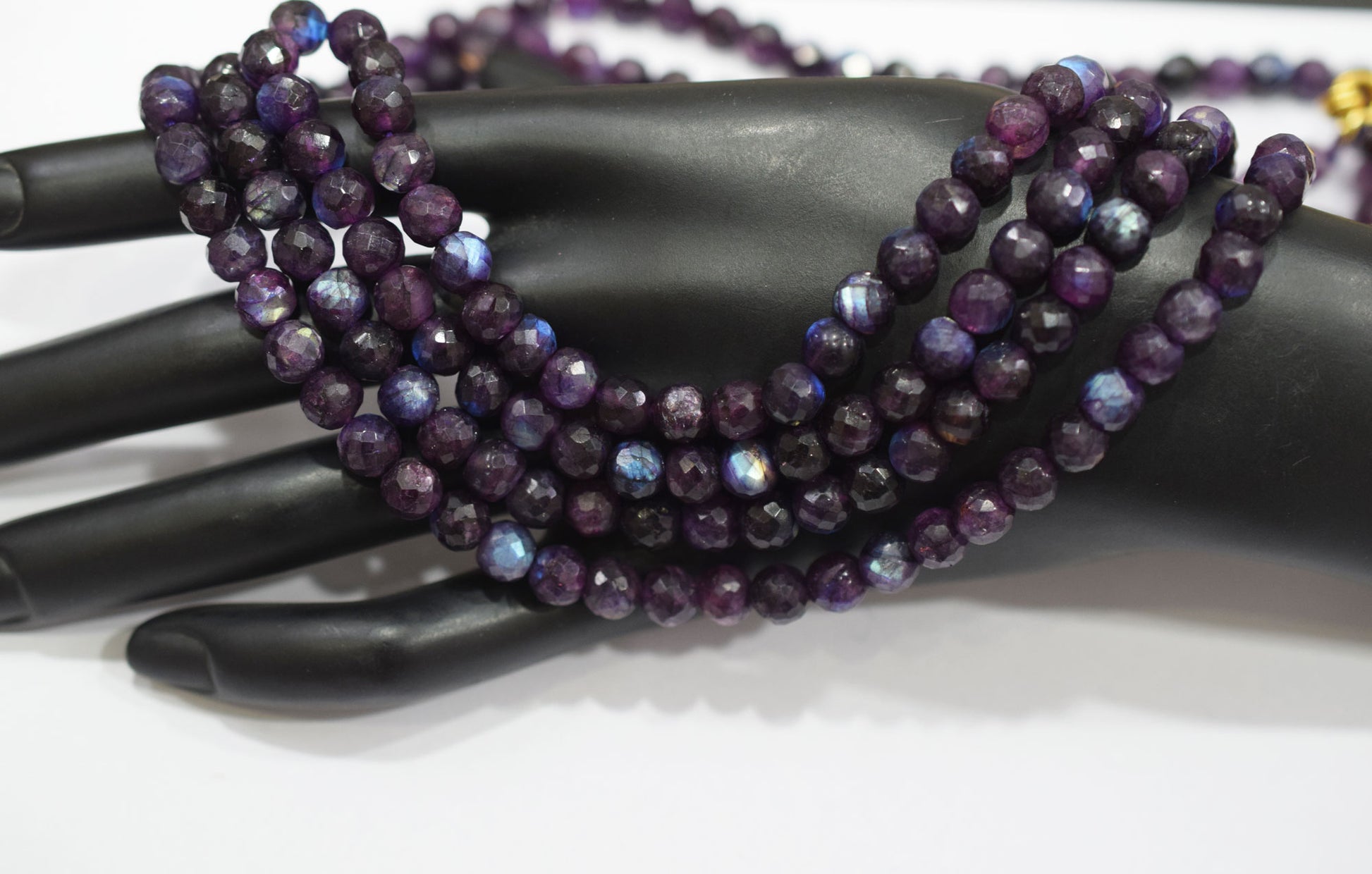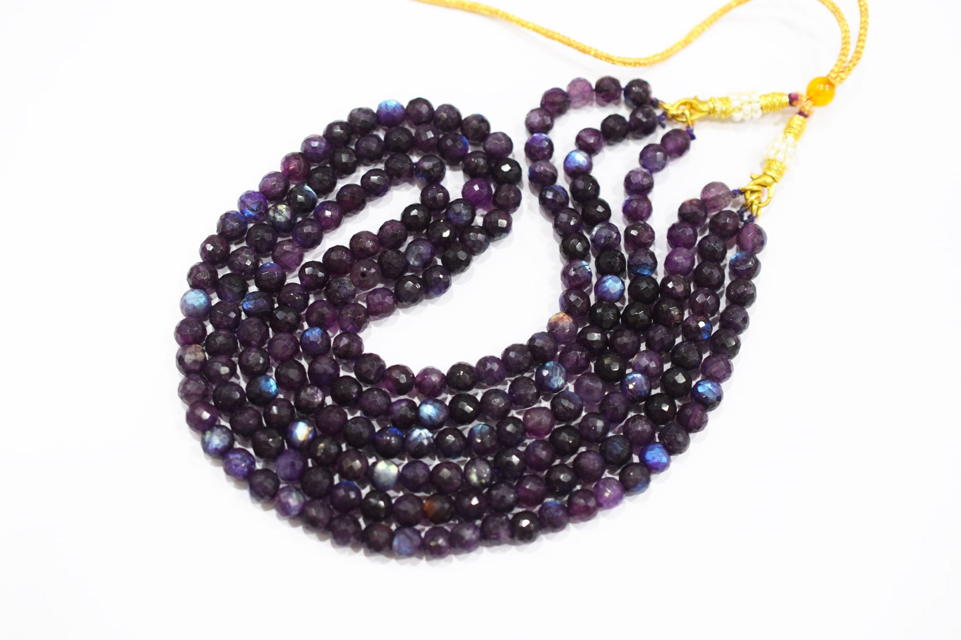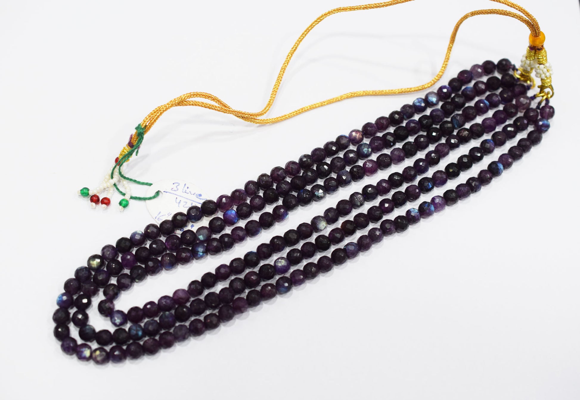 Purple Labradorite Faceted Round Shape Necklace , 3 Line Necklace 16 - 18 Inches Long With Adjustable Tussle , 6.50 mm , 20669