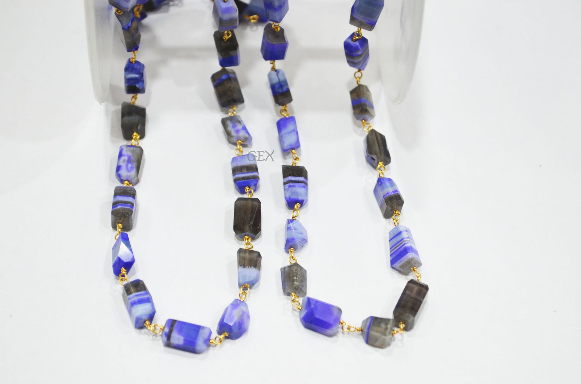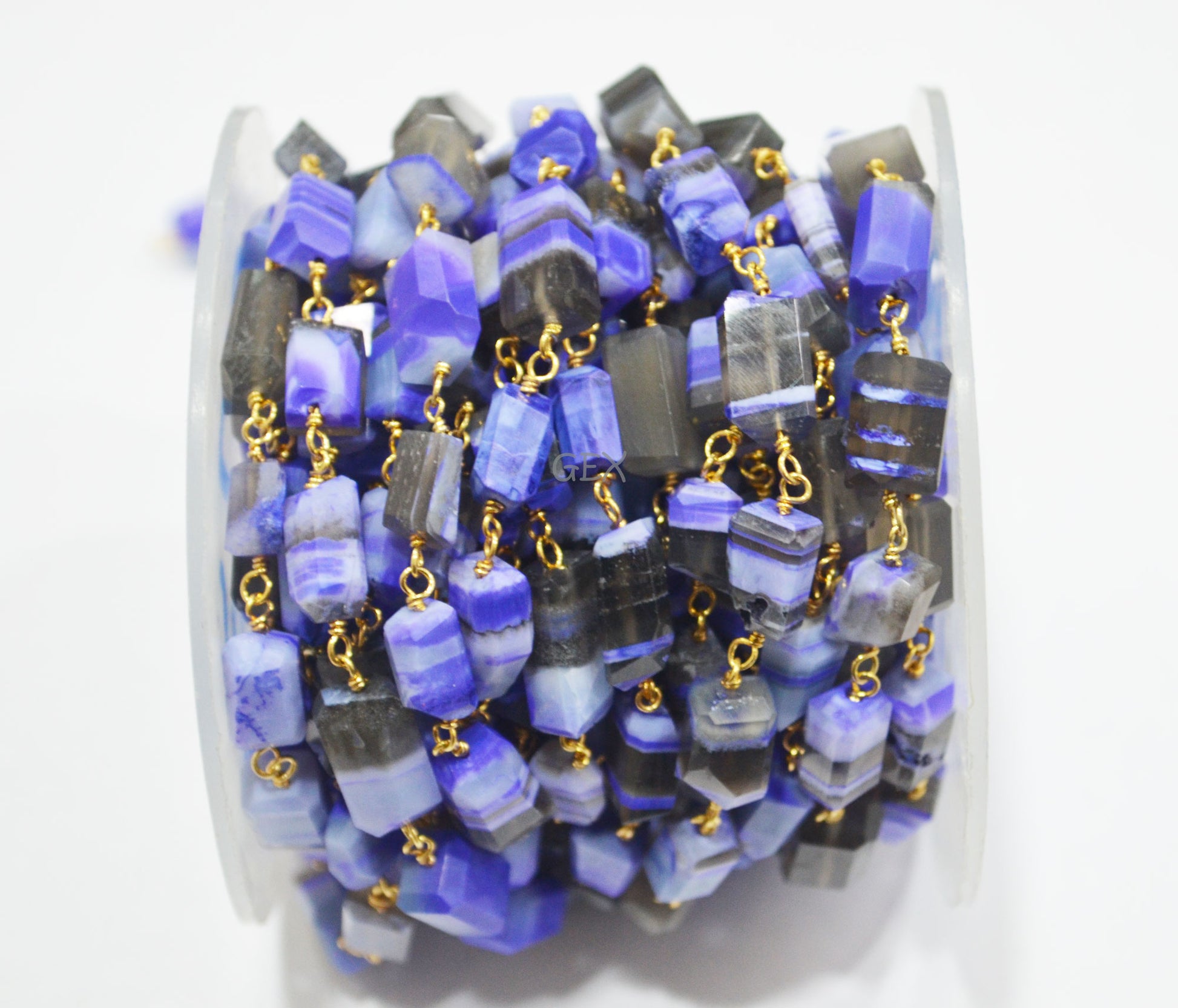 Purple Lace Chalcedony Faceted Laser Cut Nuggets Shape Rosary Beaded Chain , Purple Lace Chalcedony Wire Wrapped Chain , 7x10 - 7x12 mm , RB-6731