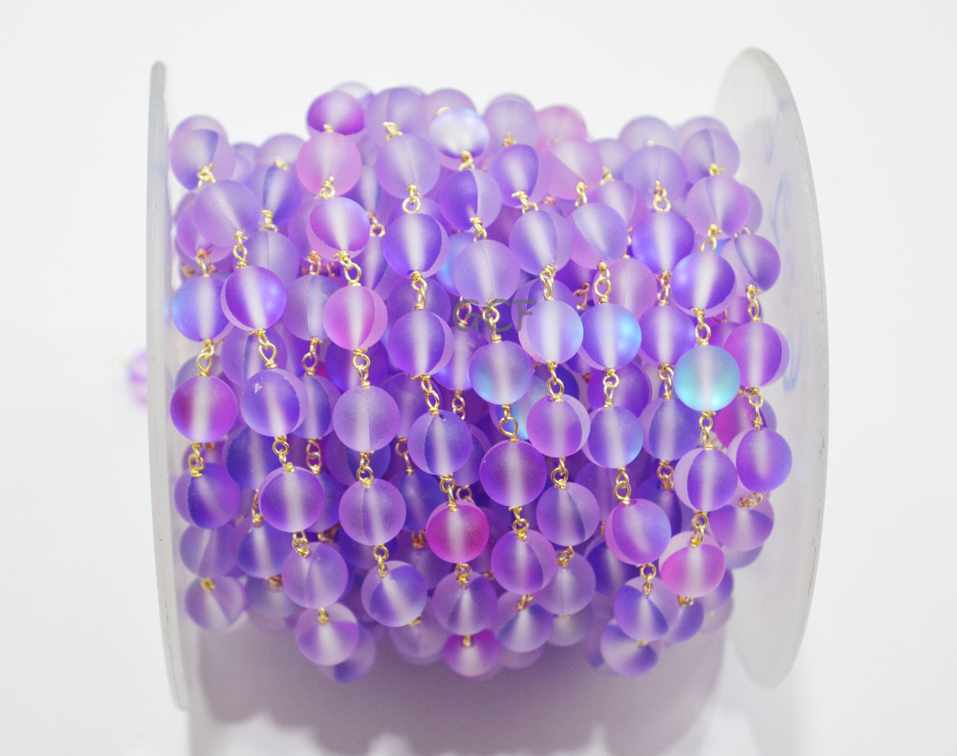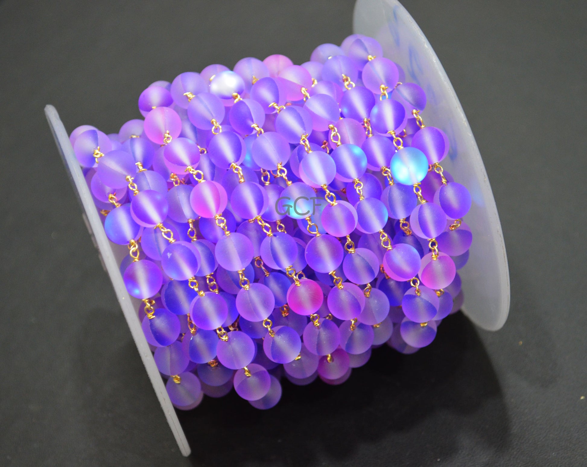 Purple Moonstone Doublet Hydro Glass Smooth Rosary Chain , Purple Moonstone Doublet Round Shape Wire Wrapped Chain , 8 mm , RB-7110