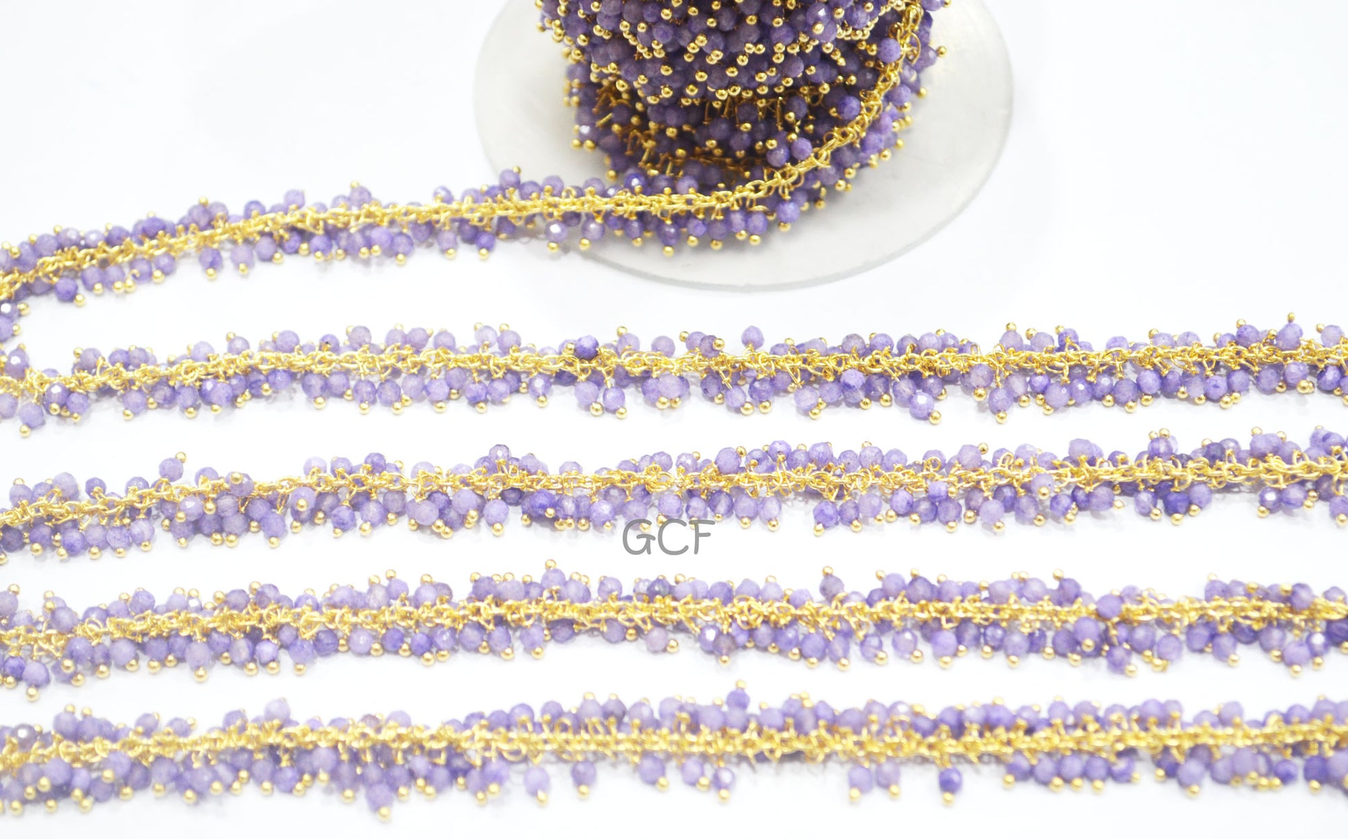 Purple Rainbow Moonstone Faceted Round Shape Angoori Cluster Chain ,Mystic Coated Purple Moonstone Grape Chain ,Sold By Foot ,2-2.5 mm ,6925