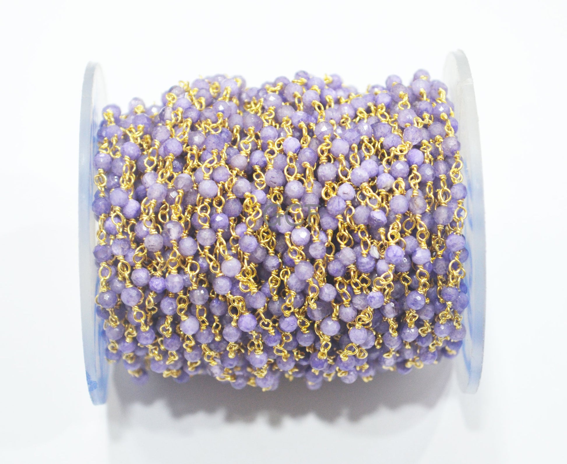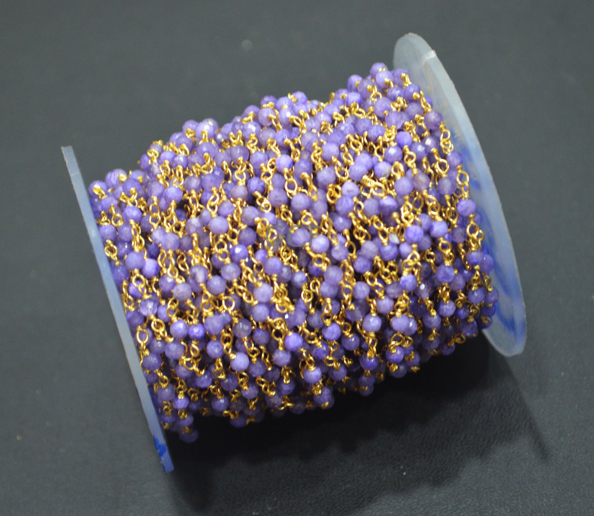 Purple Rainbow Moonstone Faceted Round Shape Rosary Chain , Mystic Coated Purple Moonstone Wire Wrapped Chain , 2 mm , 6924