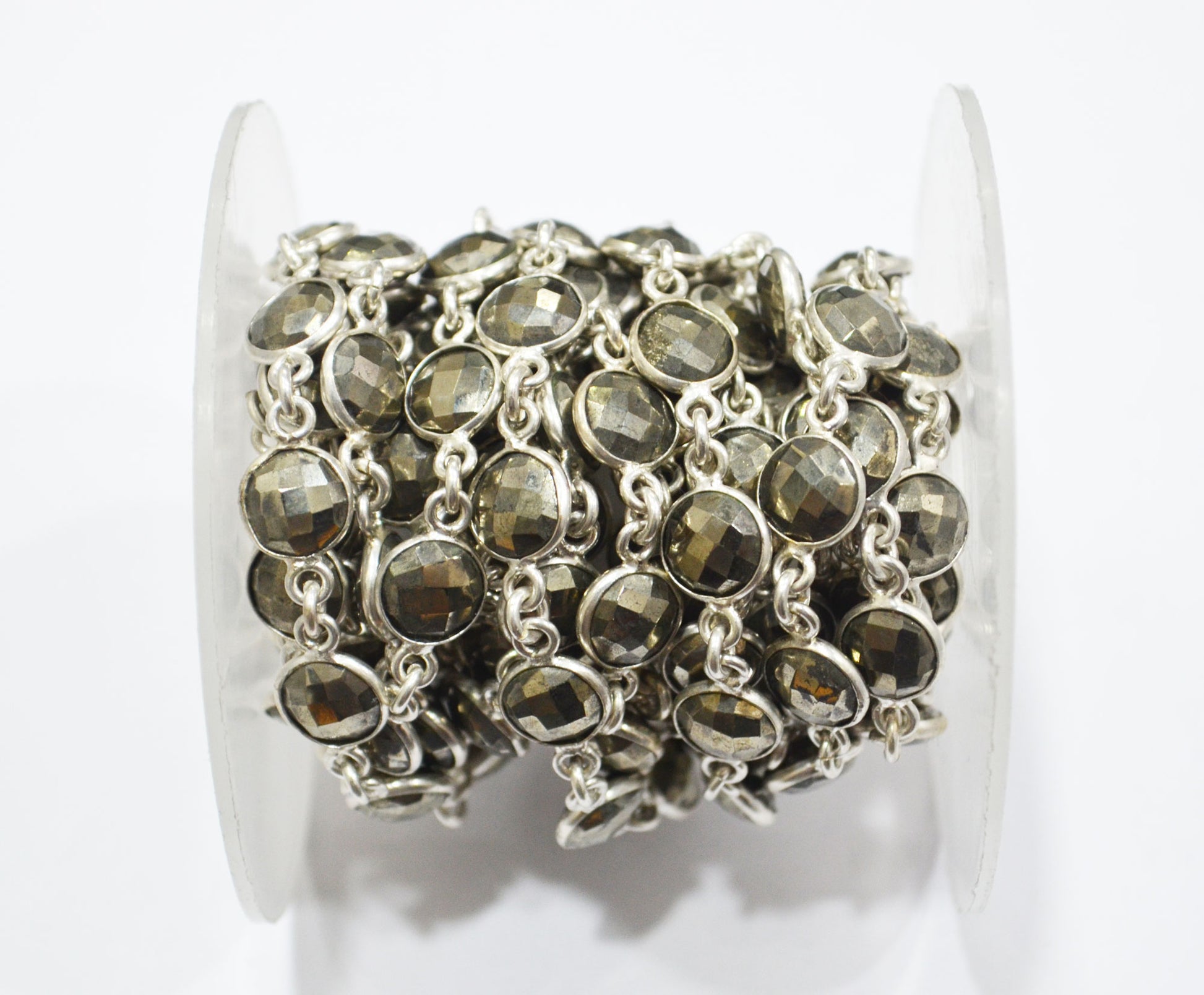 Pyrite Faceted Coin Shape Connector Chain , Pyrite Coin Shape Bezel Link Chain , 8 mm , RB-6594