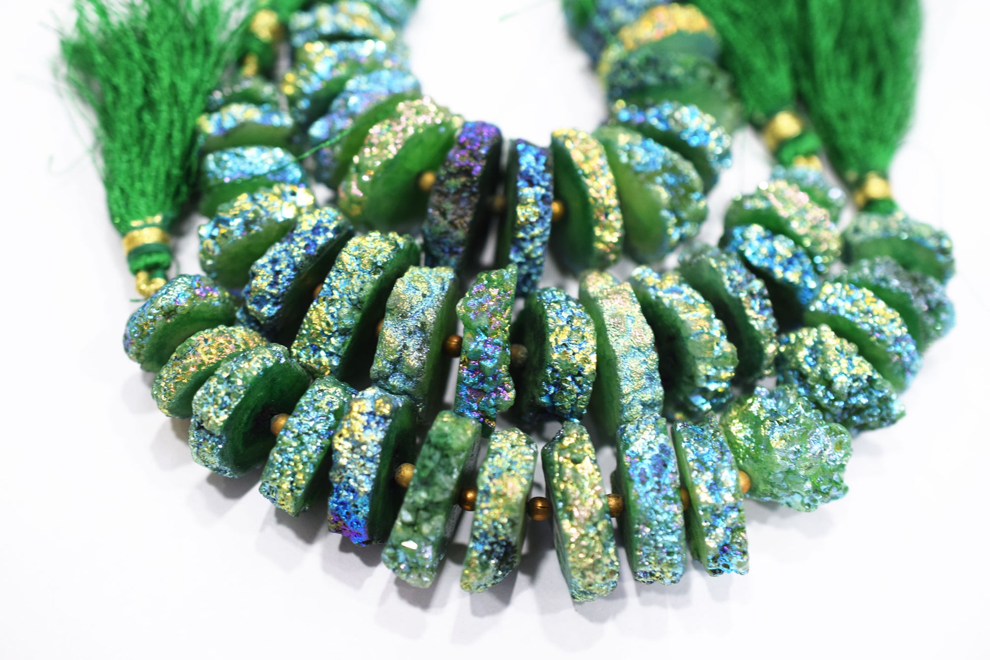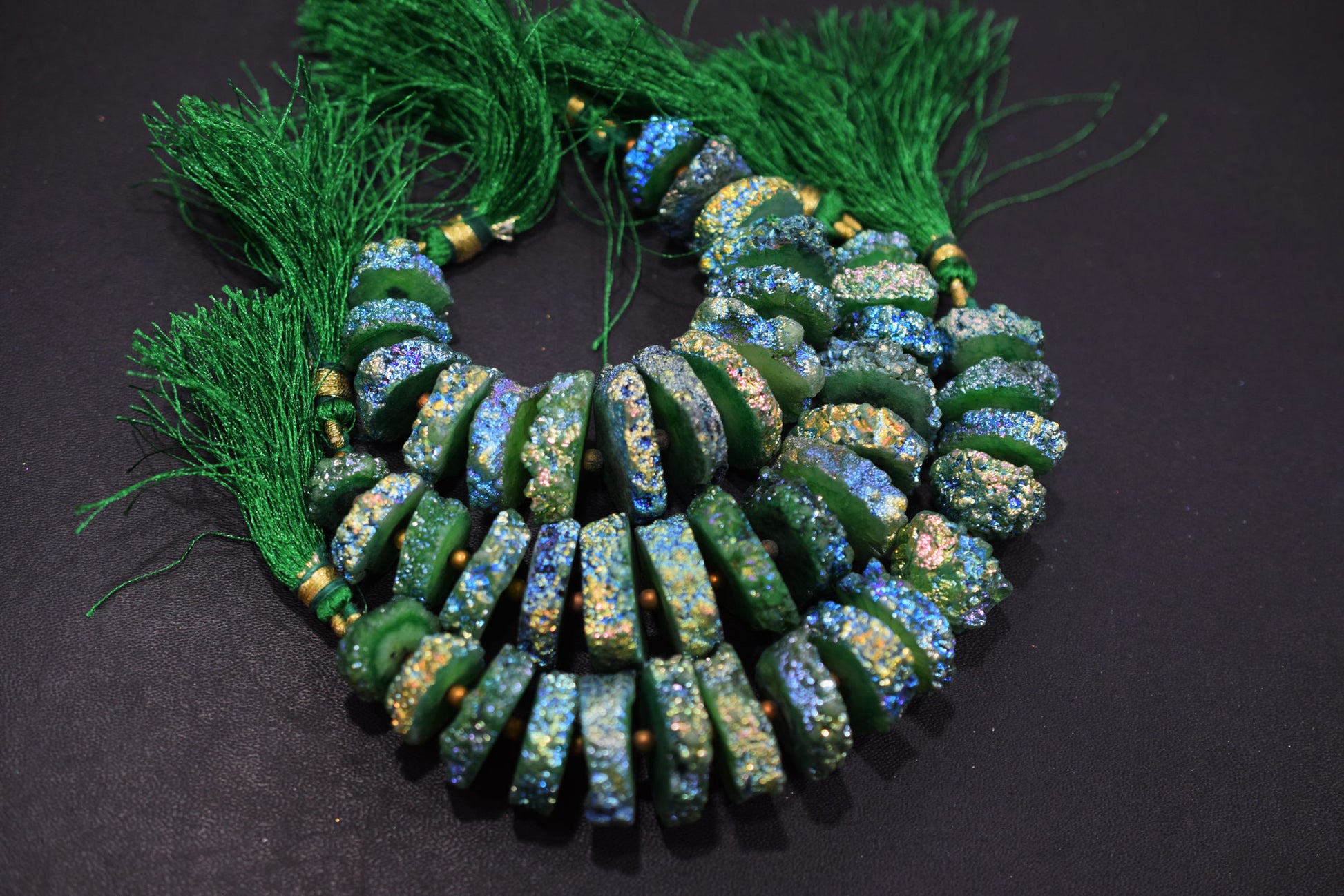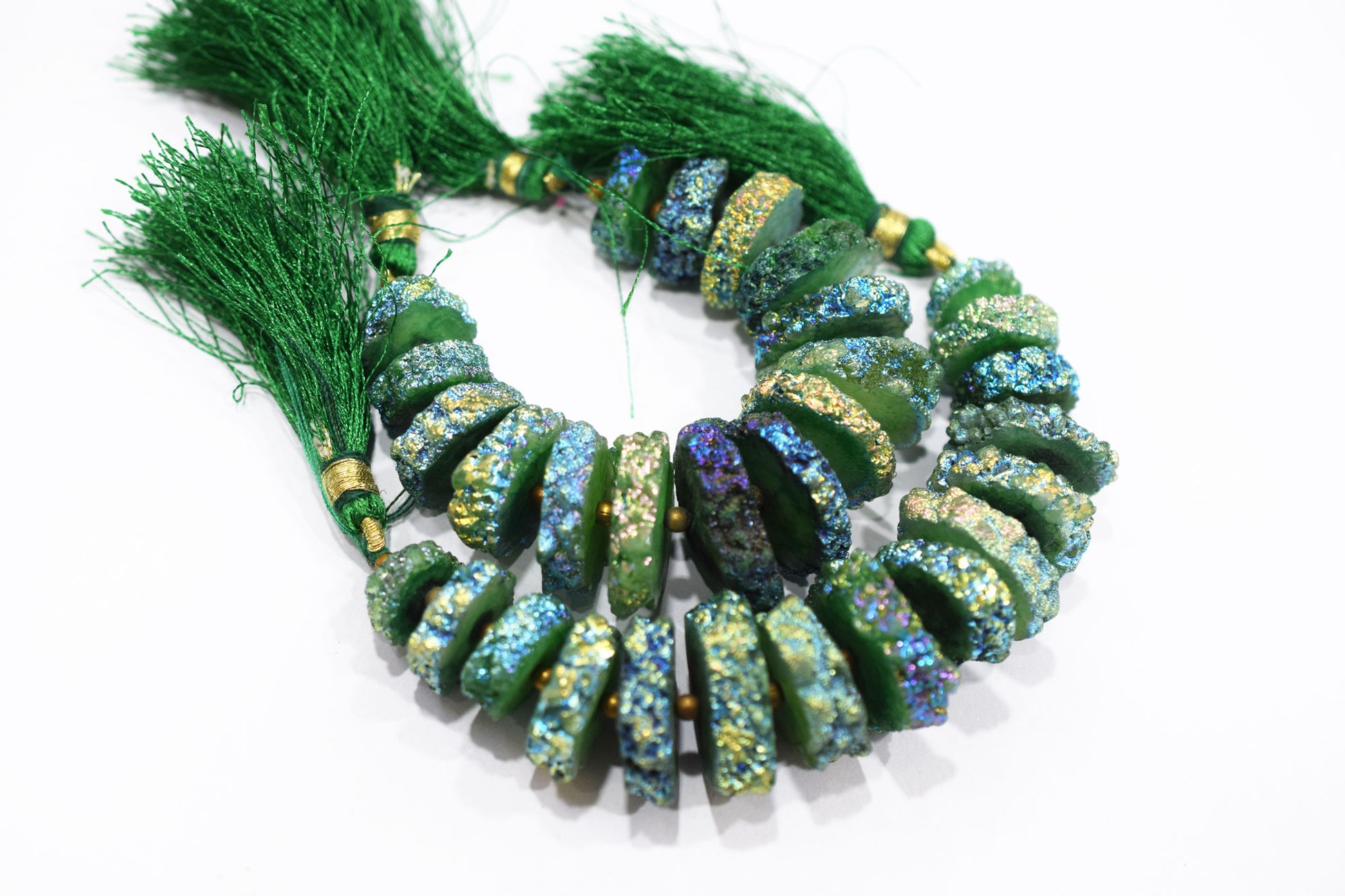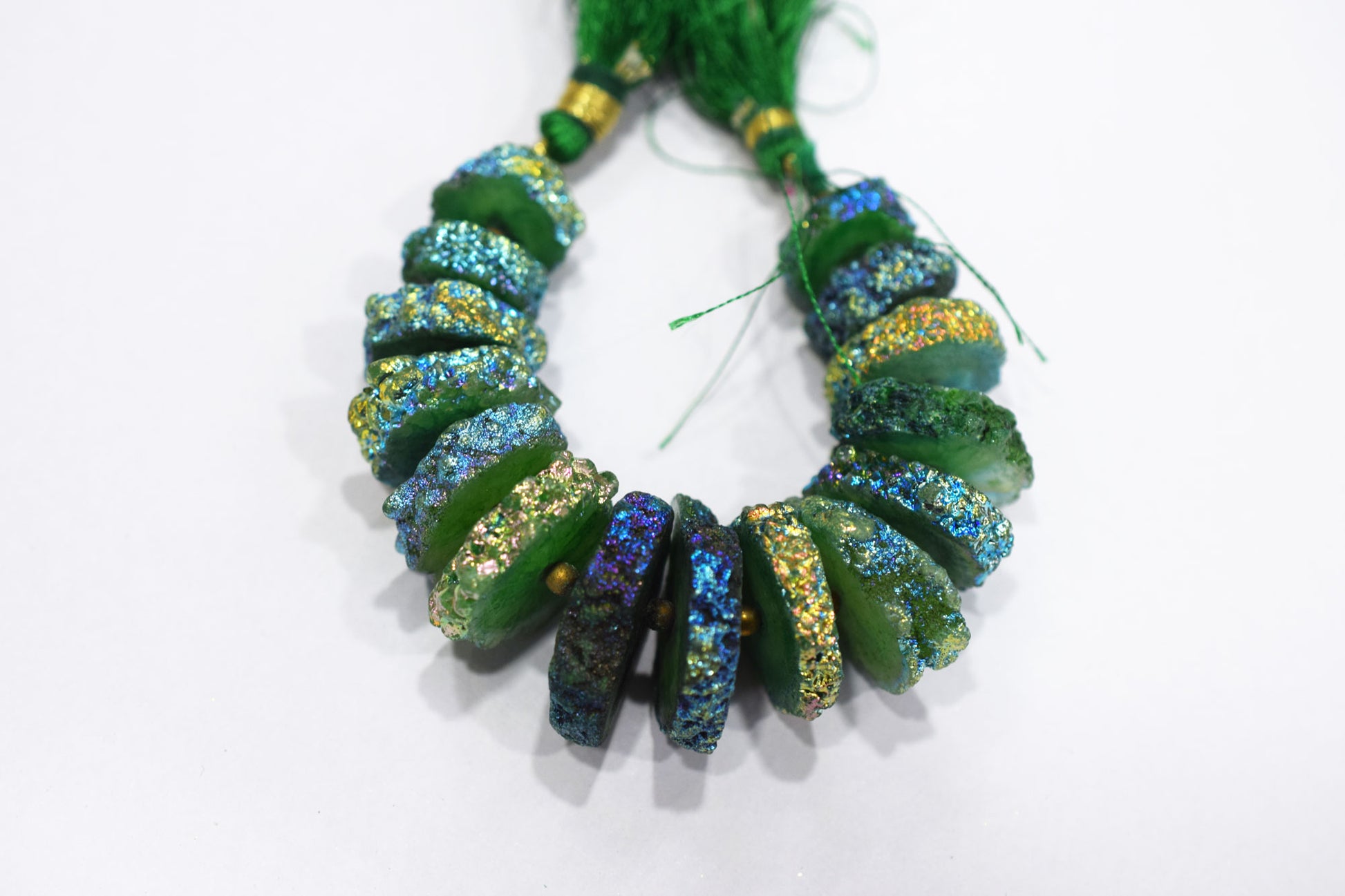 Rainbow Coated Stalactite Solar Quartz Tyre Shape , Solar Quartz Unique Green Druzy Beads , Sold By Strand , 14x15 - 20x25 mm , 5", 19307