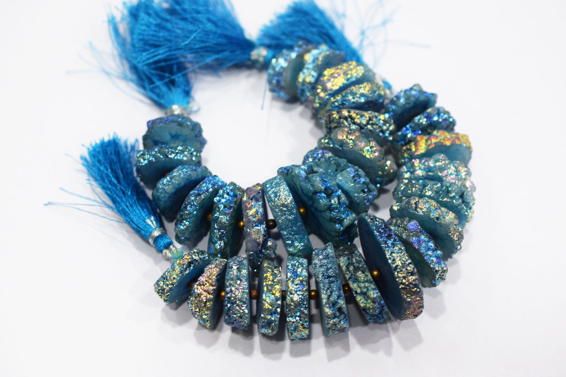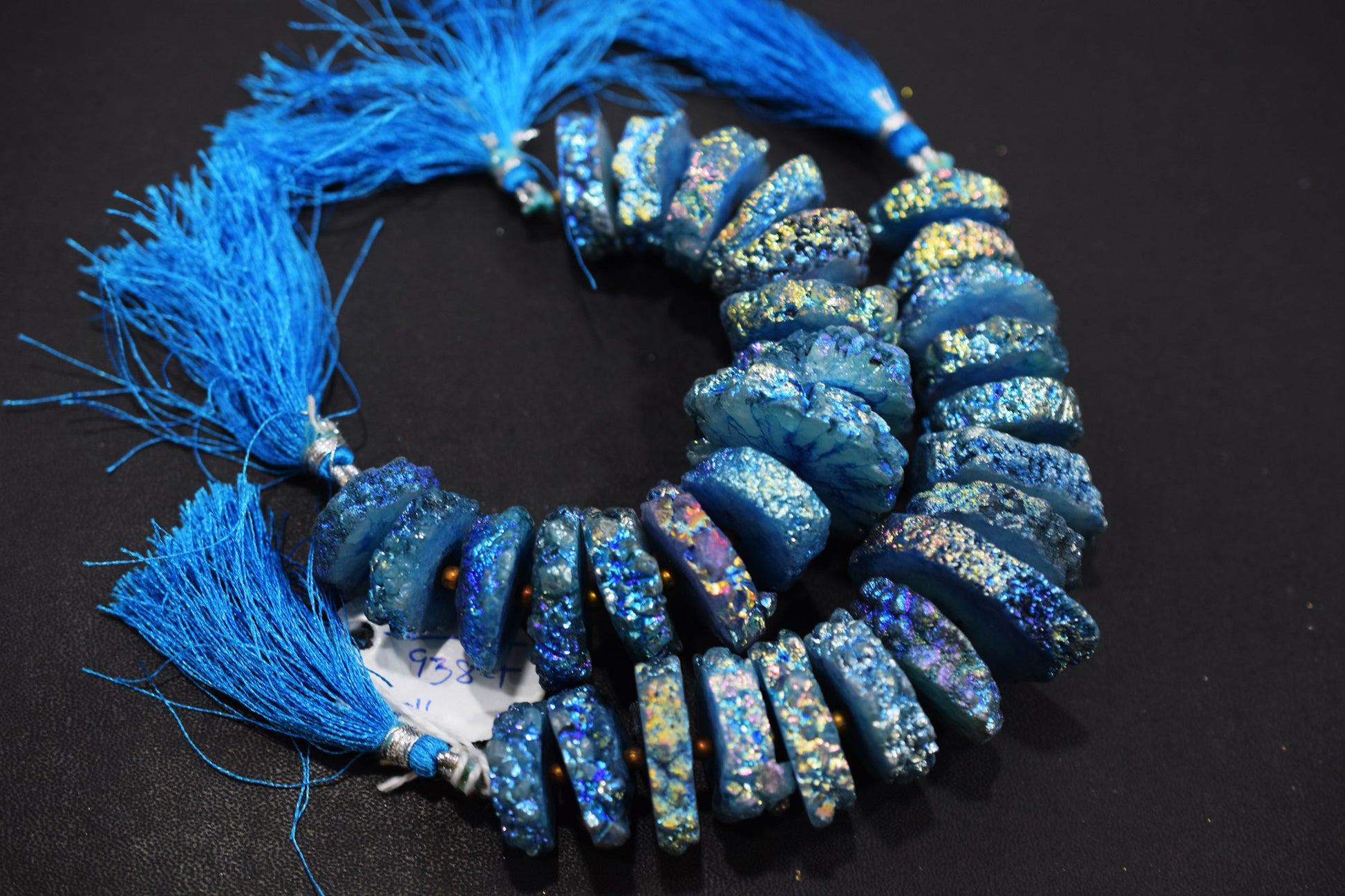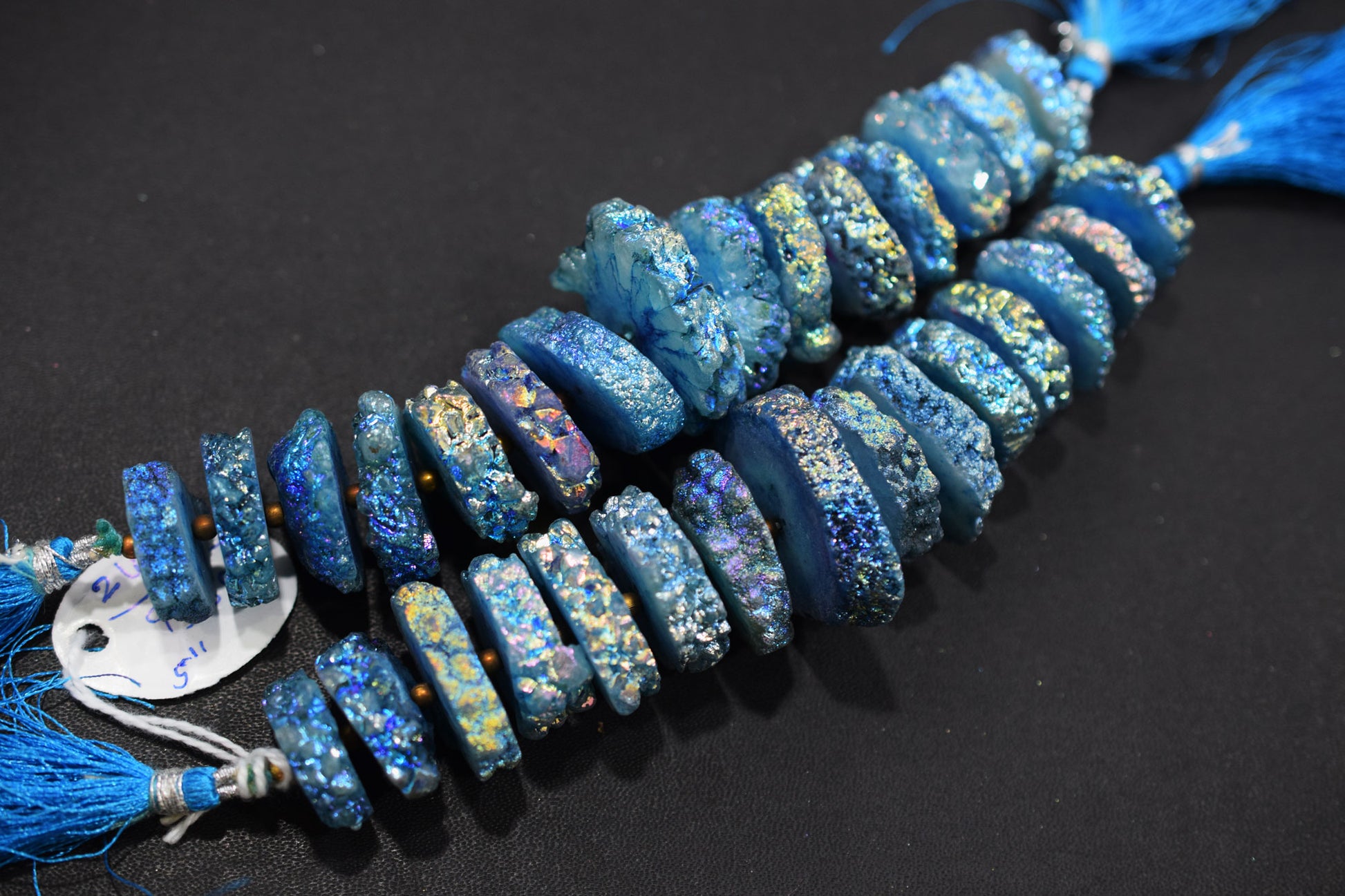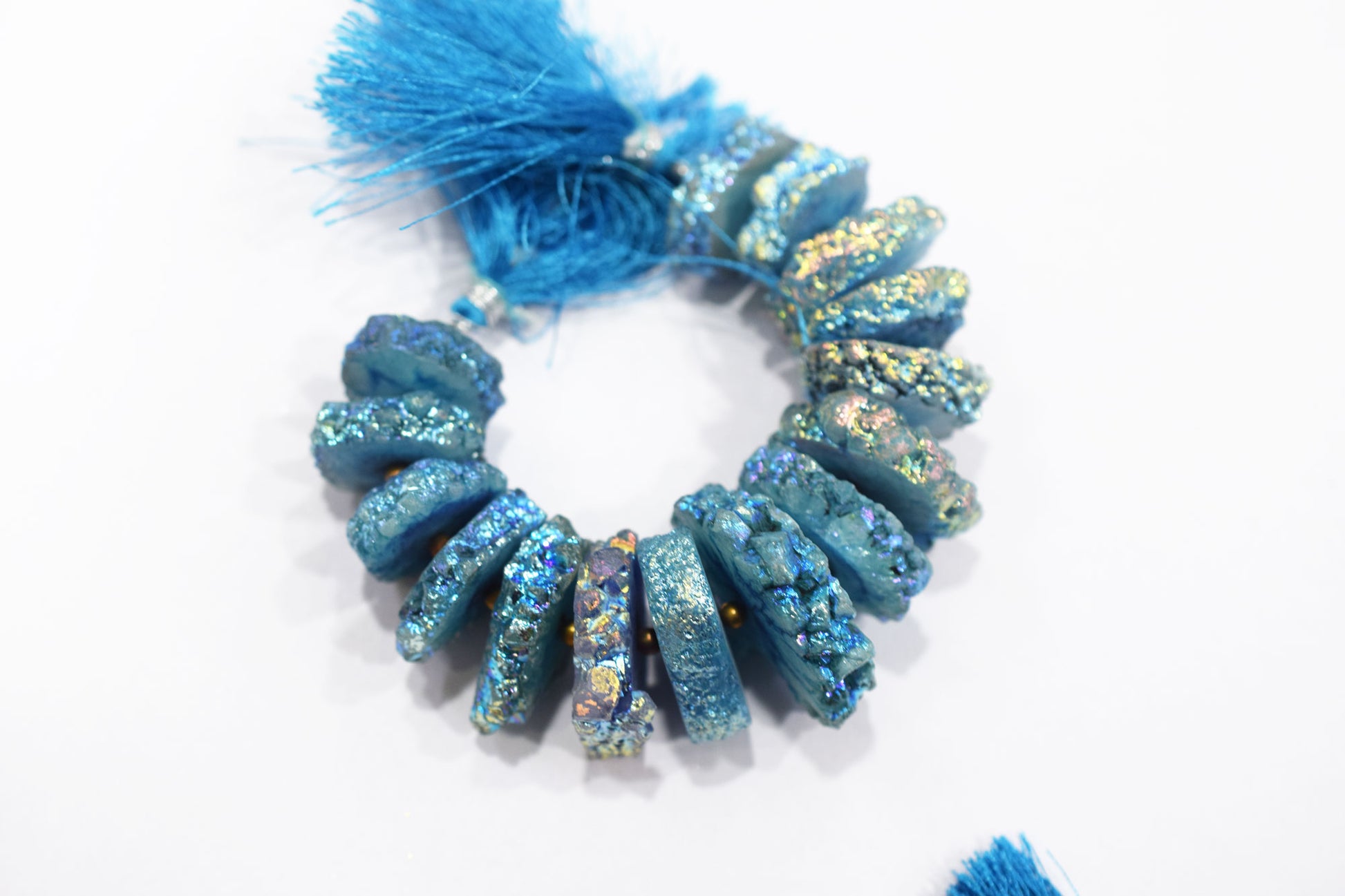 Rainbow Coated Stalactite Solar Quartz Tyre Shape , Solar Quartz Unique Sky Blue Druzy Beads , Sold By Strand , 18x22 - 30x35 mm , 5", 19315