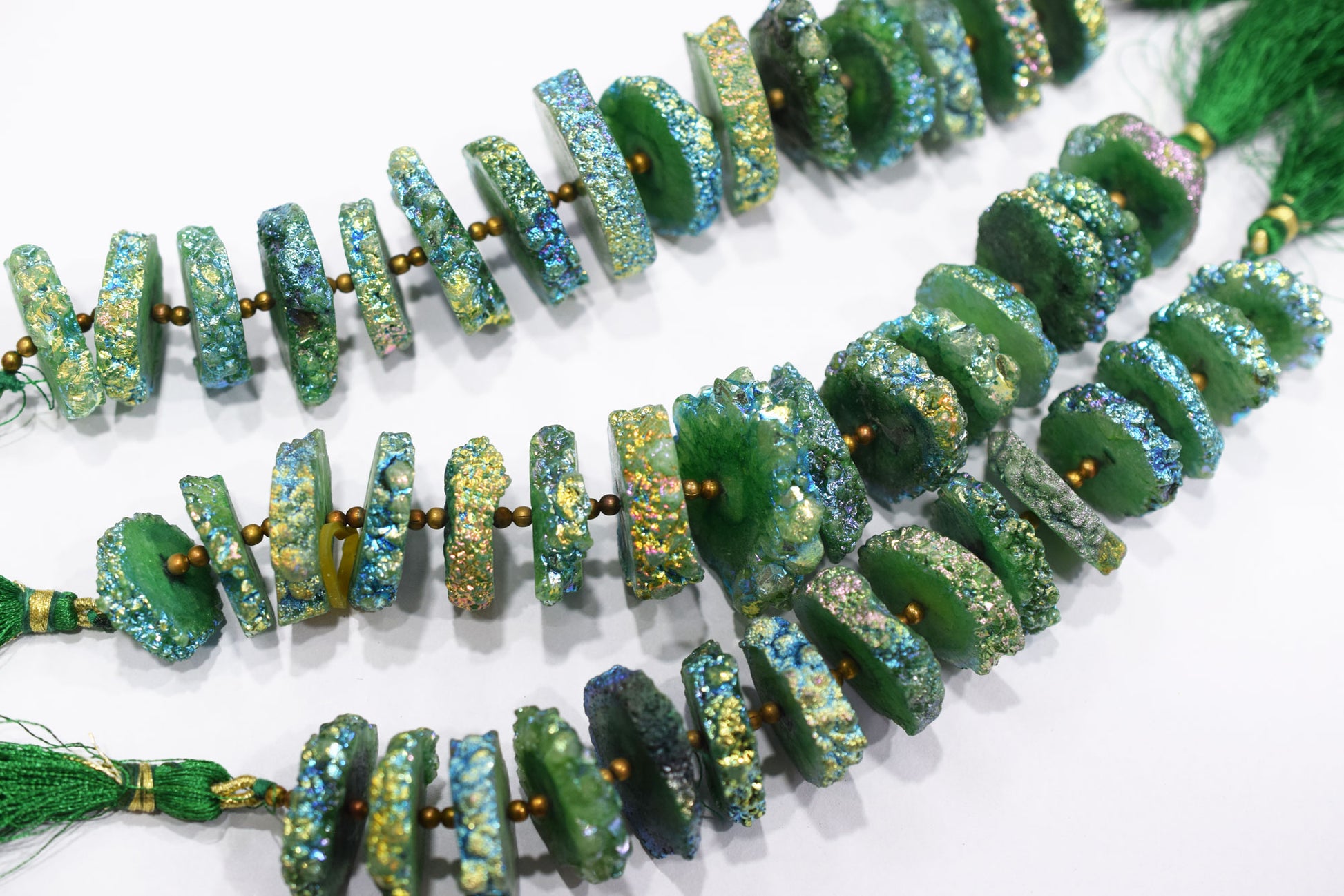 Rainbow Coated Stalactite Solar Quartz Tyre Shape , Solar Quartz Unique Green Druzy Beads , Sold By Strand , 20x22 - 32x35 mm , 7", 19305