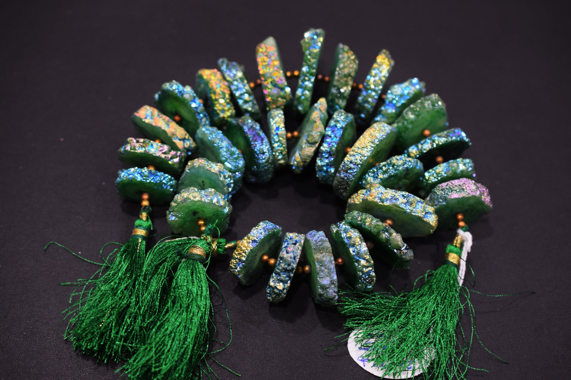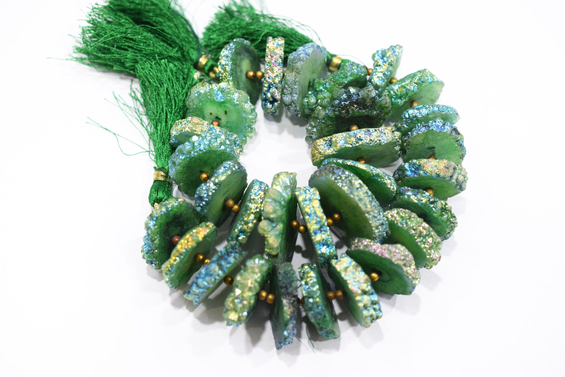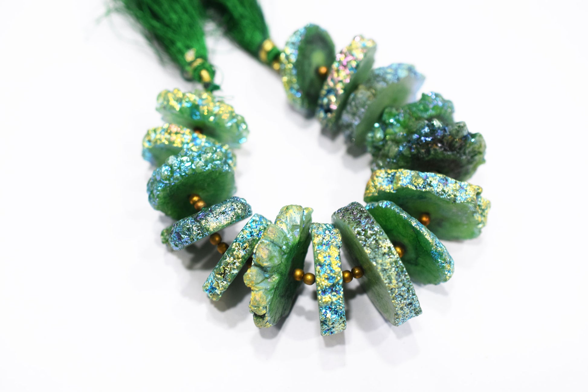 Stone : Rainbow Coated Stalactite Solar Quartz Green Druzy