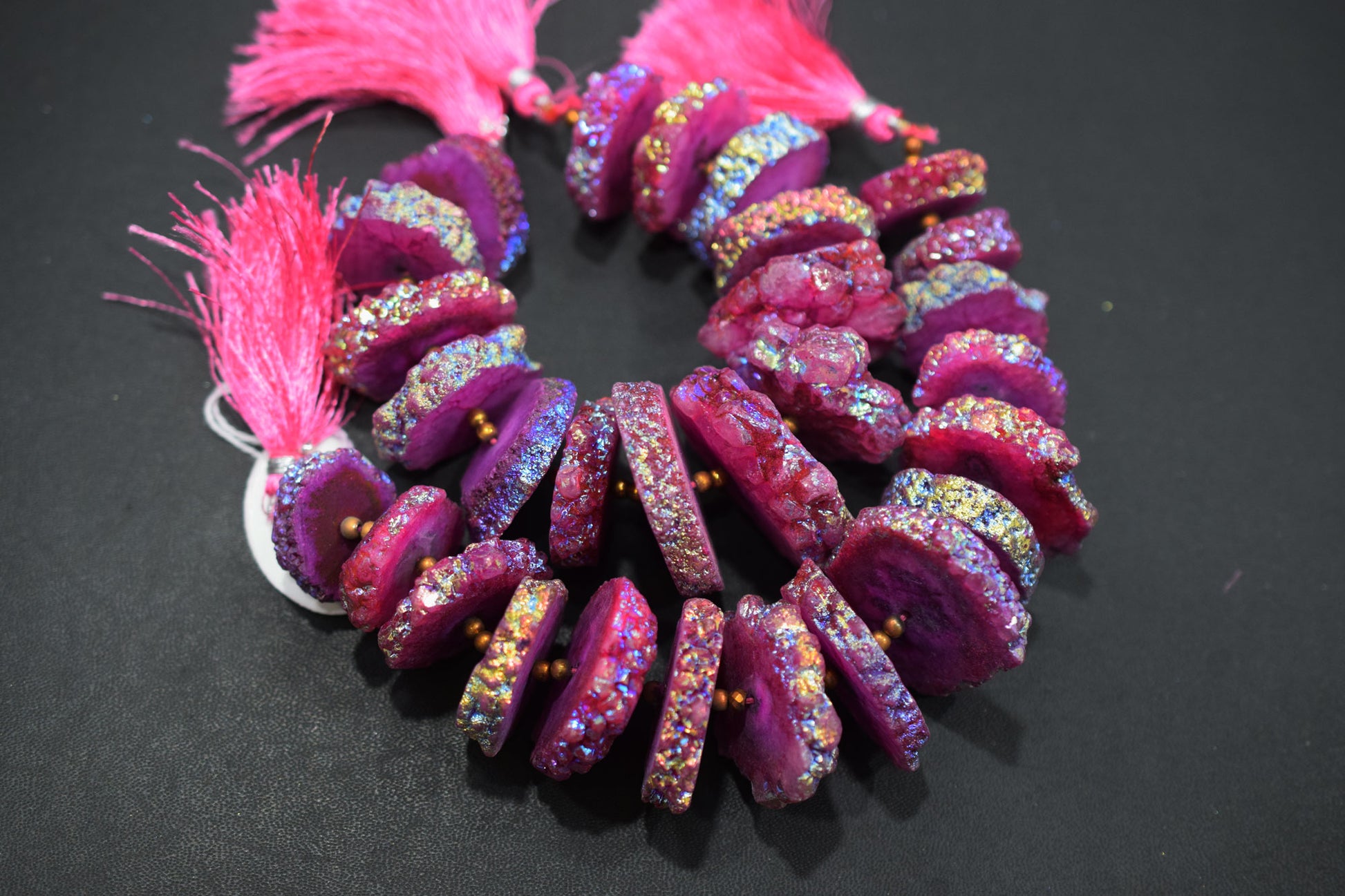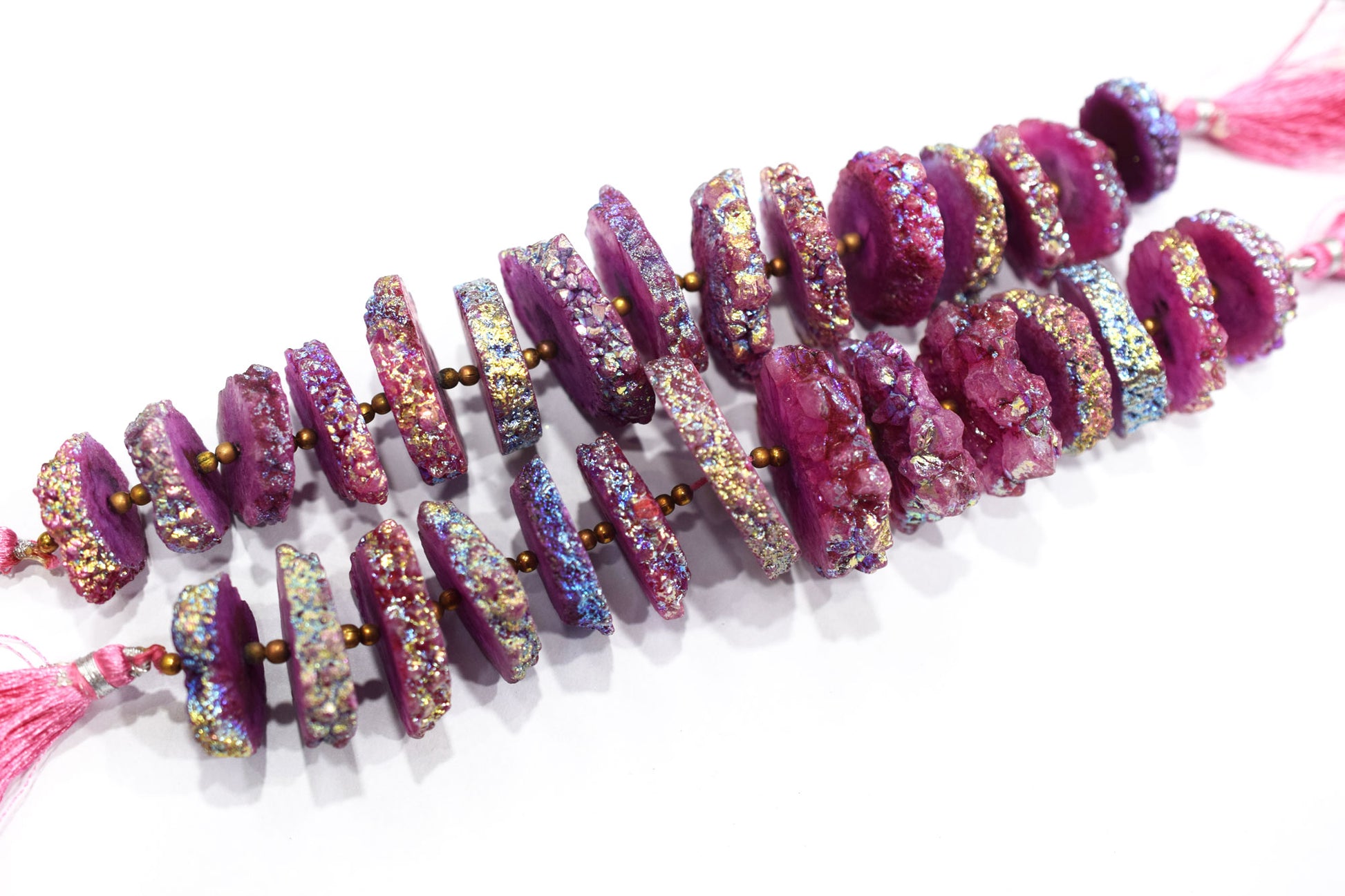 Rainbow Coated Stalactite Solar Quartz Tyre Shape , Solar Quartz Unique Pink Druzy Beads , Sold By Strand , 21x23 - 32x35 mm , 7", 19311