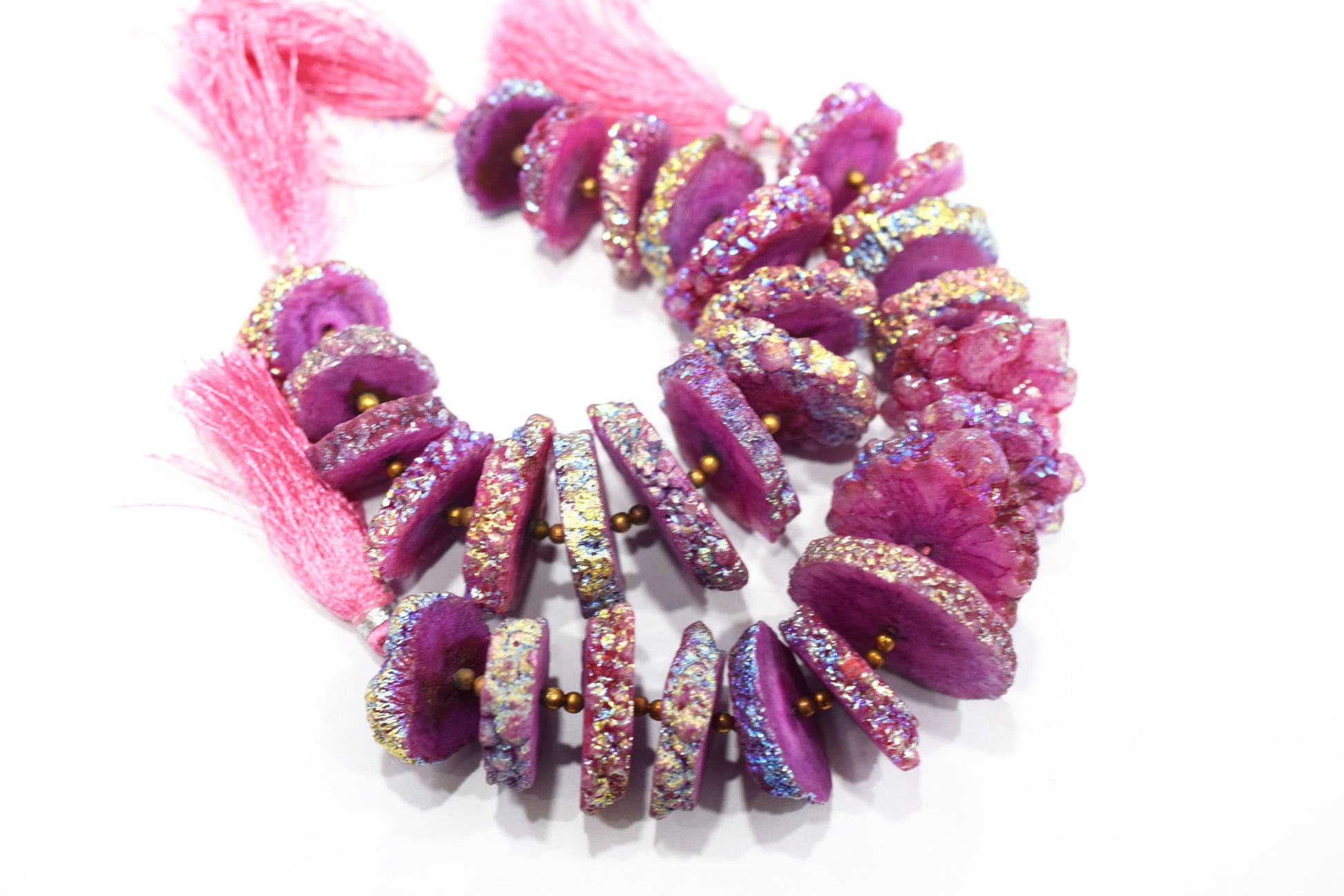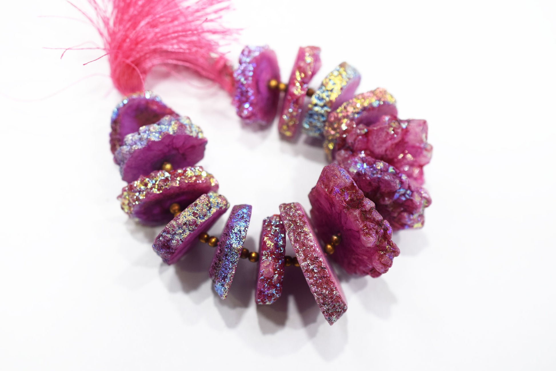 Stone : Rainbow Coated Stalactite Solar Quartz Pink Druzy