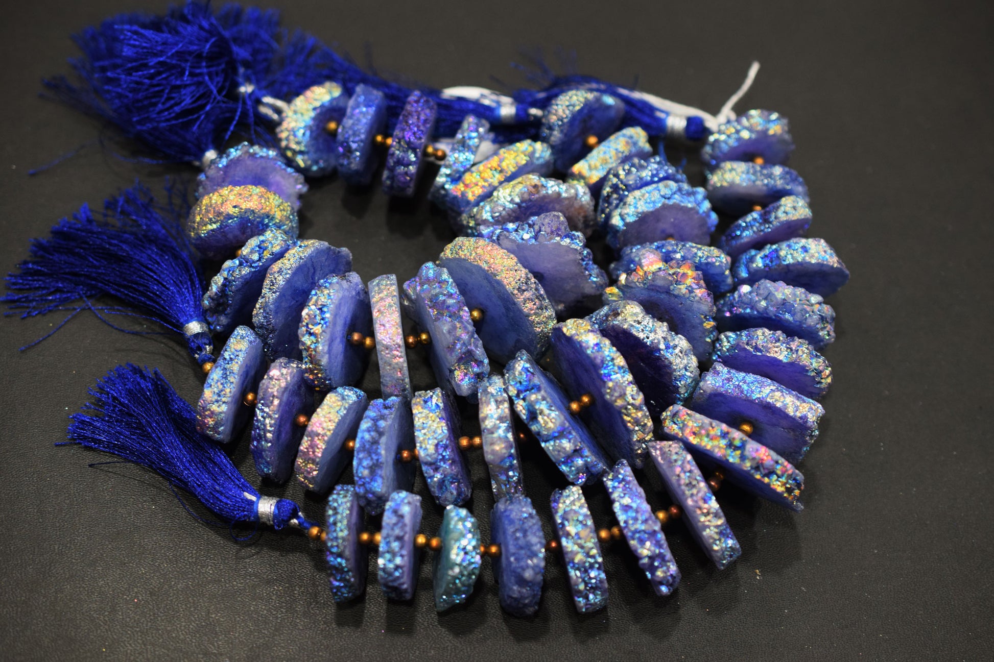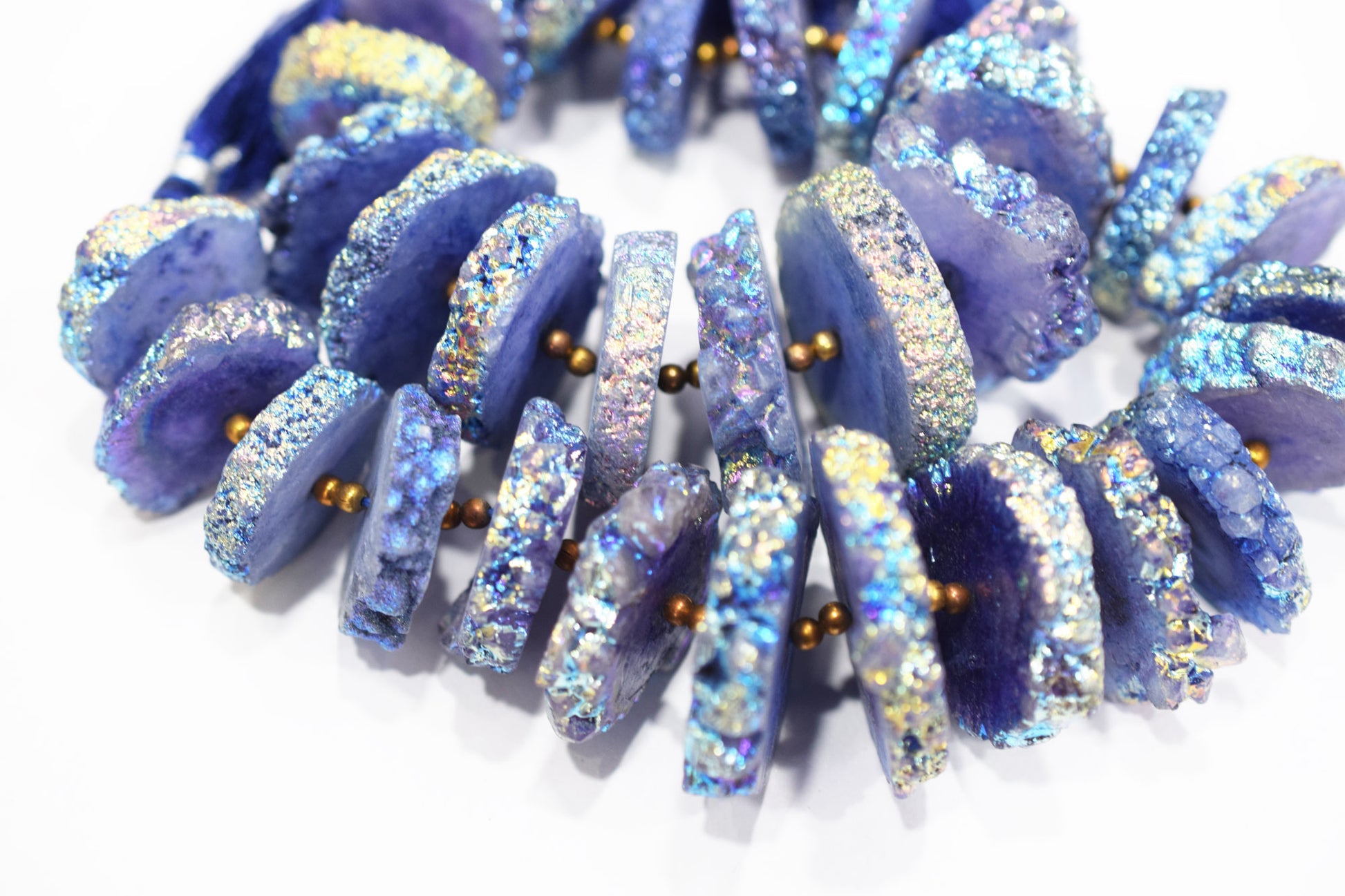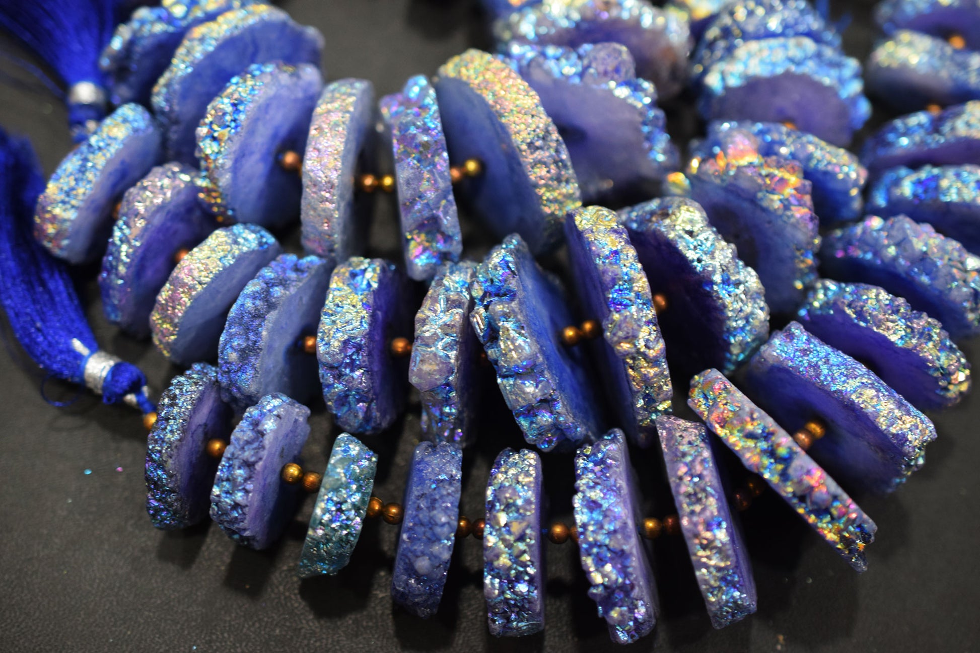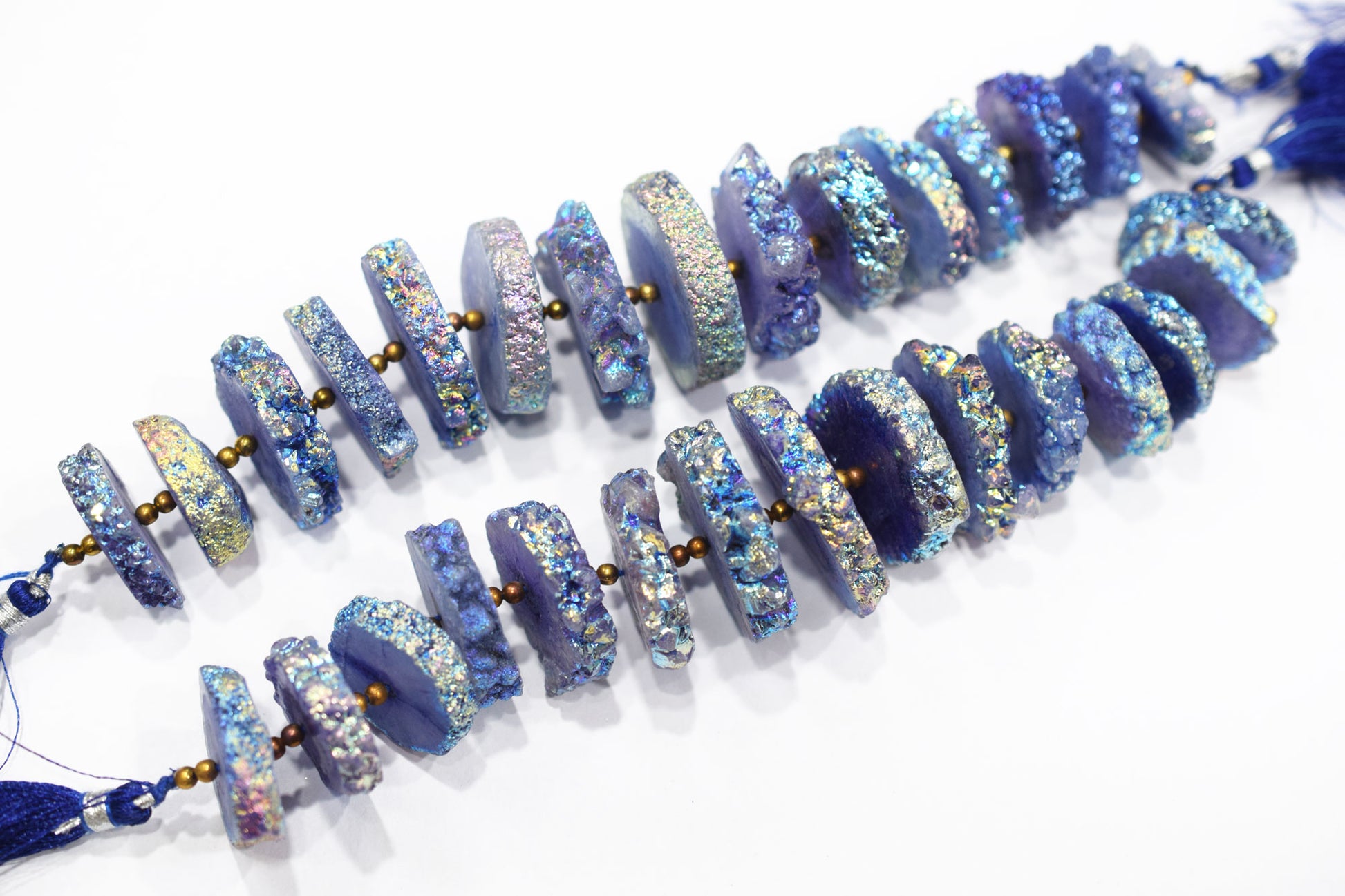 Rainbow Coated Stalactite Solar Quartz Tyre Shape , Solar Quartz Unique Purple Druzy Beads , Sold By Strand , 22x25 - 32x35 mm , 7" , 19319