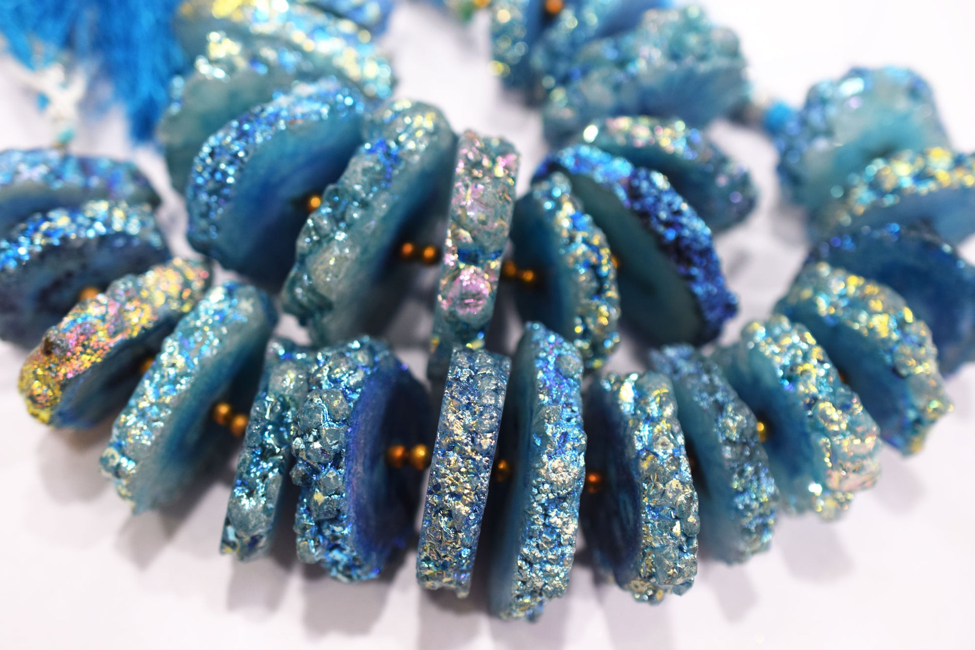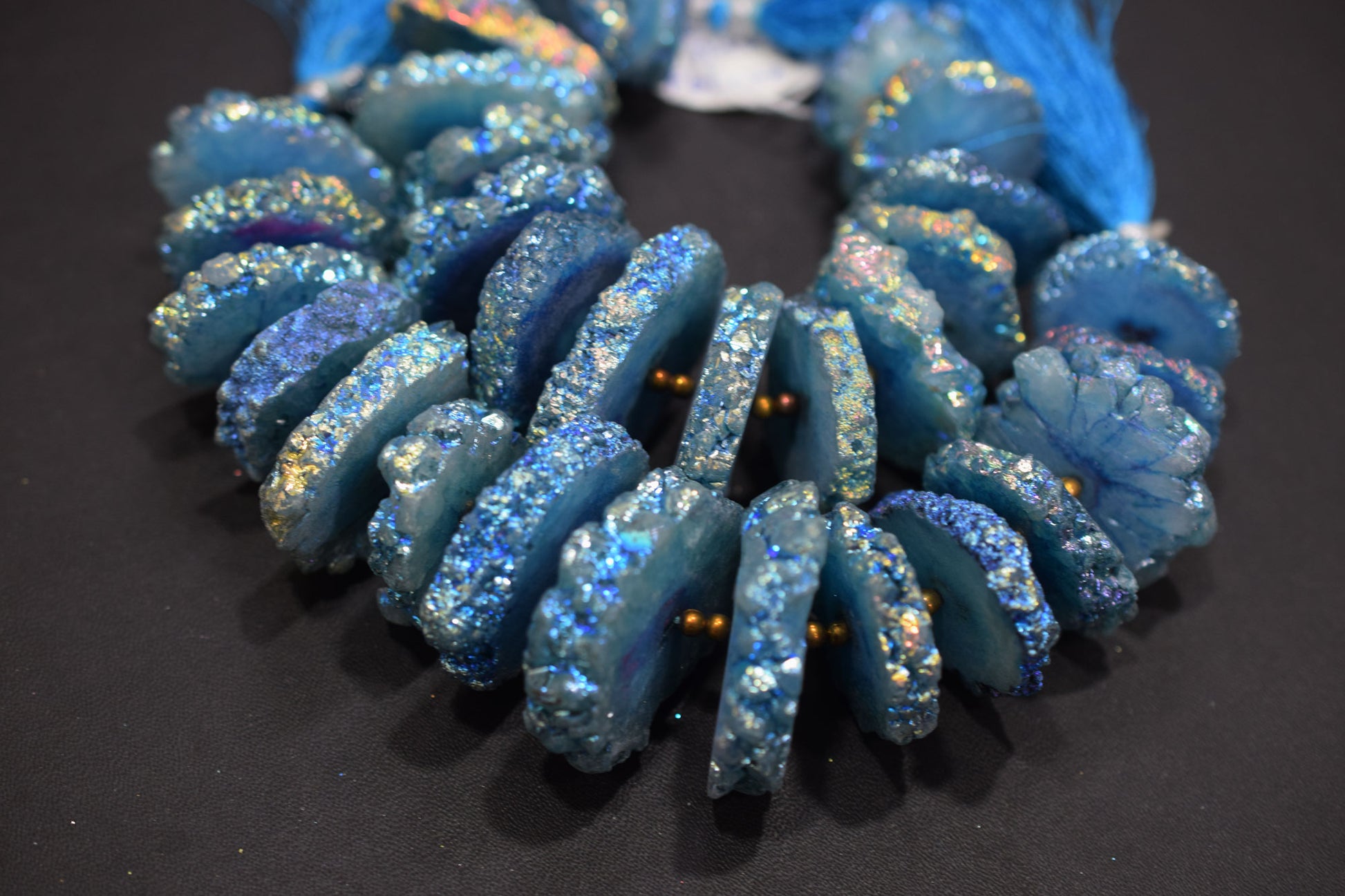Stone : Rainbow Coated Stalactite Solar Quartz Sky Blue Druzy