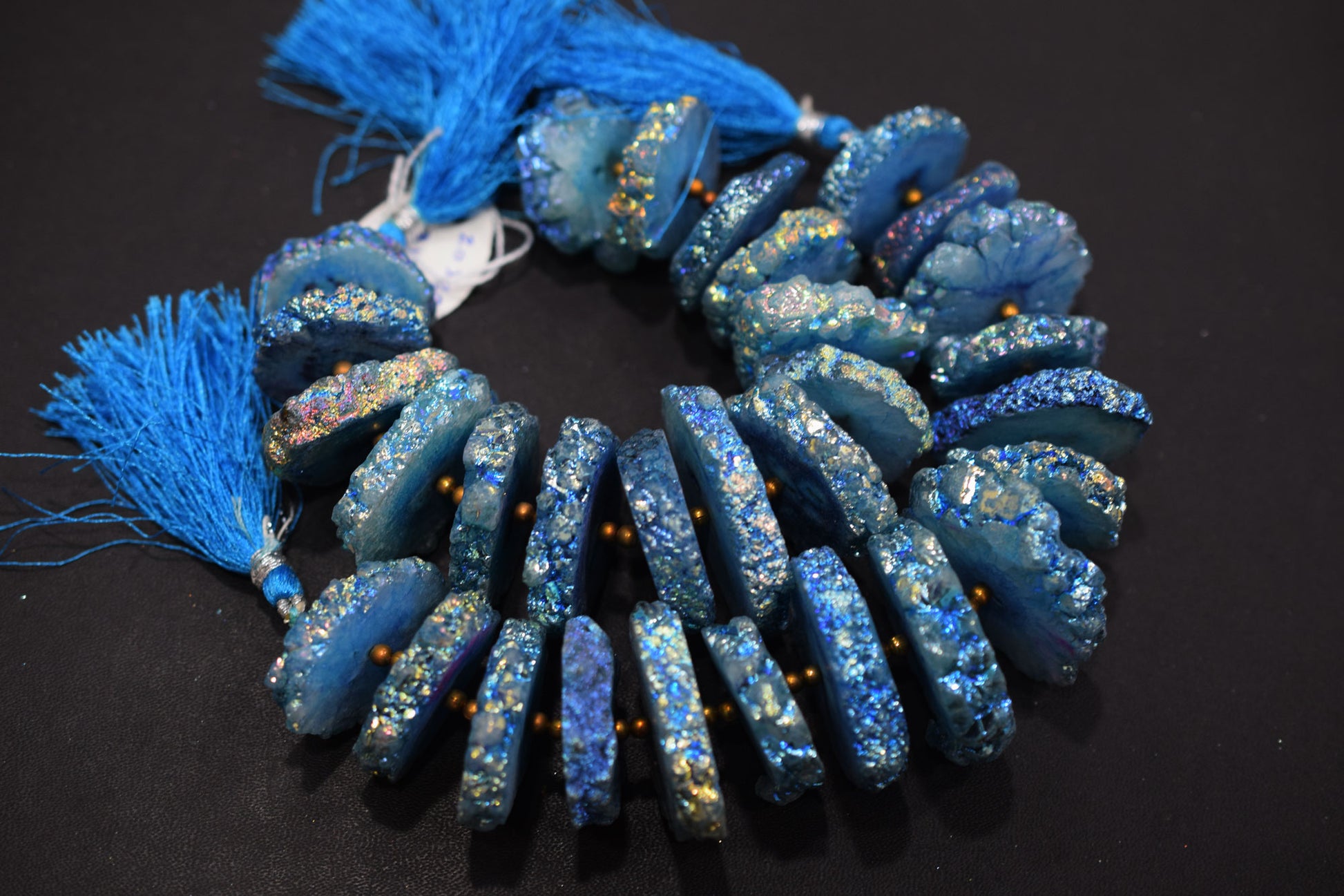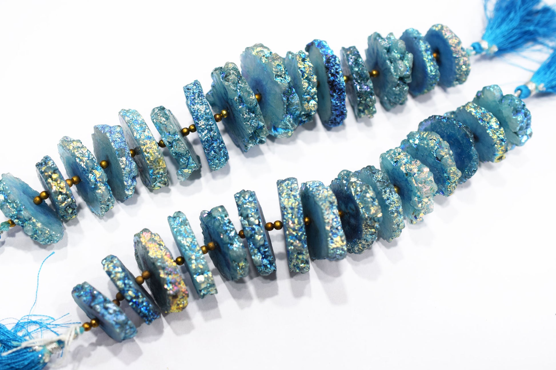 Rainbow Coated Stalactite Solar Quartz Tyre Shape , Solar Quartz Unique Sky Blue Druzy Beads , Sold By Strand , 22x28 - 31x38 mm , 7", 19316