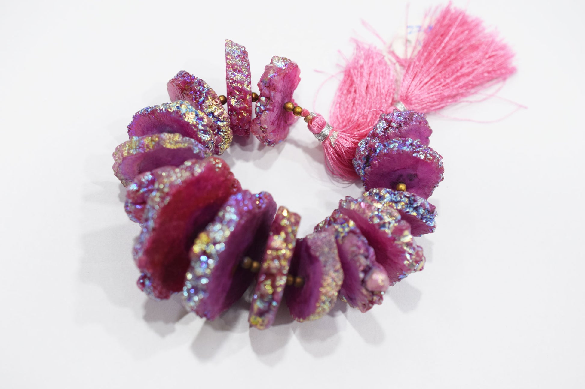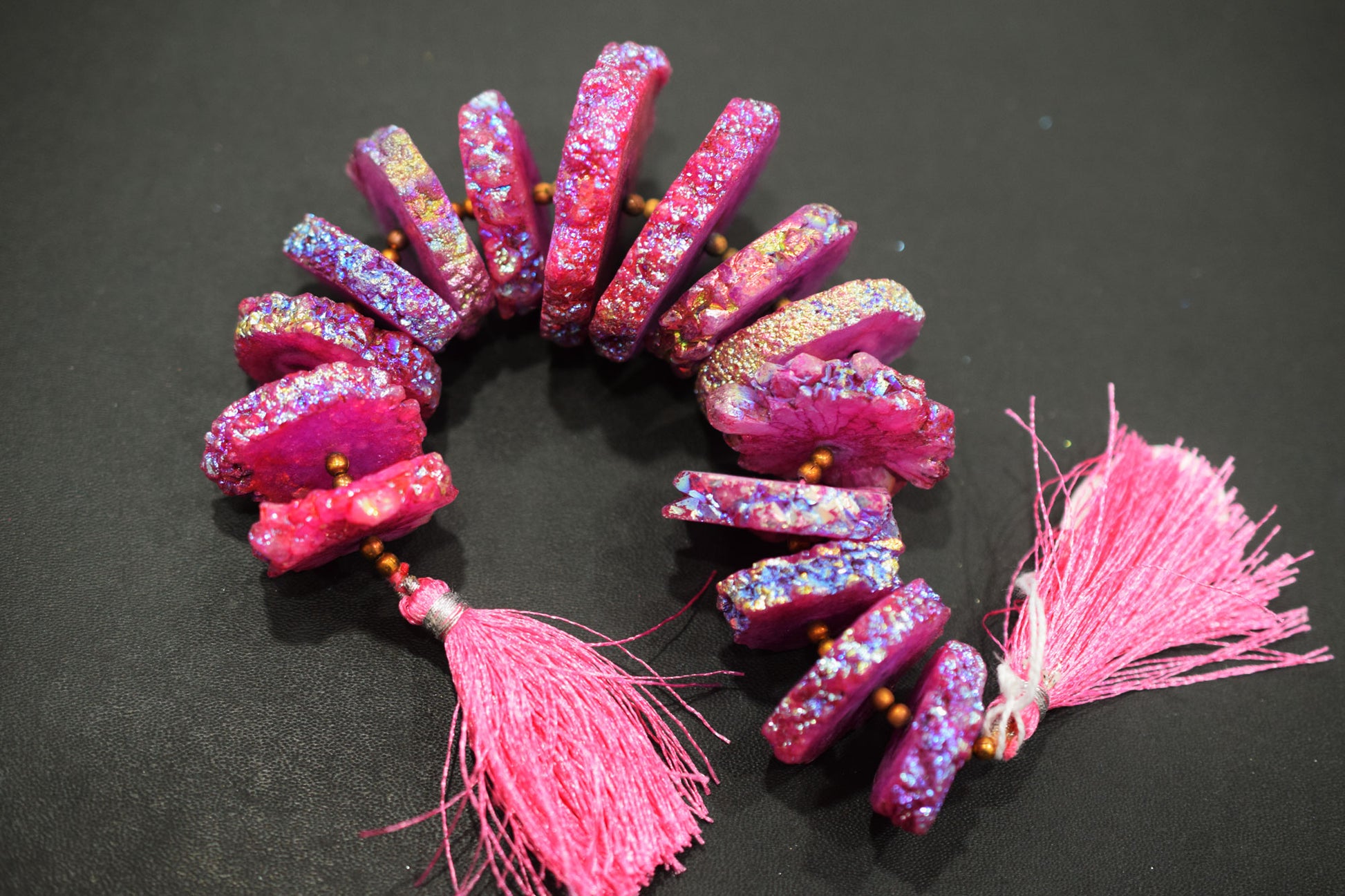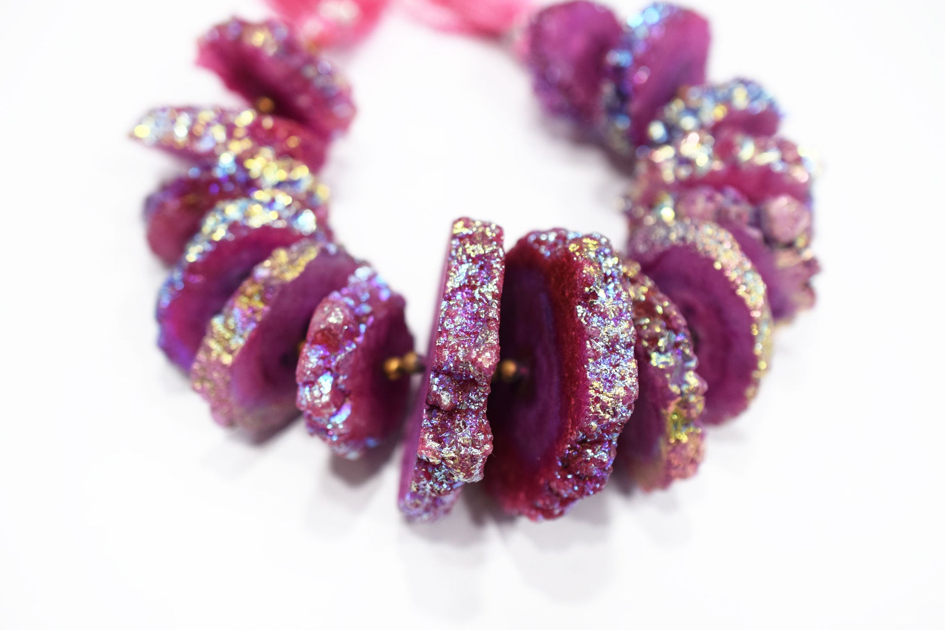 Stone : Rainbow Coated Stalactite Solar Quartz Pink Druzy