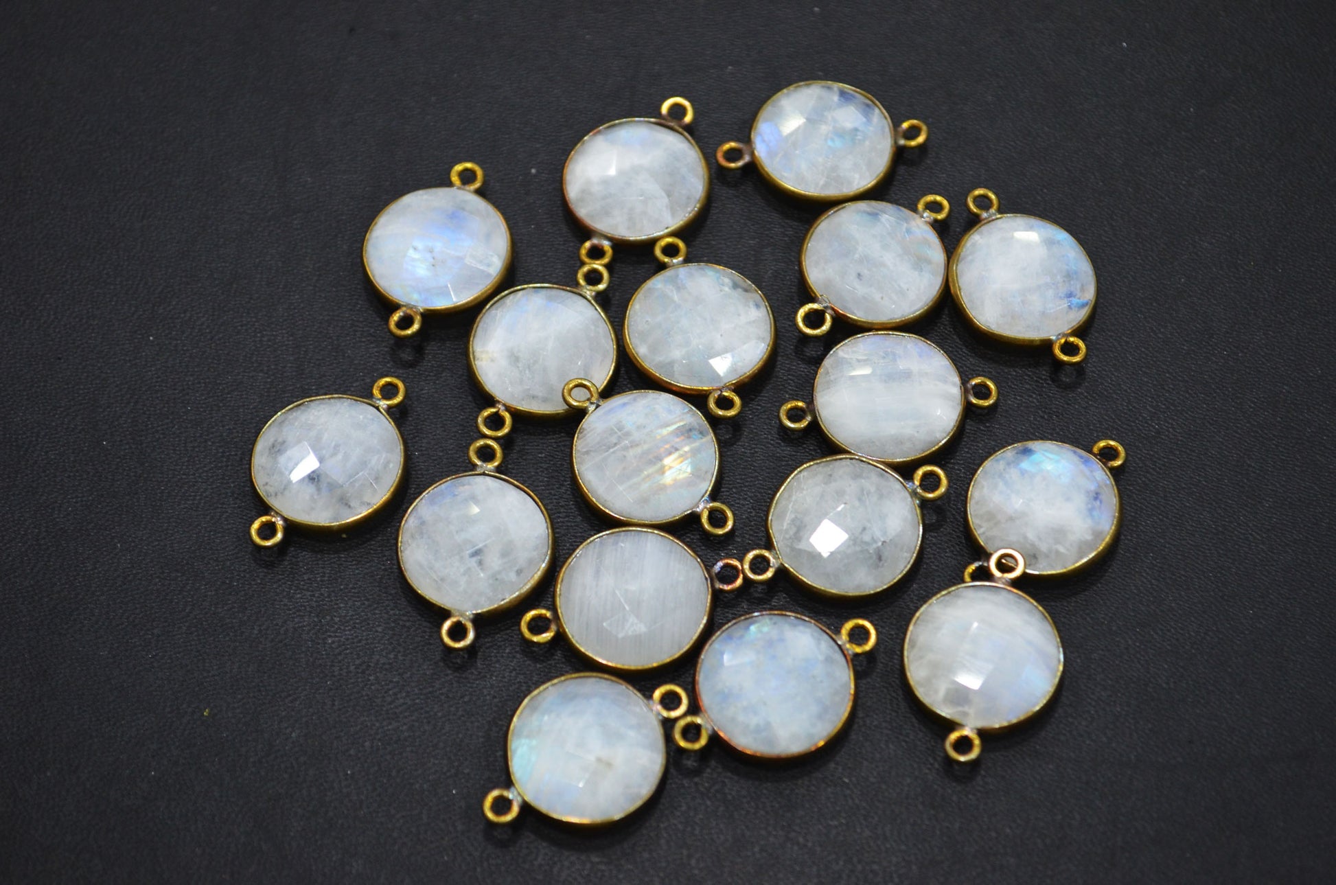 Rainbow Moonstone Faceted Coin Shape Connector , Sold By Piece , 15 mm , RB-5455