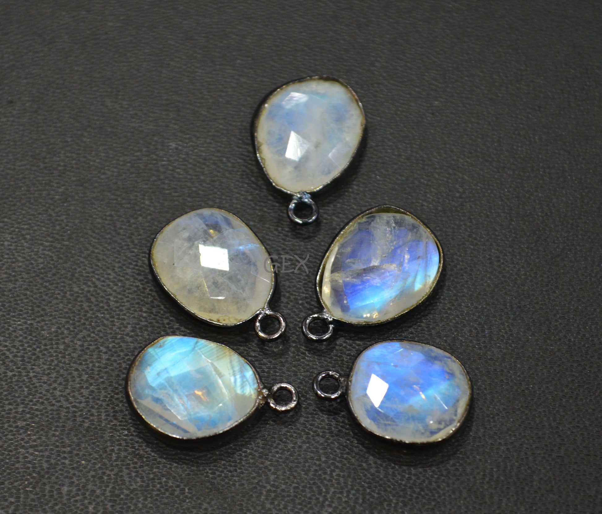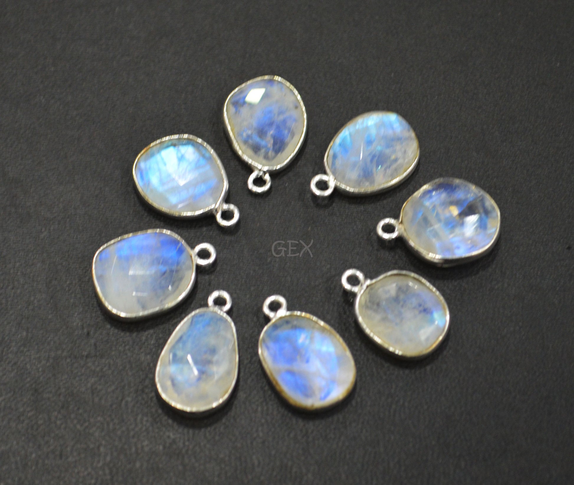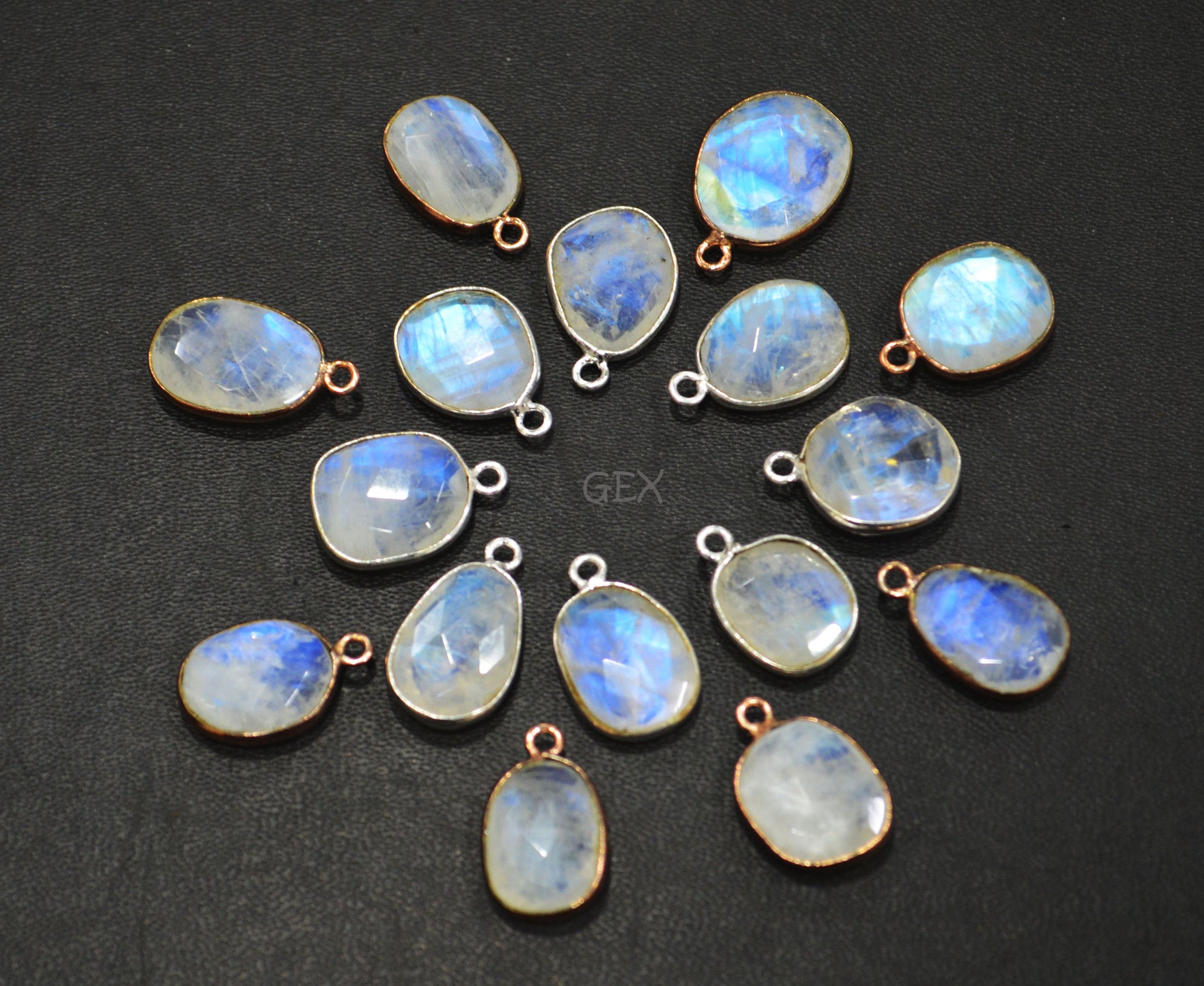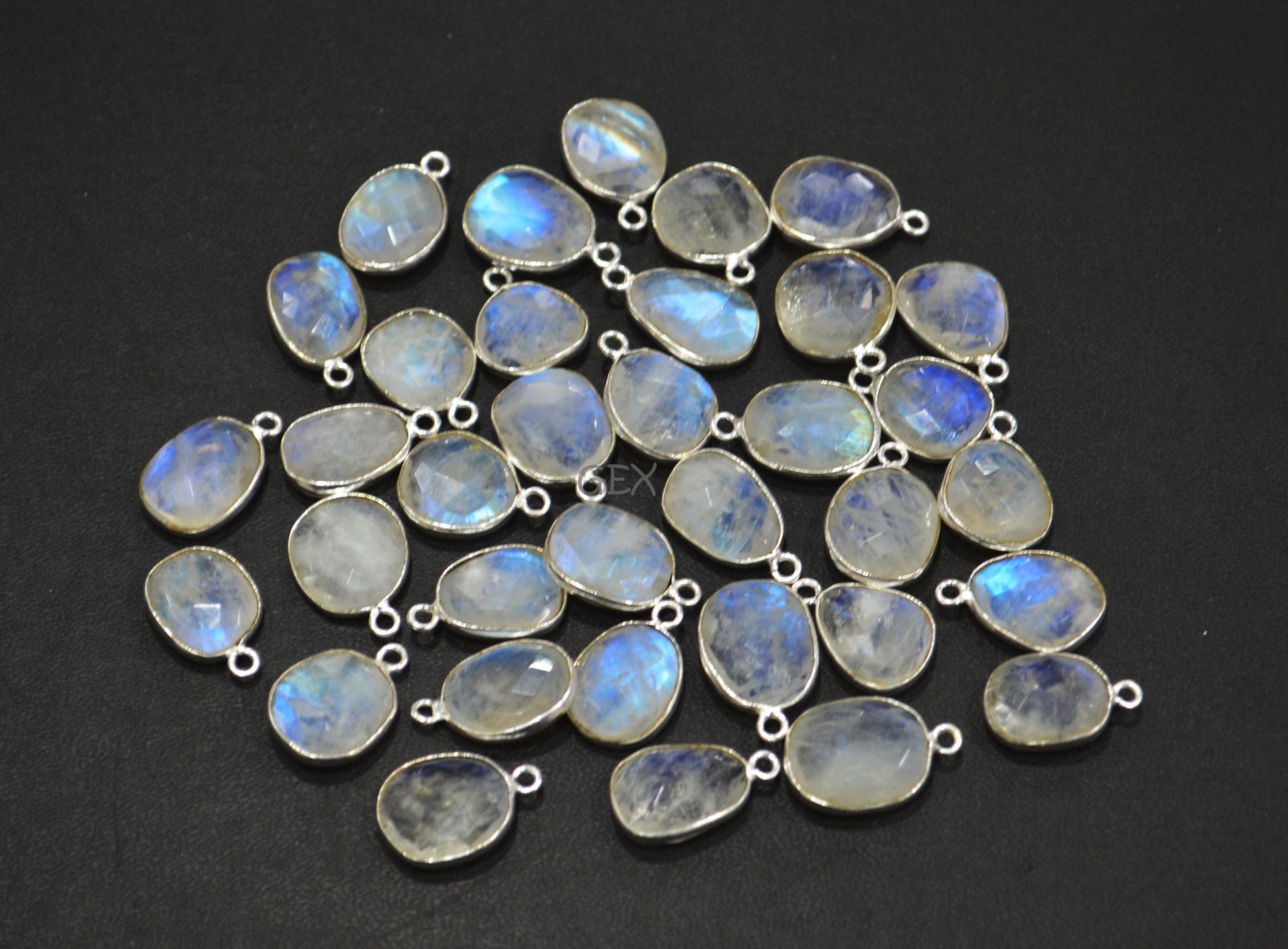 Rainbow Moonstone Faceted Free Form Shape Connector , Rainbow Moonstone Slice Shape Single Bail Bezel Connector , Sold By Piece , 11x13 - 12x16 mm , RB-7150