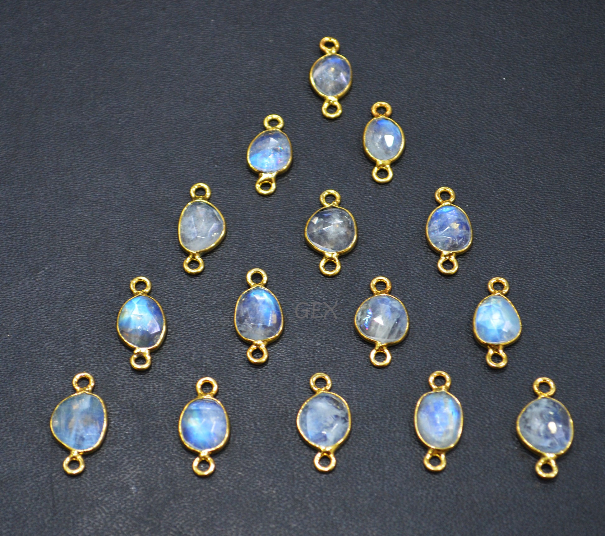 Rainbow Moonstone Faceted Free Form Shape Connector , Rainbow Moonstone Slice Shape Double Bail Bezel Connector , Sold By Piece , 7x8 - 8x11 mm , RB-7230