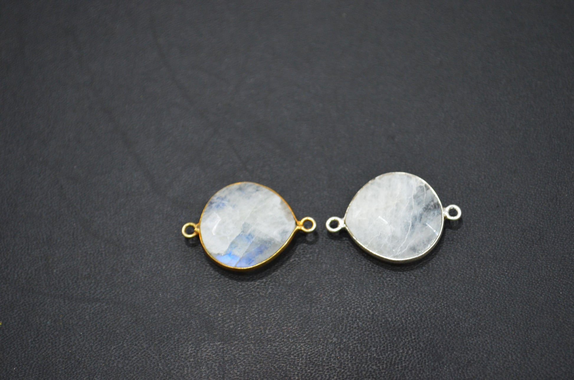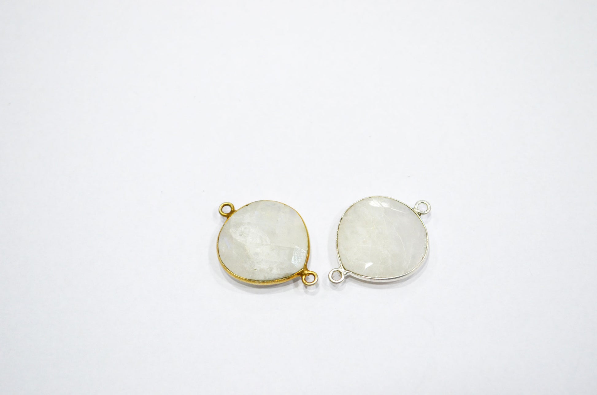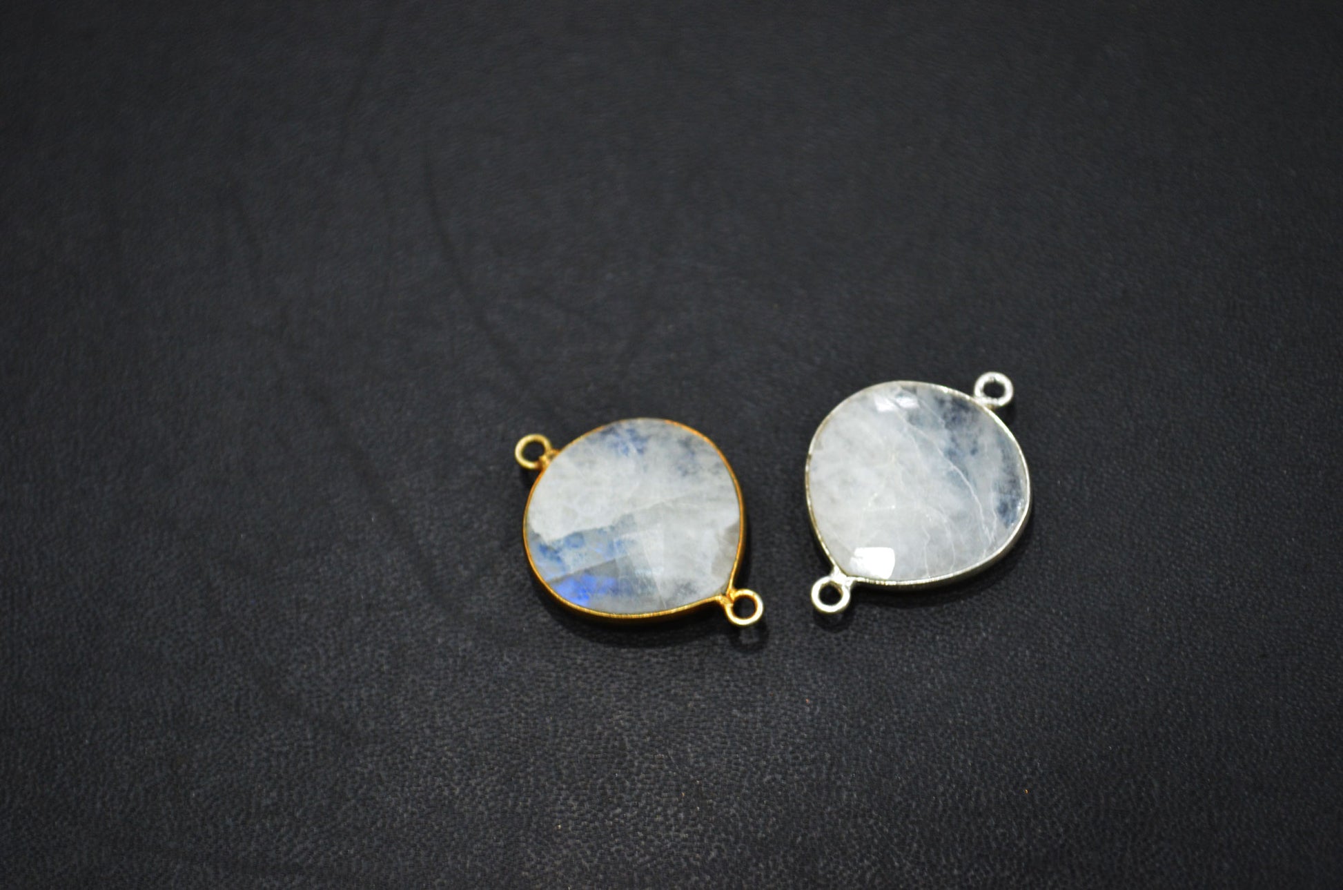 Rainbow Moonstone Faceted Heart Shape Connector , Rainbow Moonstone Double Bail Bezel Connector , Sold By Piece , 18 mm , RB-5450