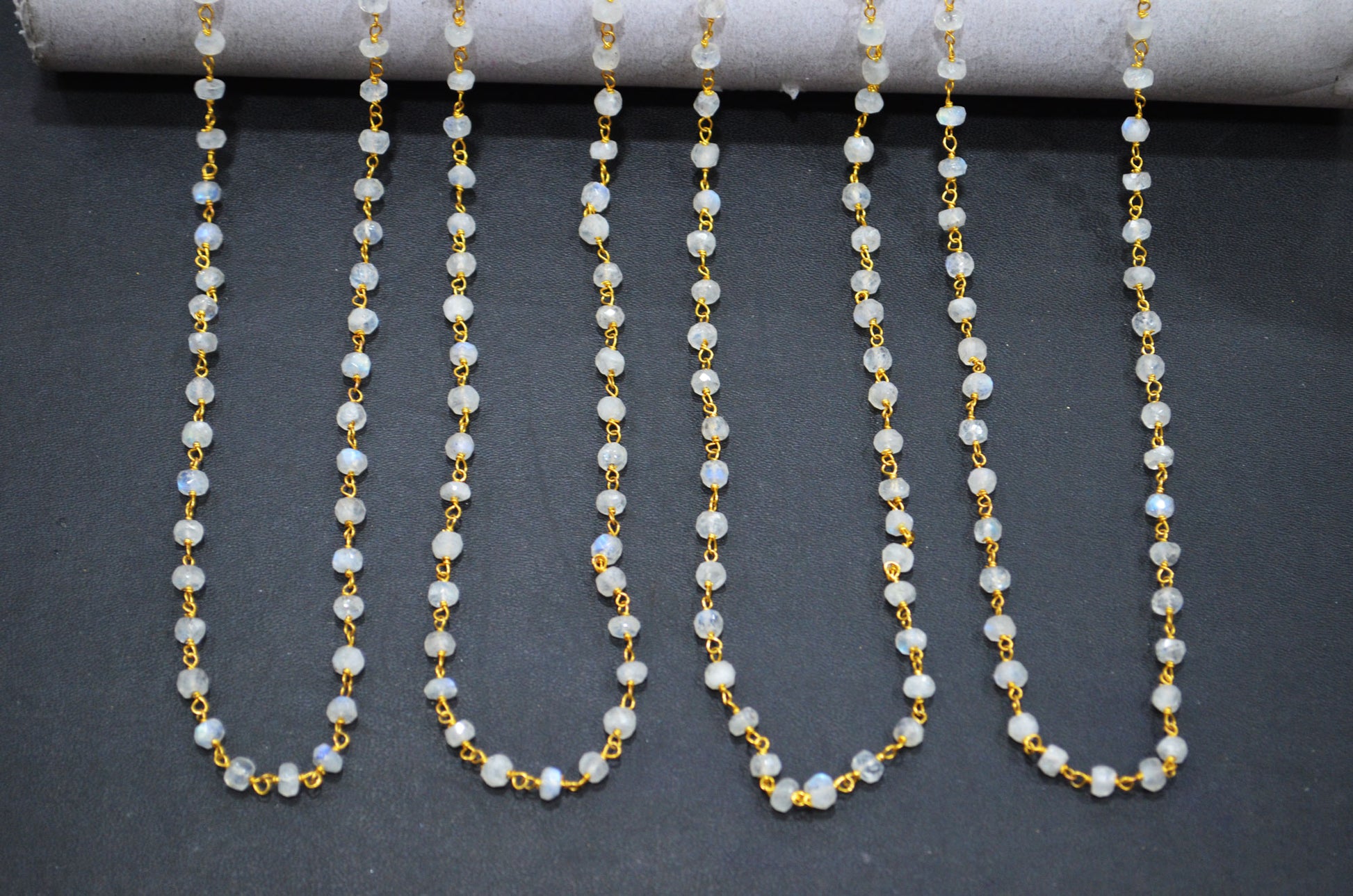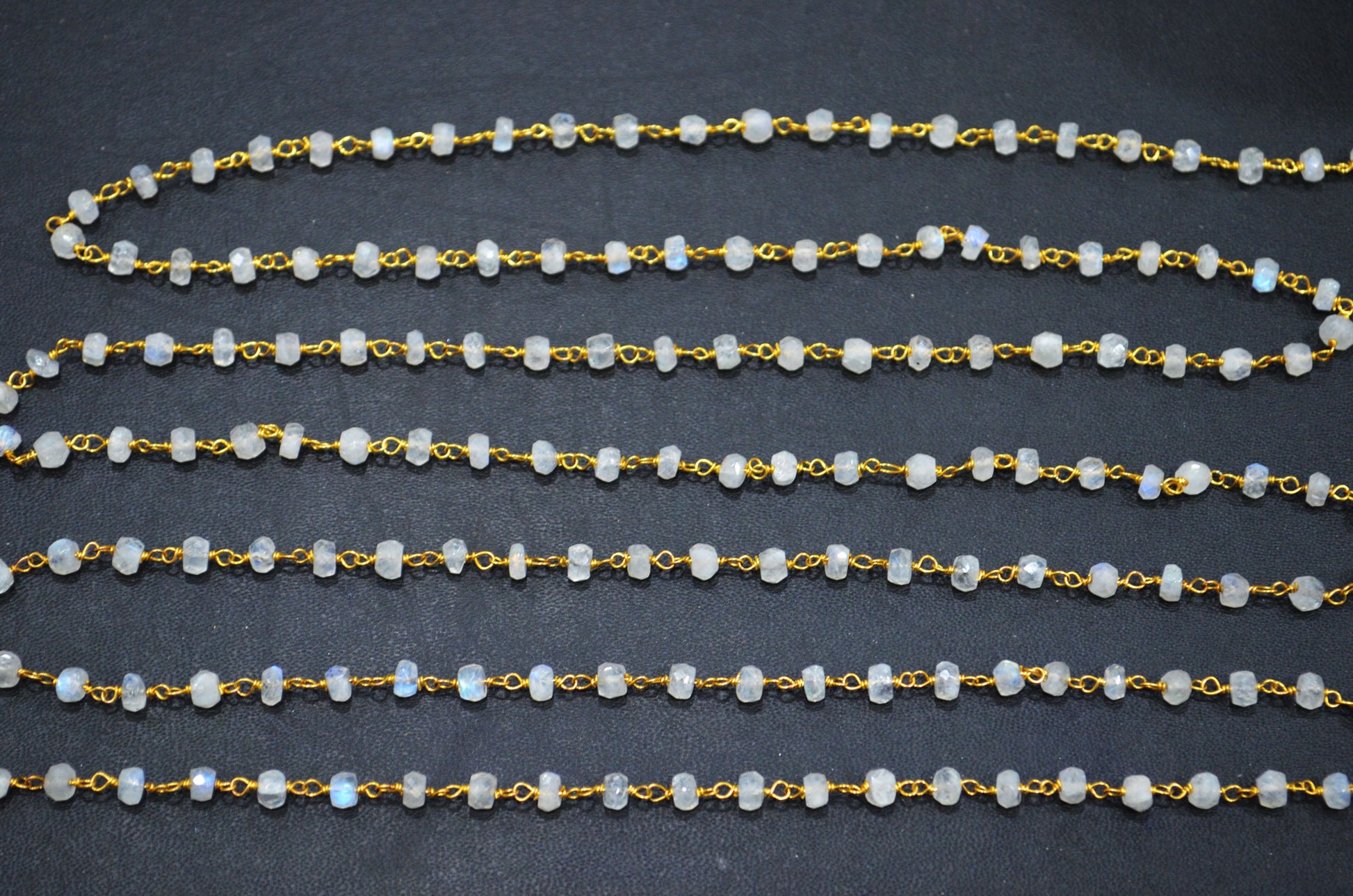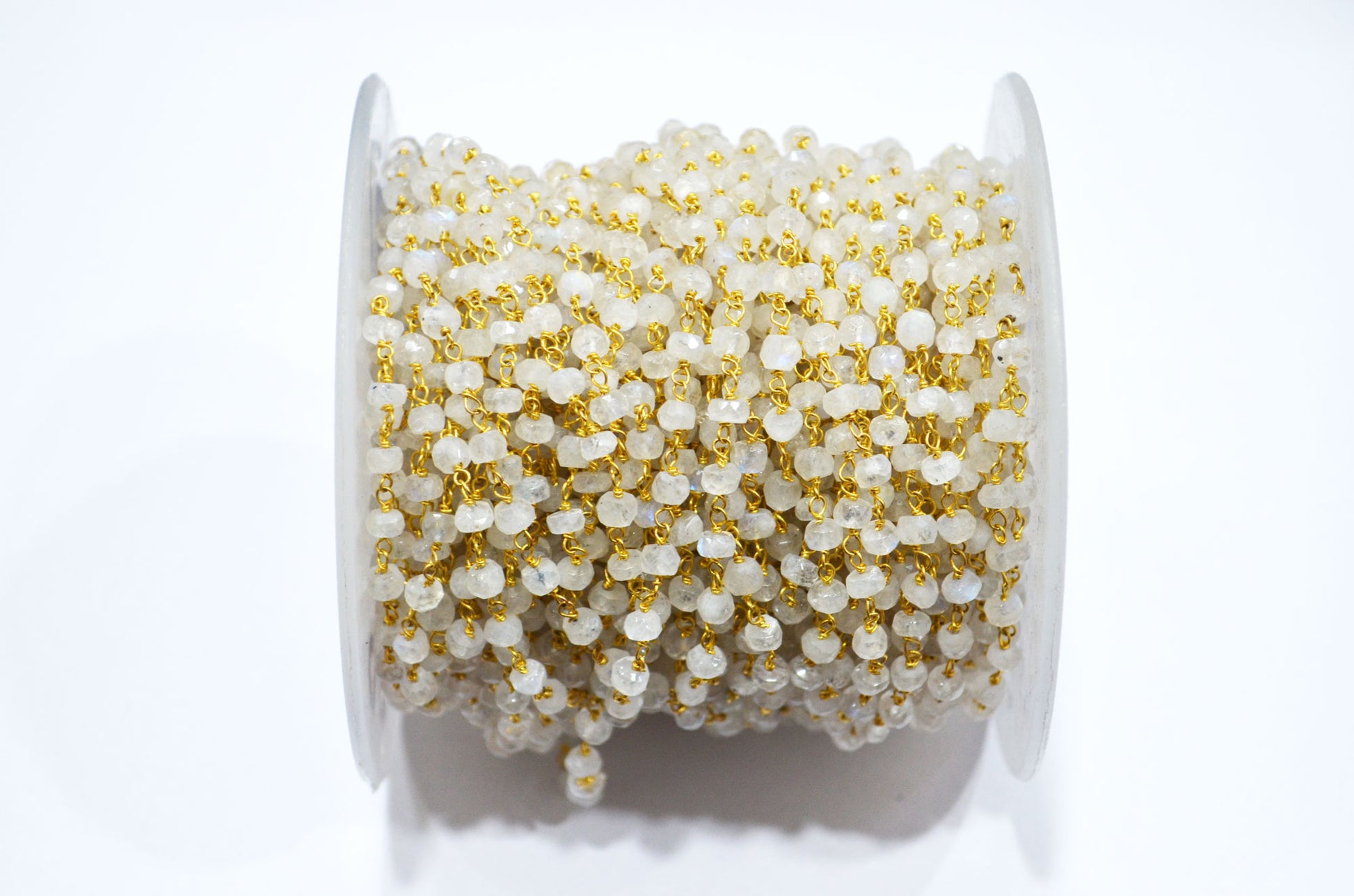 Rainbow Moonstone Faceted Rondelle Shape Rosary Beaded Chain , Rainbow Moonstone Wire Wrapped Chain , 4.50 - 5 mm , RB-5757