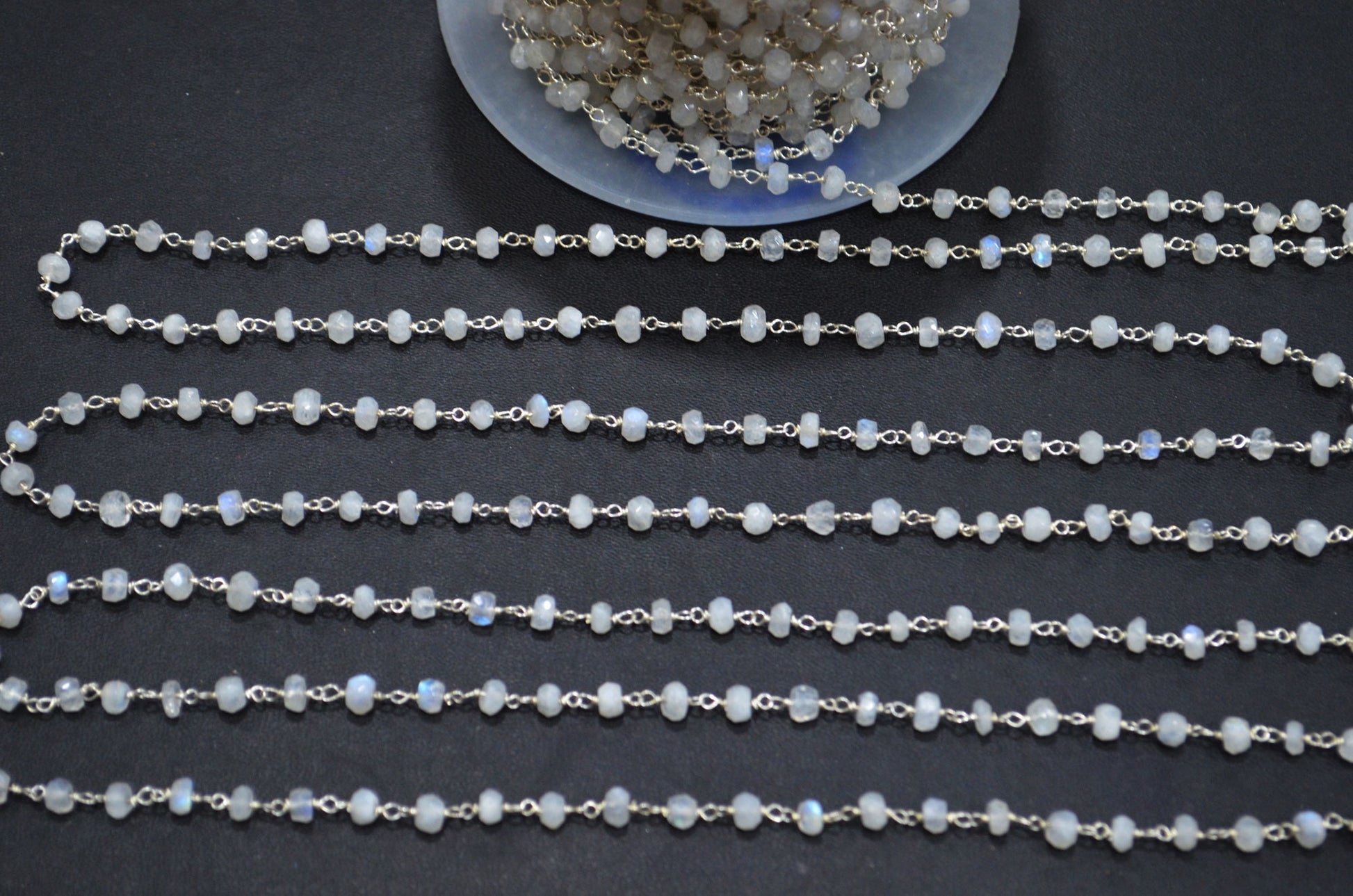 Rainbow Moonstone Faceted Rondelle Shape Rosary Beaded Chain , Rainbow Moonstone Wire Wrapped Chain , 4 - 4.50 mm , RB-5756