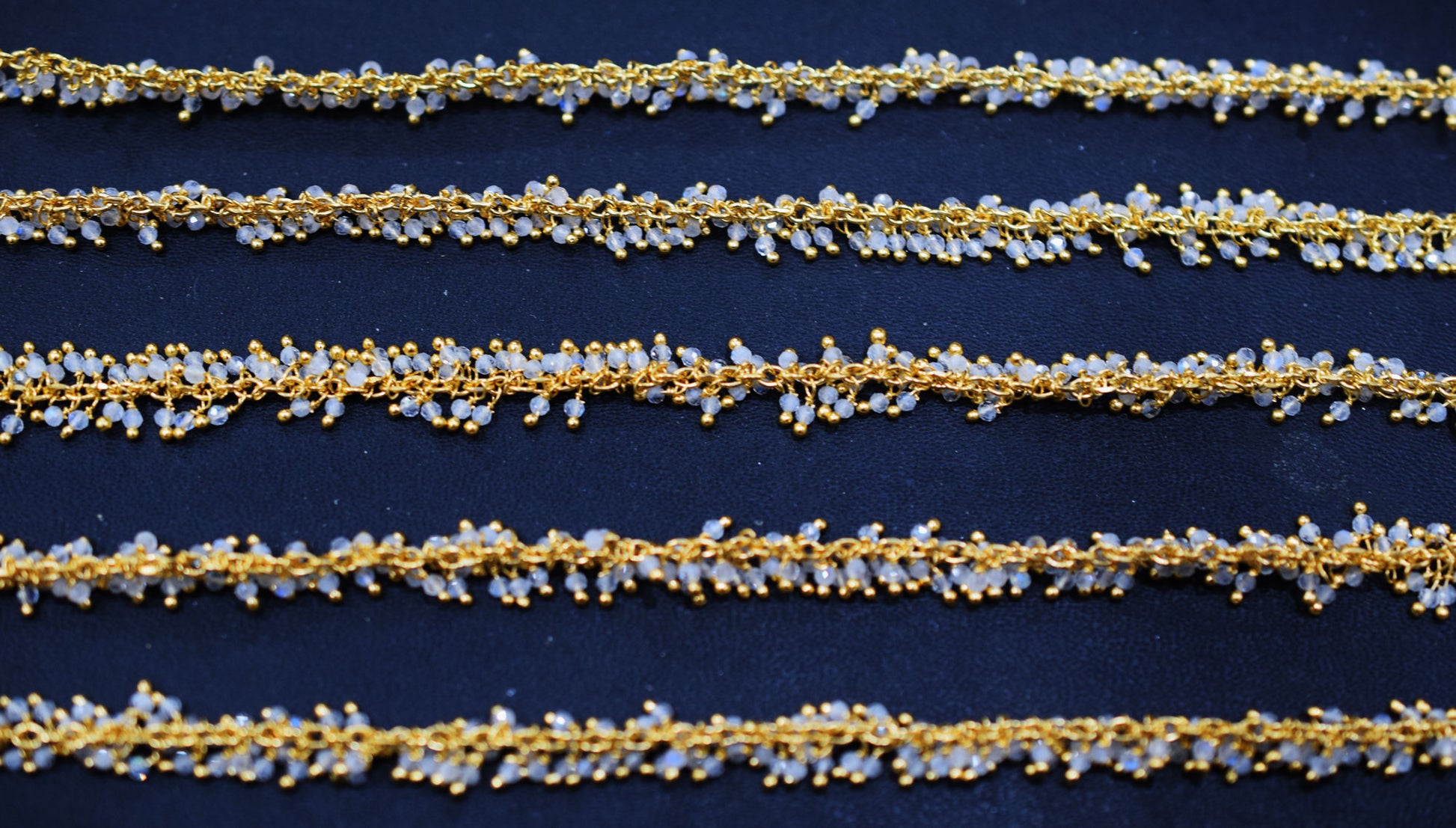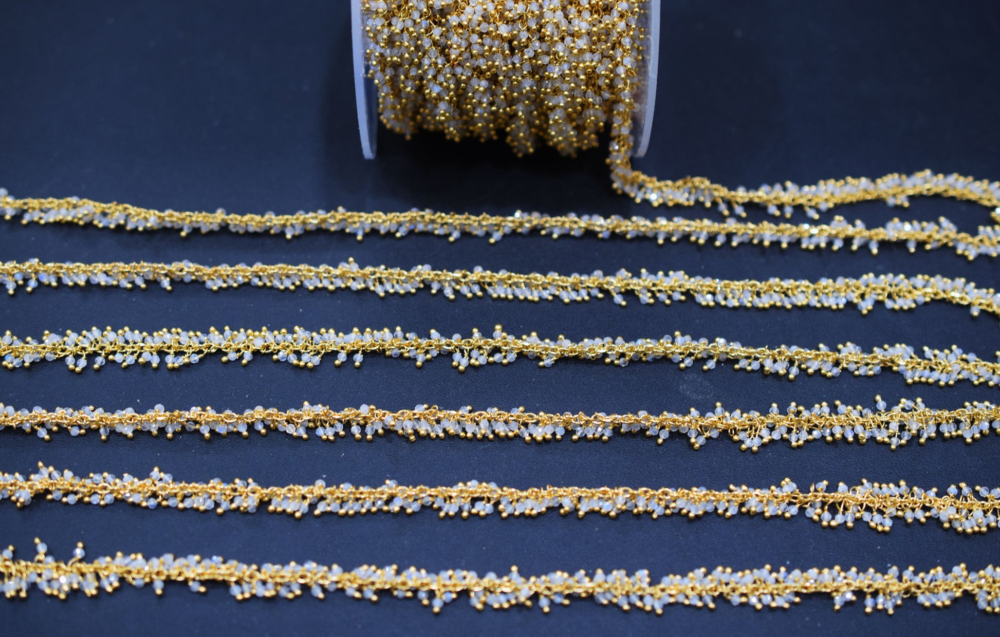 Rainbow Moonstone Faceted Round Shape Grape Chain , Rainbow Moonstone Angoori Cluster Wire Wrapped Chain , 2 mm , RB-6587