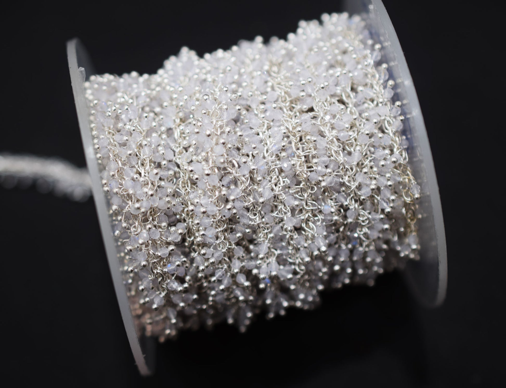 Rainbow Moonstone Faceted Round Shape Grape Chain , 2 mm , RB-6587
