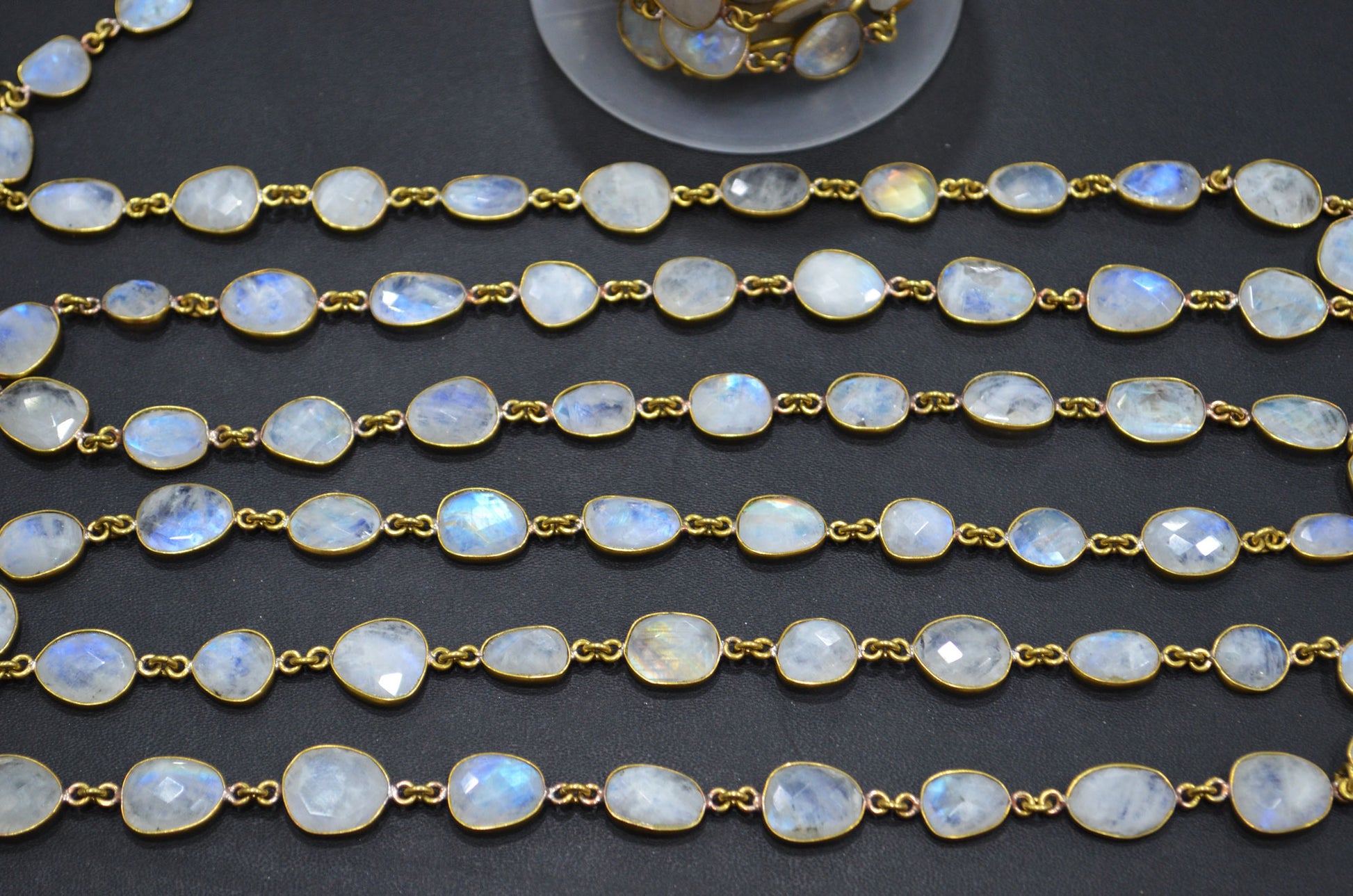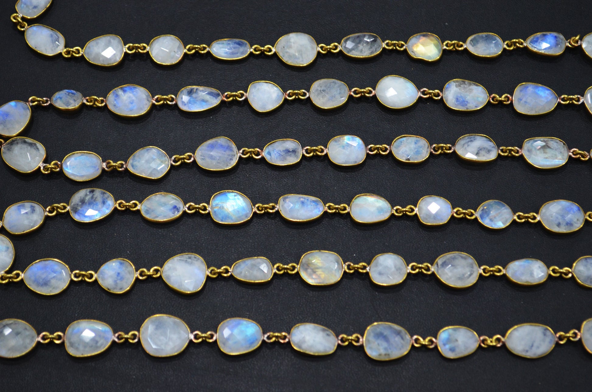Rainbow Moonstone Faceted Slice Shape Connector Chain , Rainbow Moonstone Free Form Shape Bezel Link Chain , 9 - 13 mm , RB-5726