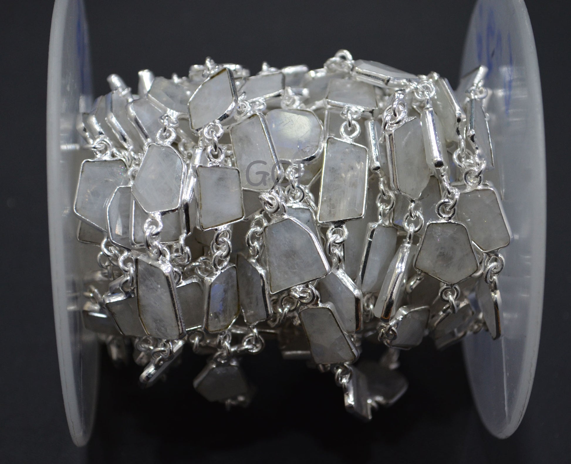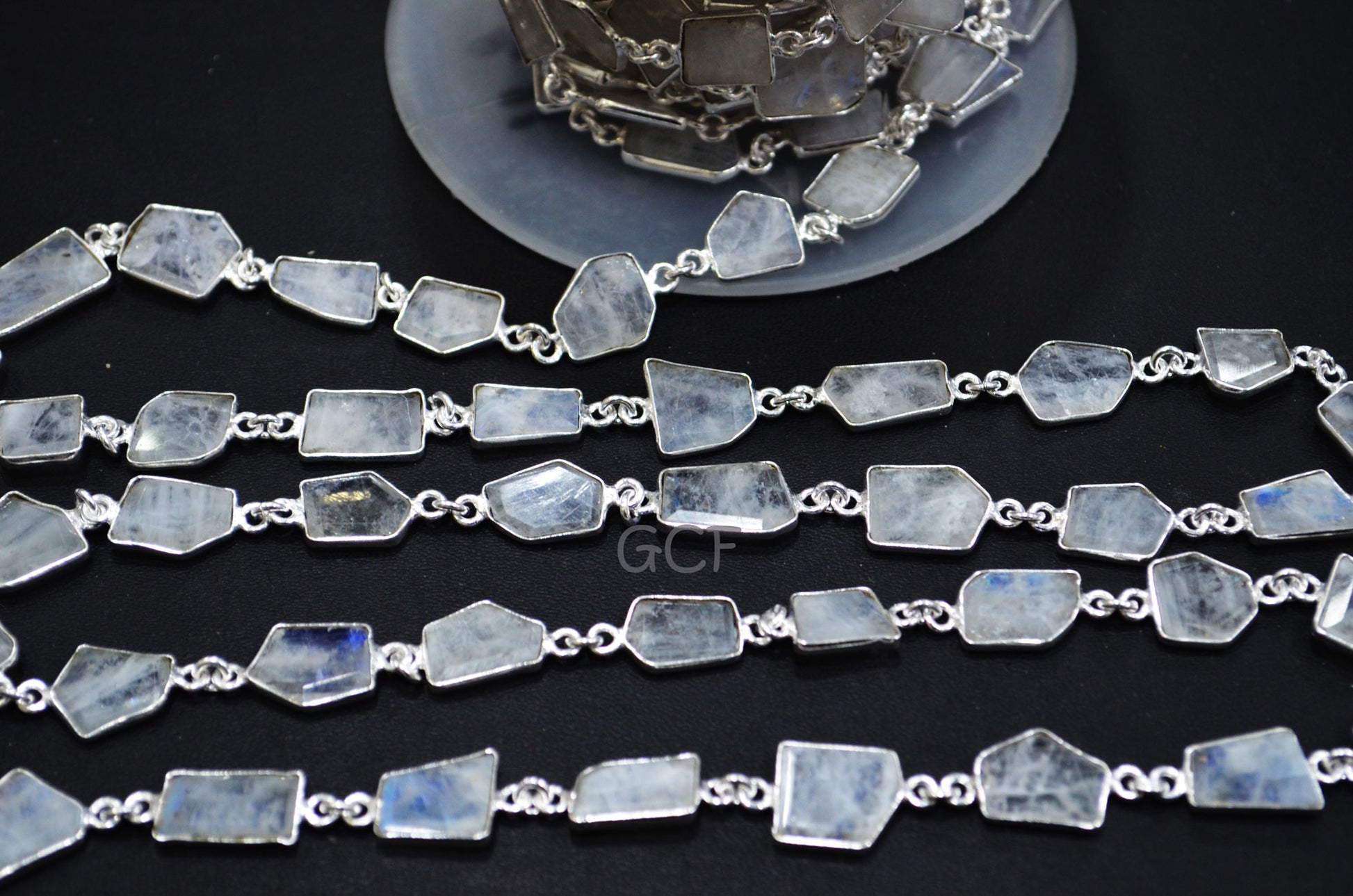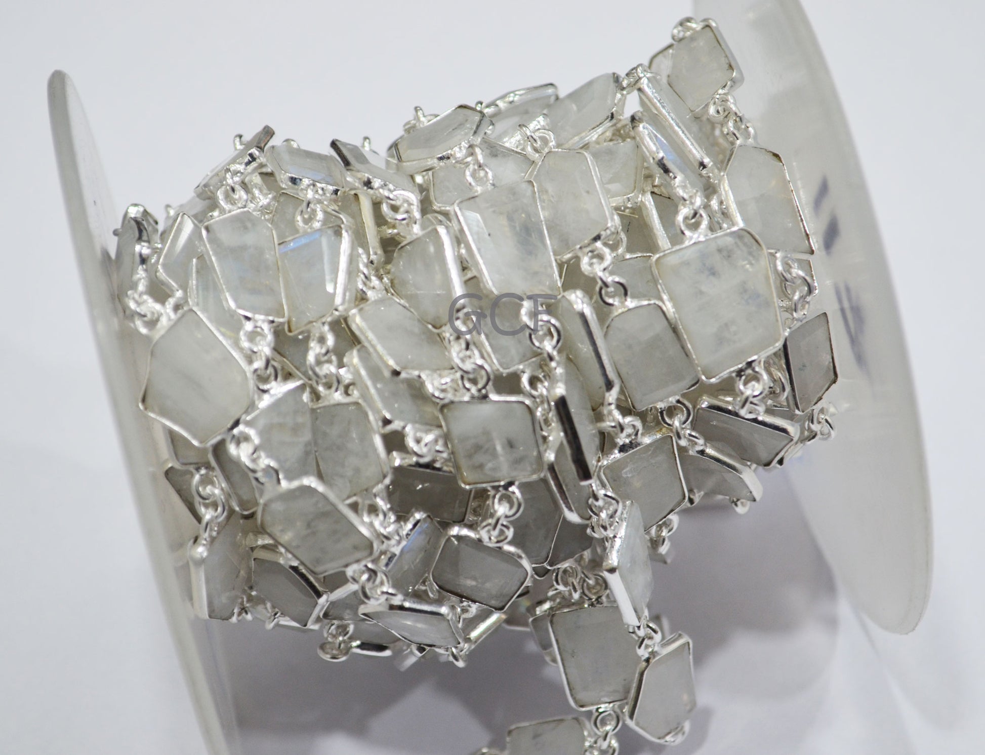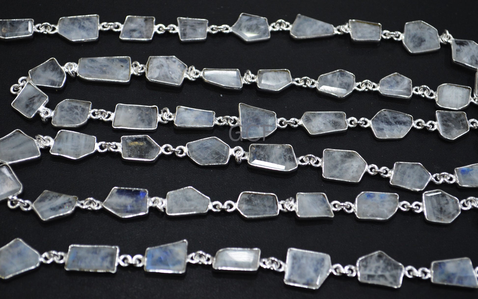 Rainbow Moonstone Fancy Cut Connector Chain , Rainbow Moonstone Fancy Cut Bezel Link Chain , 10x11 - 9x16 mm , 6769