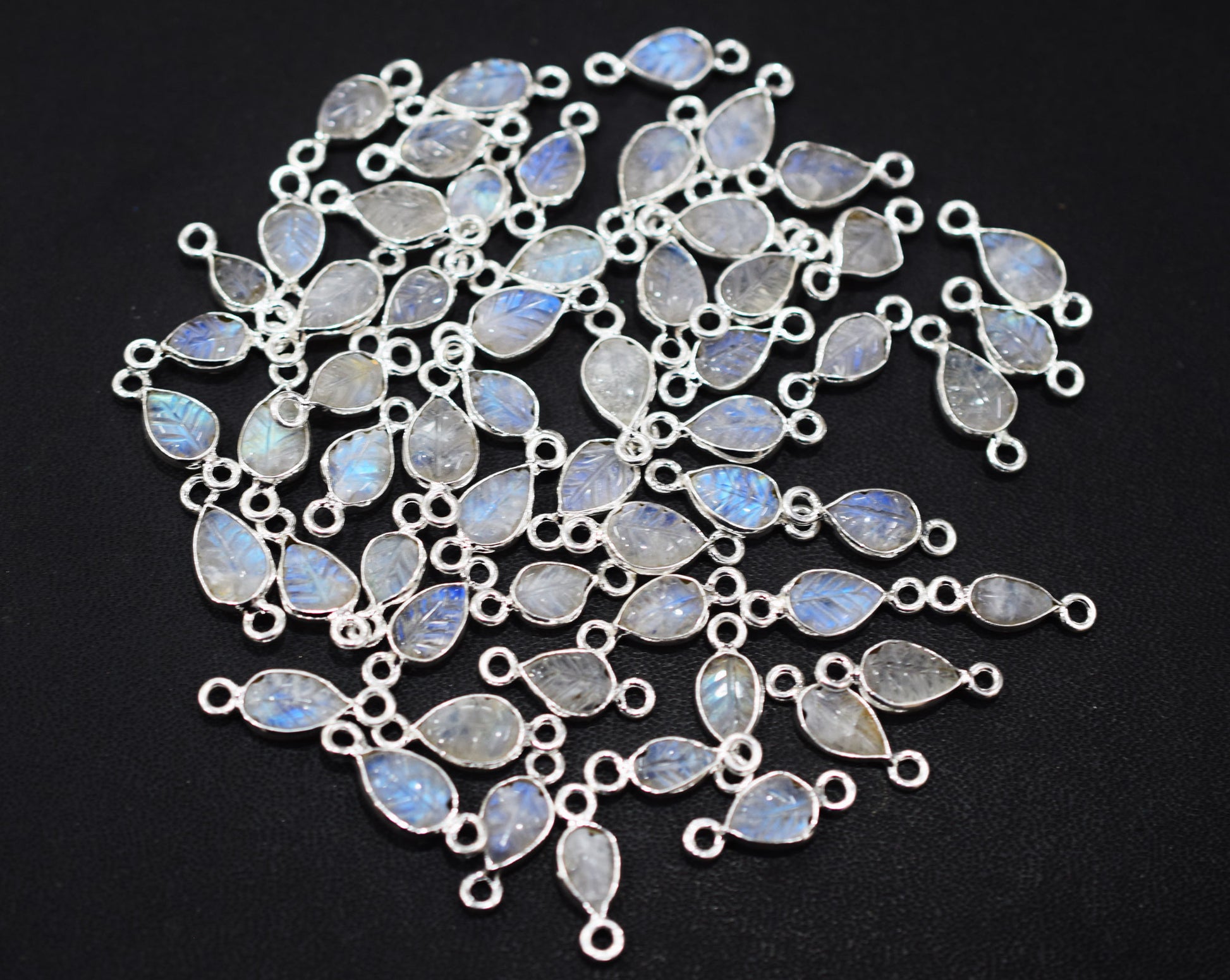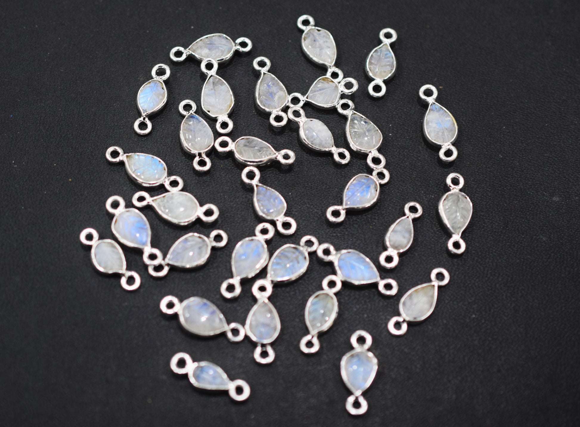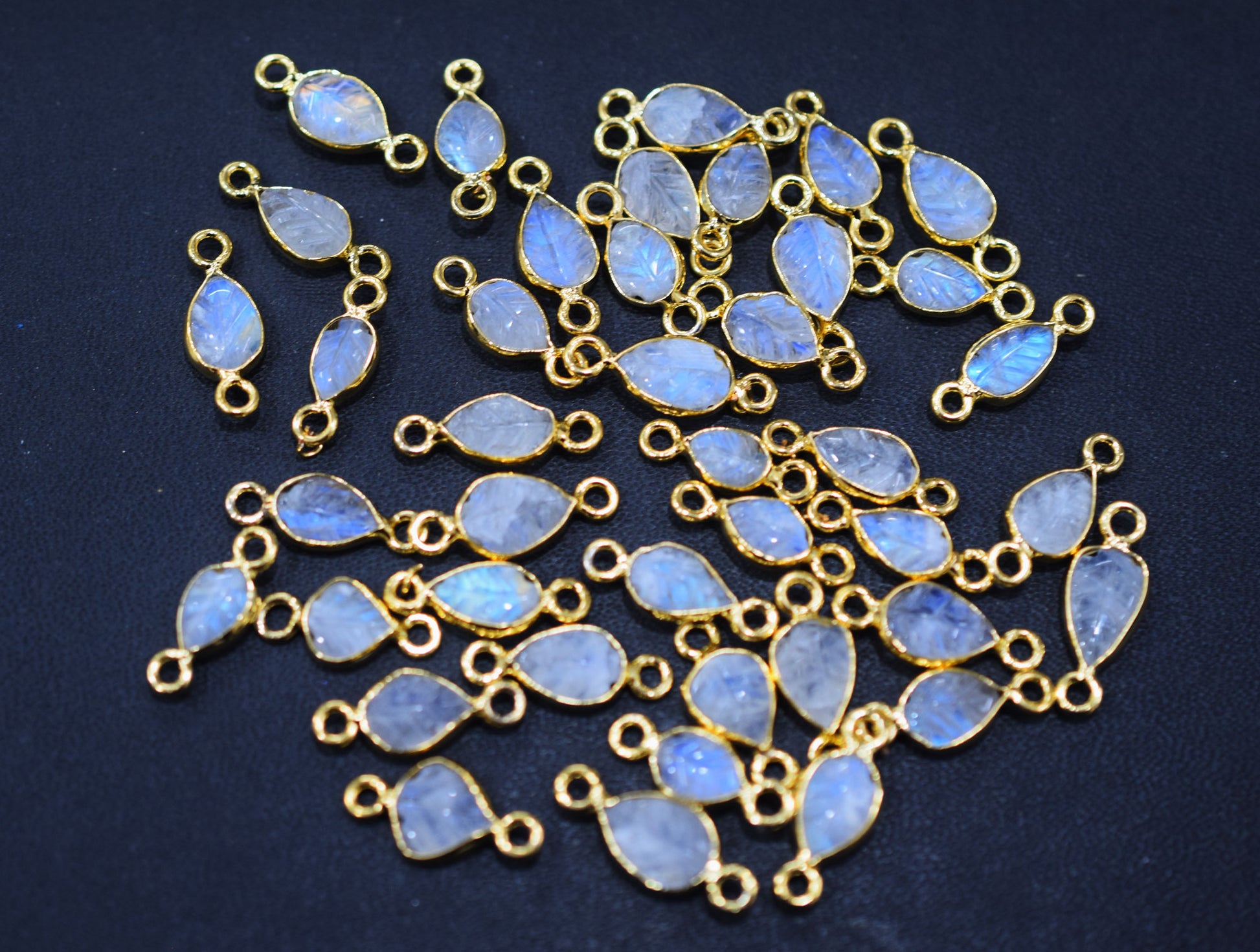 Rainbow Moonstone Hand Carved Leaf Shape Connector , Rainbow Moonstone Double Bail Bezel Connector , Sold By Piece , 5x6 - 8x10 mm , RB-6641