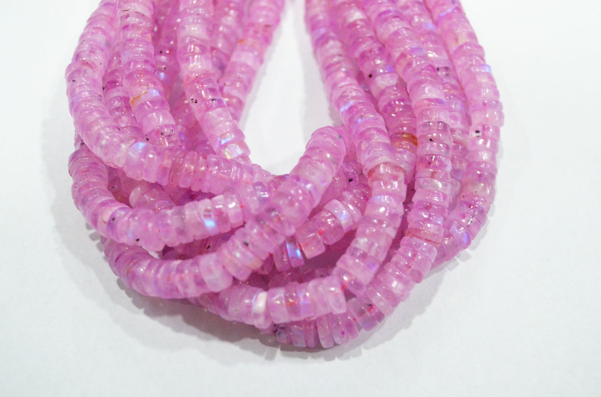 Rainbow Moonstone Mystic Pink Color Coated Tyre Shape Beads , Rainbow Moonstone Smooth Beads , Sold By Strand , 6.50 - 7 mm , 16", 20654