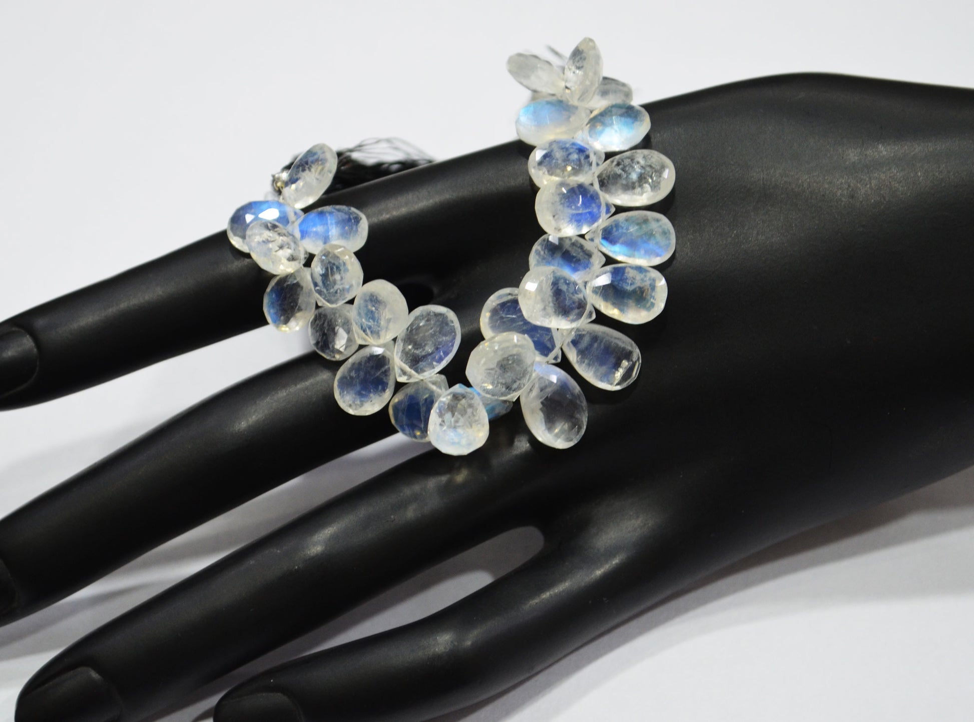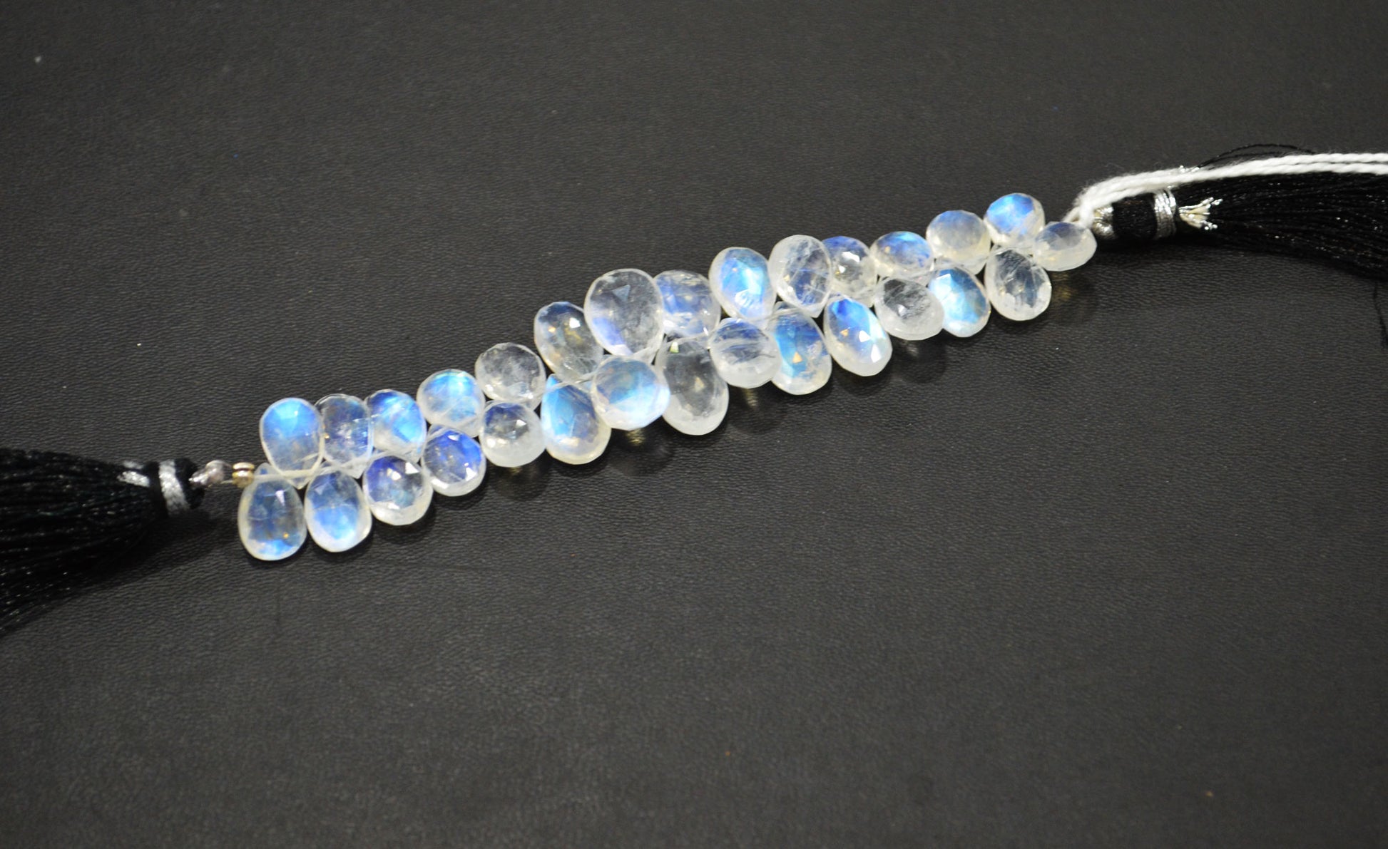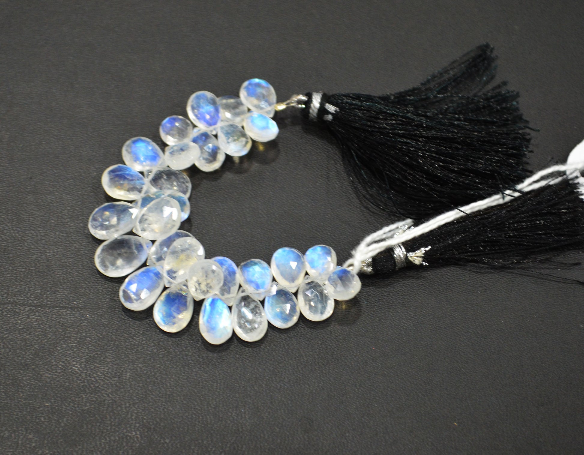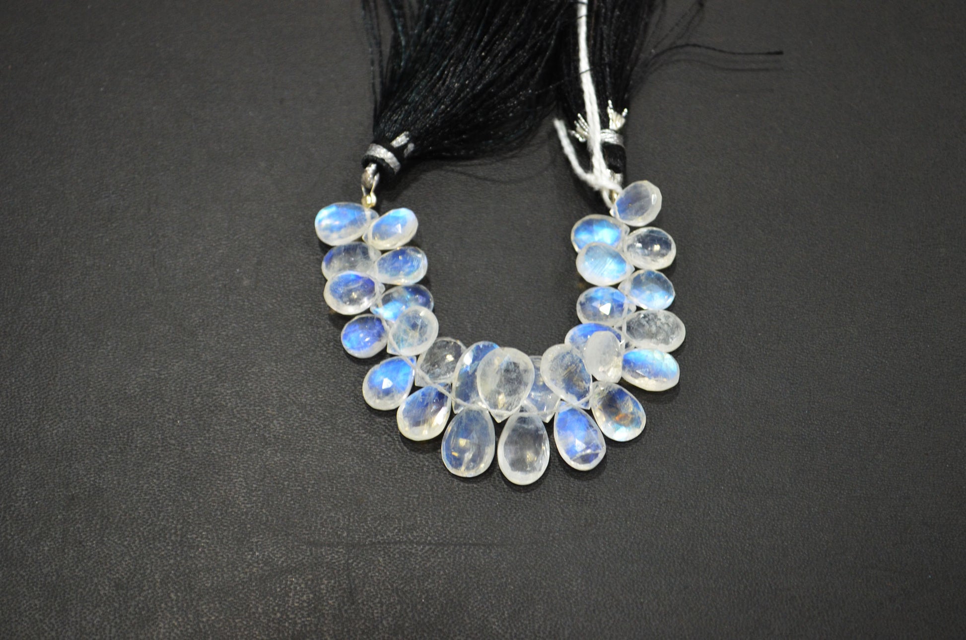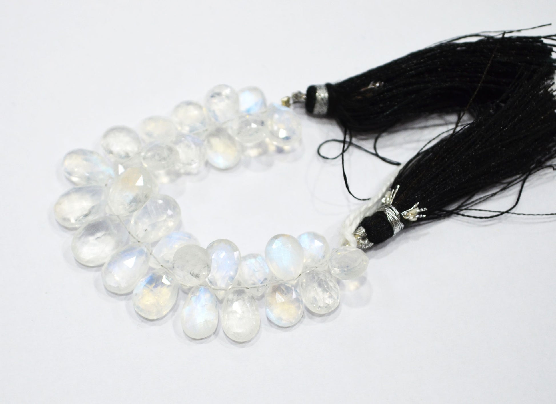 Rainbow Moonstone Pear Shape Beads , Natural Rainbow Moonstone Faceted Briolettes , 4 Inches , 7x10 - 9x12 mm , 32209