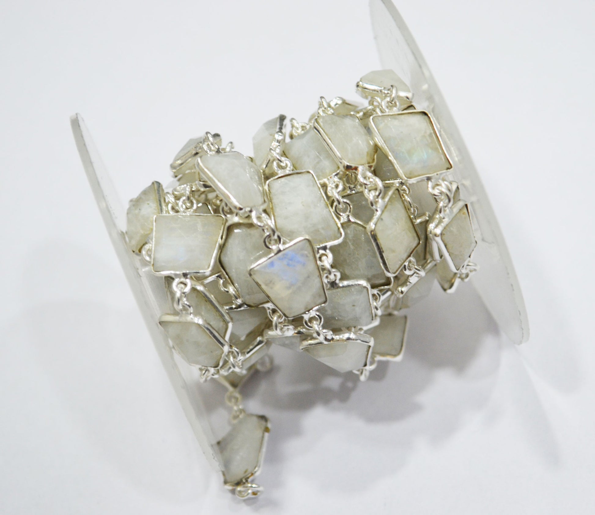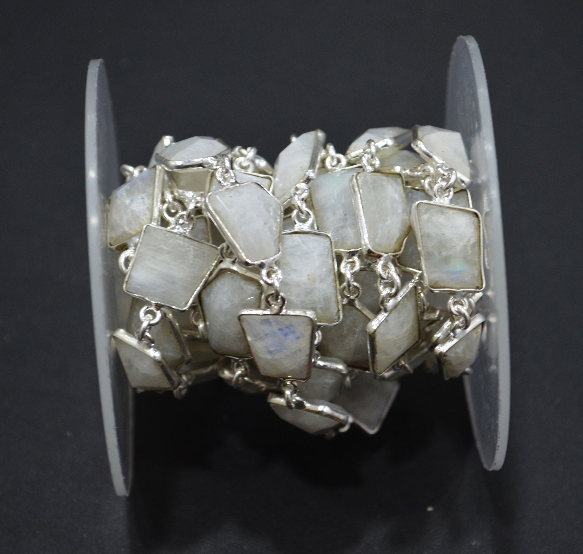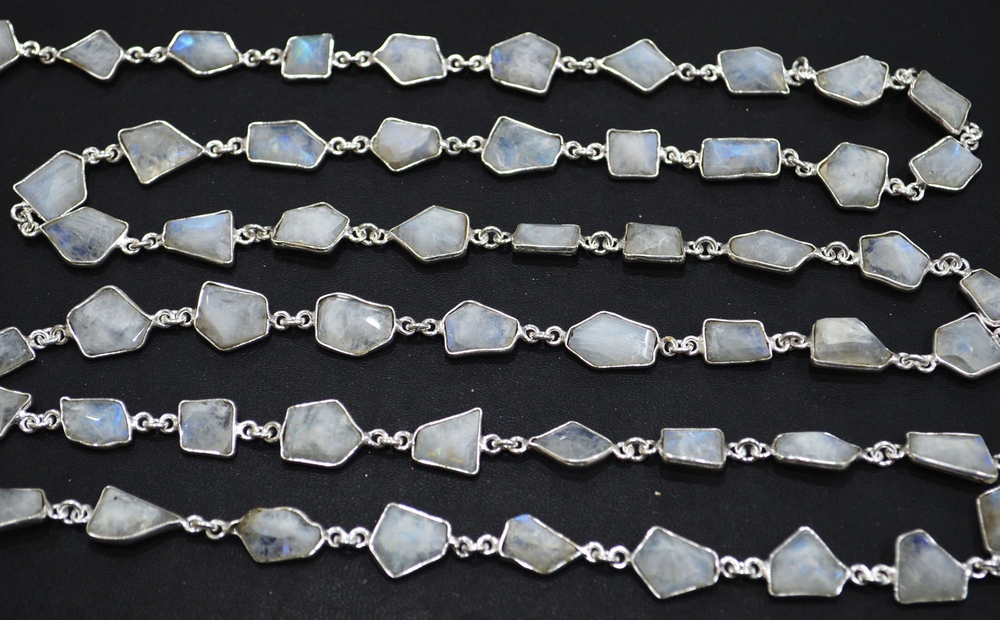 Rainbow Moonstone Silverite Fancy Cut Connector Chain , Rainbow Moonstone Silverite Bezel Link Chain , 8 - 14 mm , RB-6290