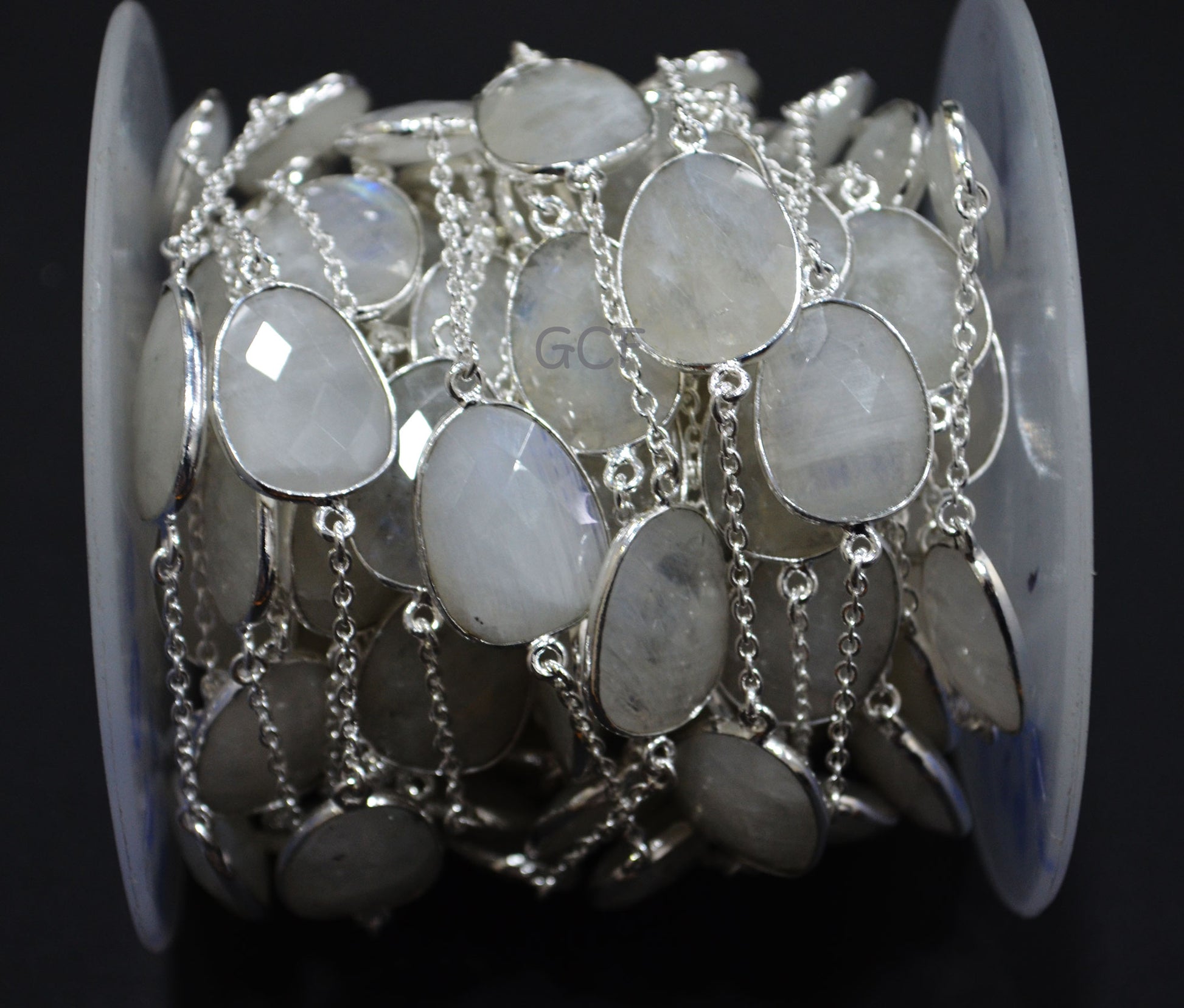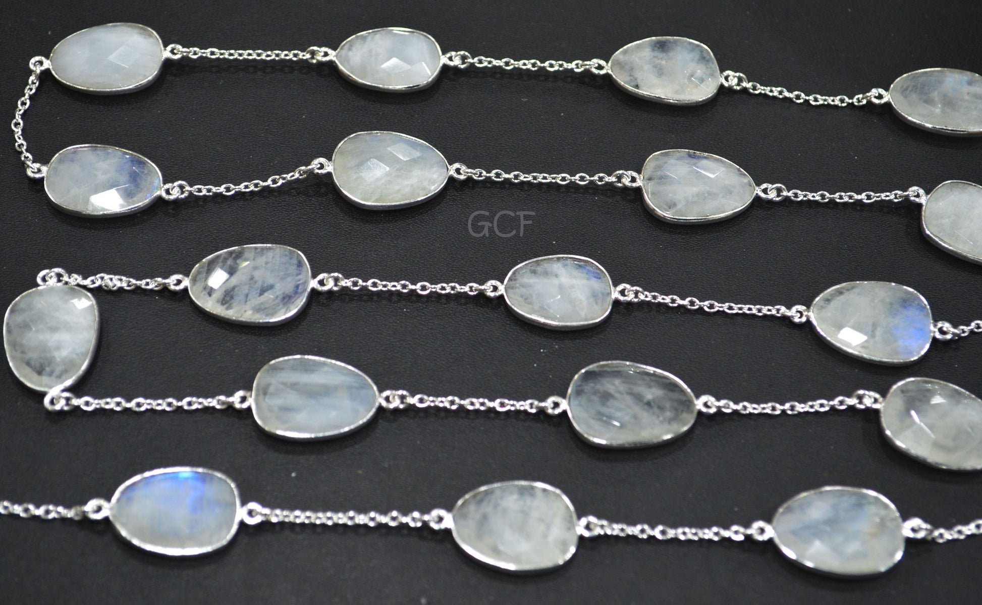Rainbow Moonstone Slice Hand Made Connector Chain , Rainbow Moonstone Slice Shape Bezel Link ChainΒ , 15x18 - 17x20 mm , 6820
