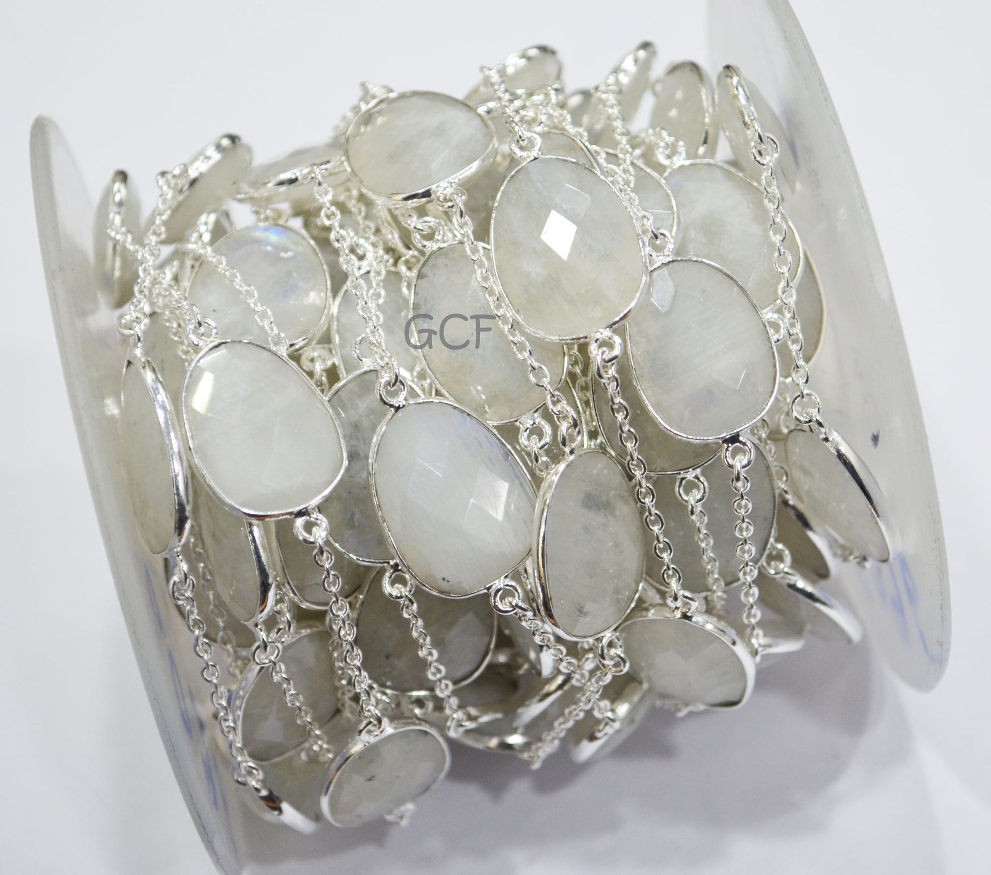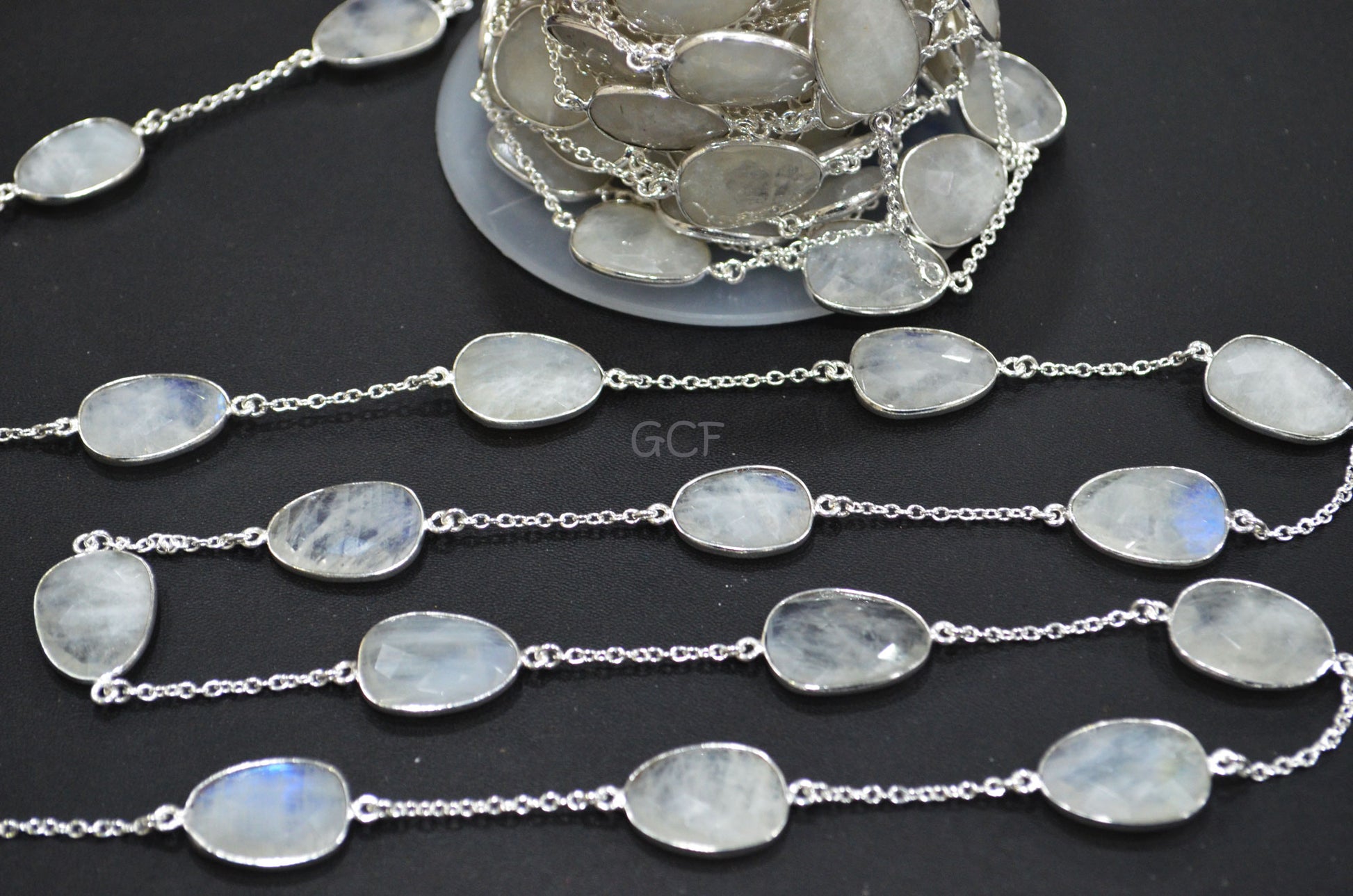 Rainbow Moonstone Slice Hand Made Connector Chain , Rainbow Moonstone Slice Shape Bezel Link Chain , 15x18 - 17x20 mm , 6820