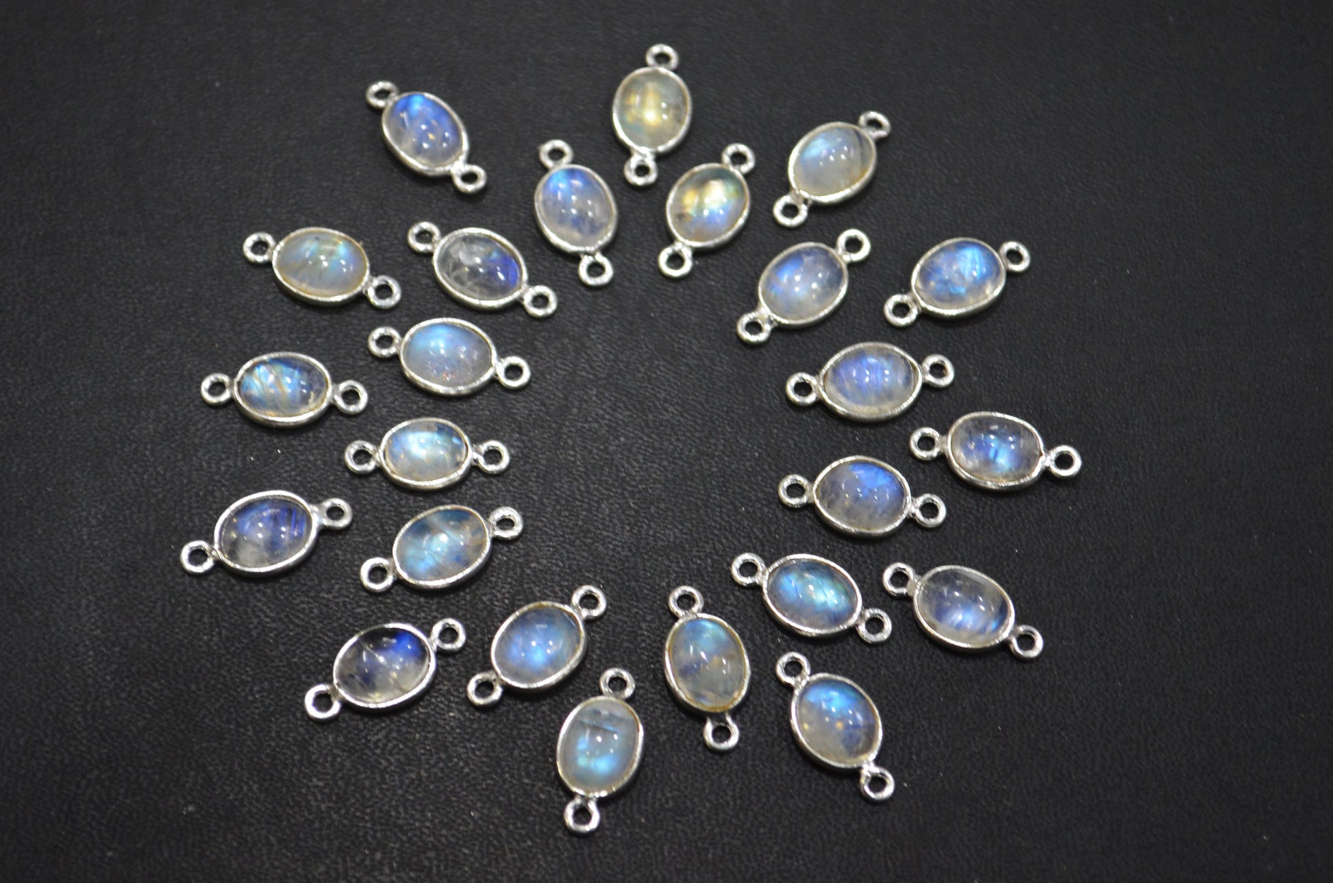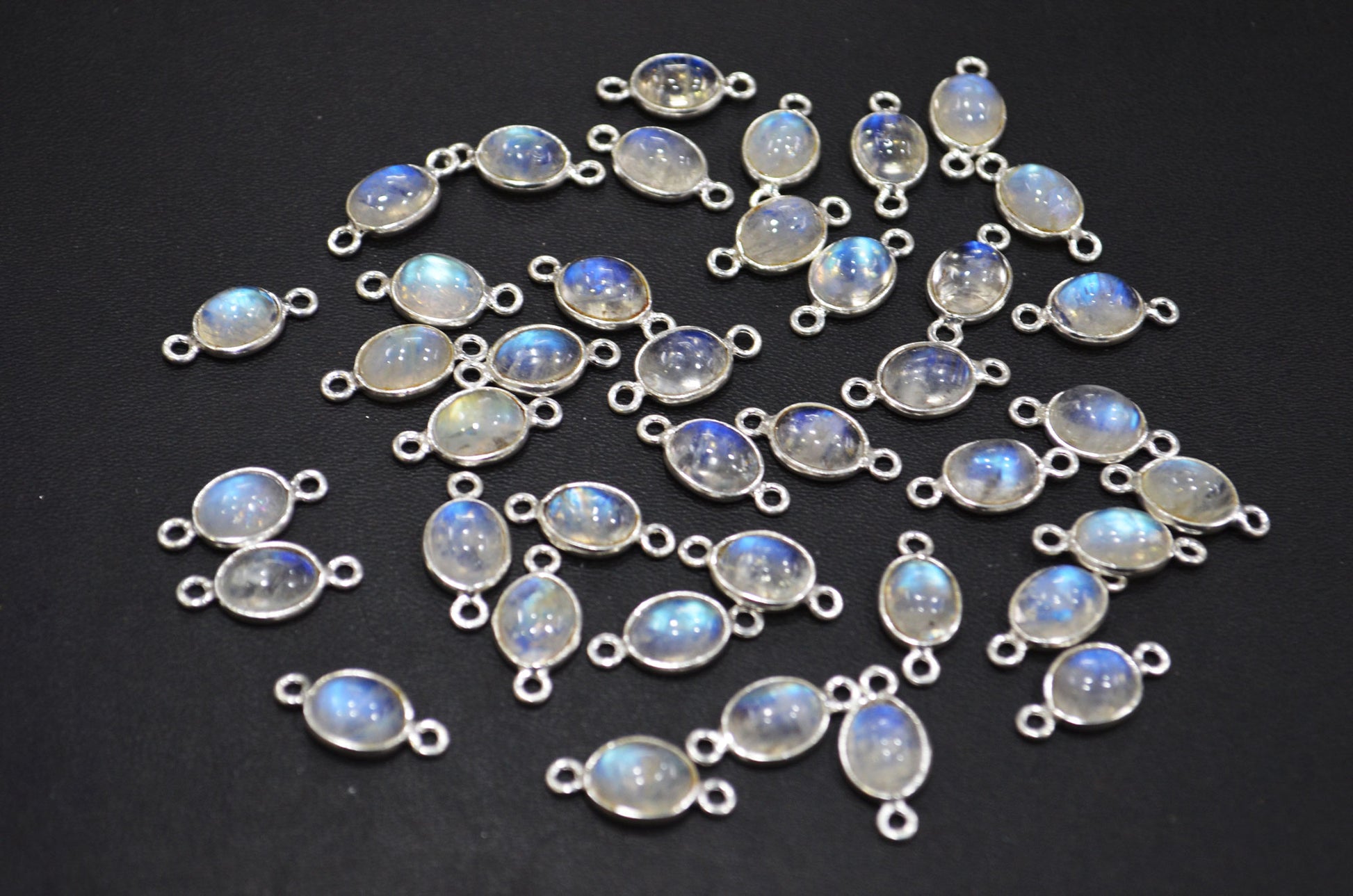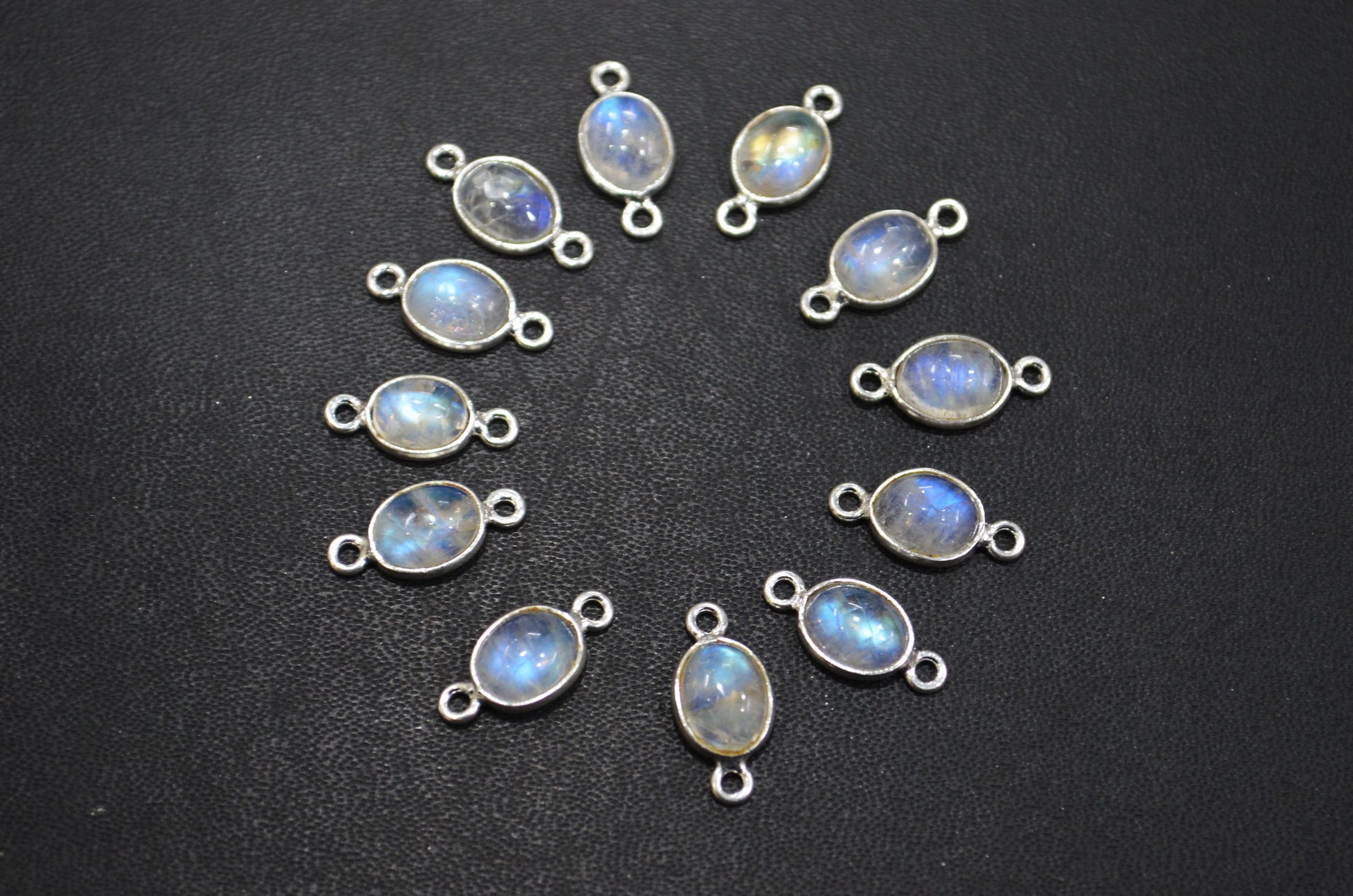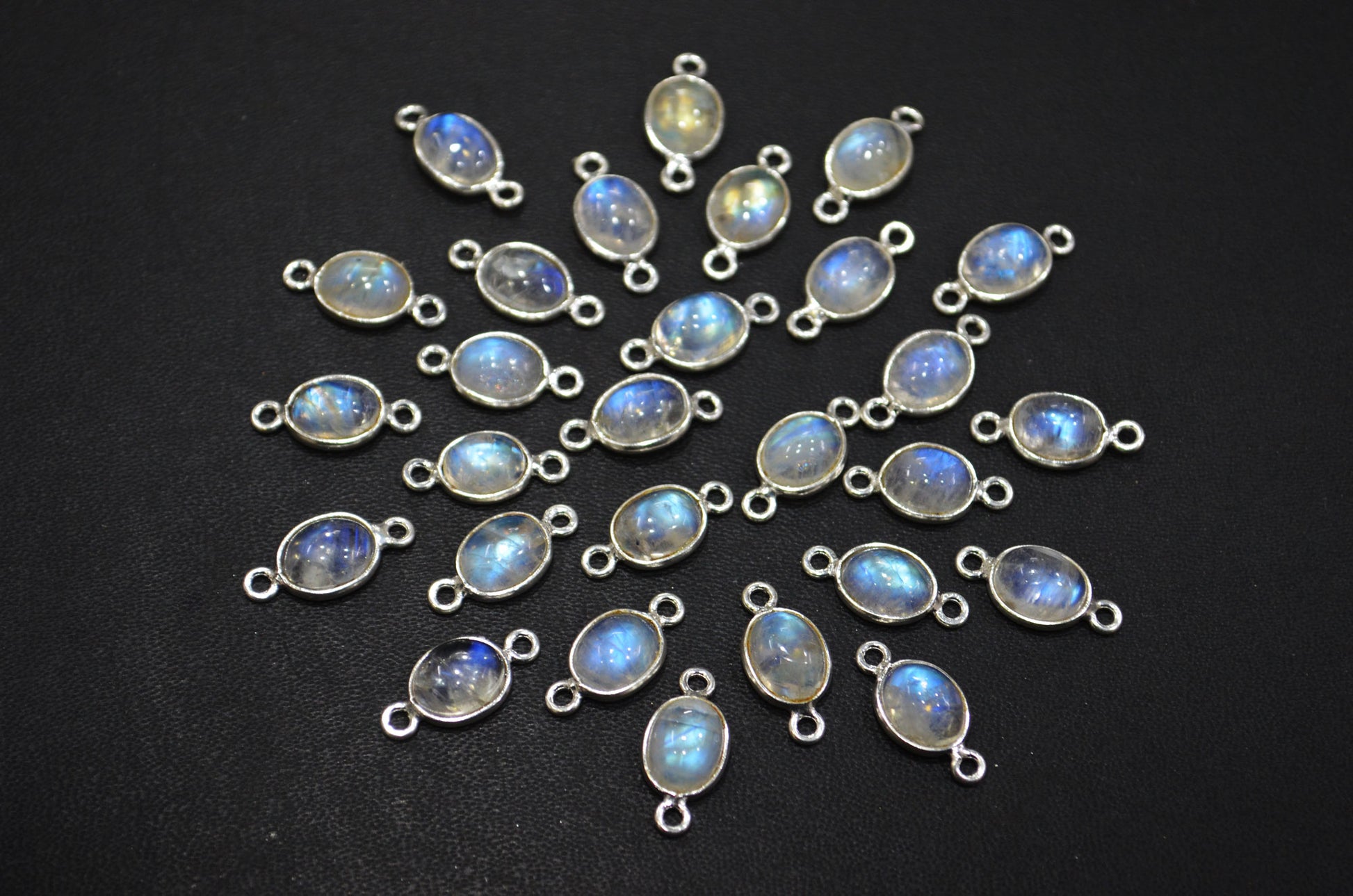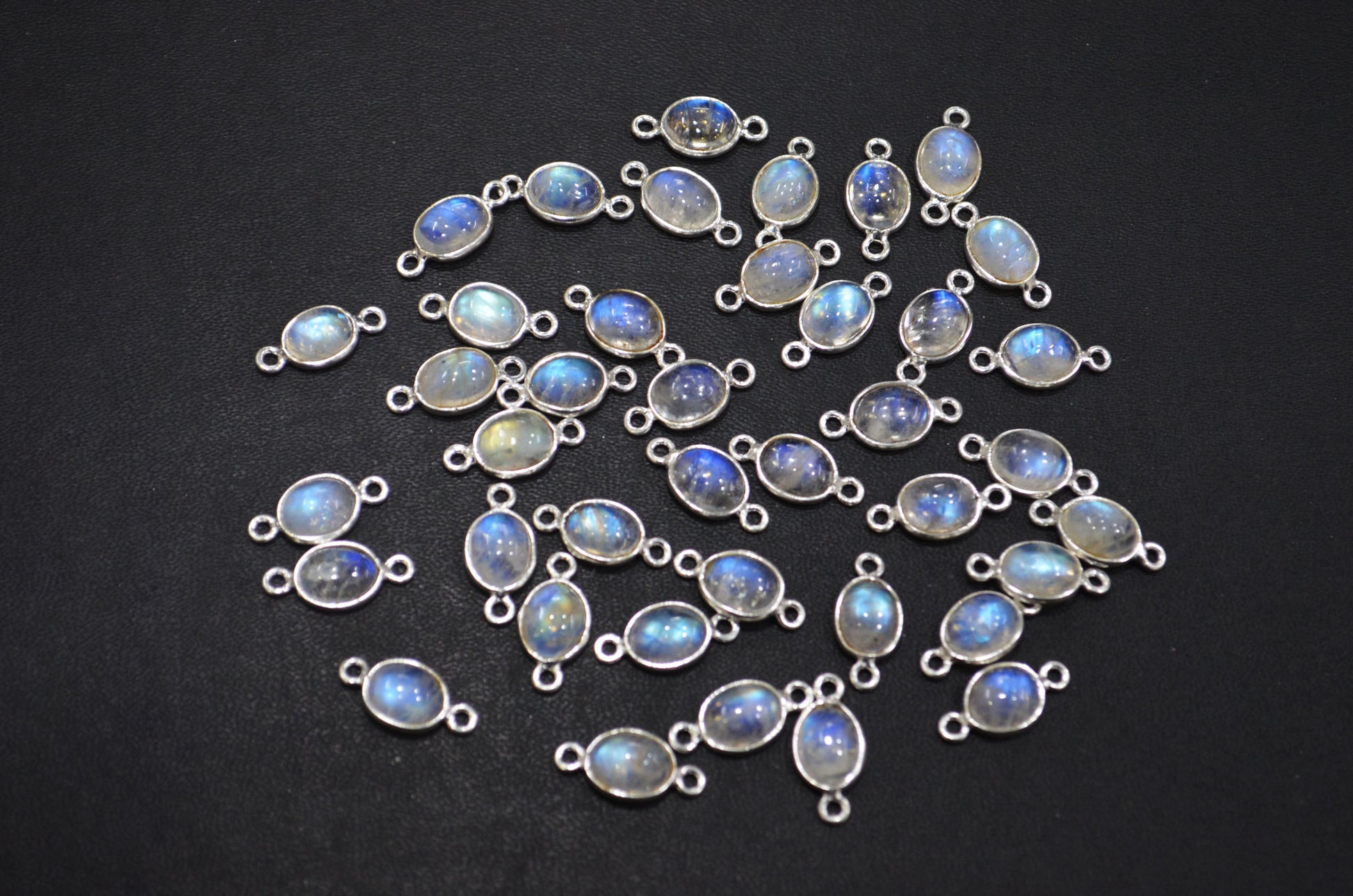 Rainbow Moonstone Smooth Oval Shape Double Bail Connector , Rainbow Moonstone Cabochon Bezel Connector , Sold By Piece , 8x16 mm , RB-6075