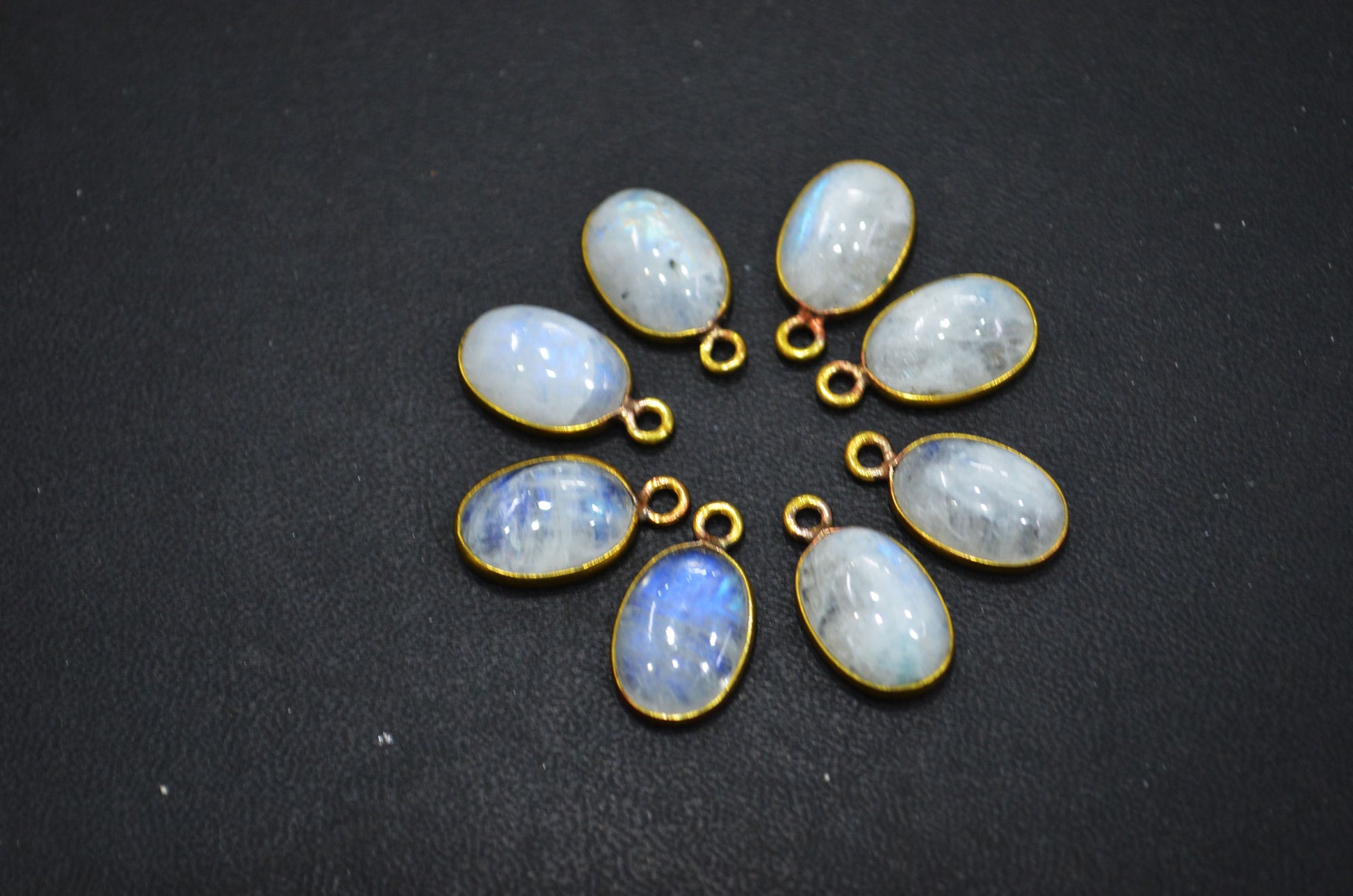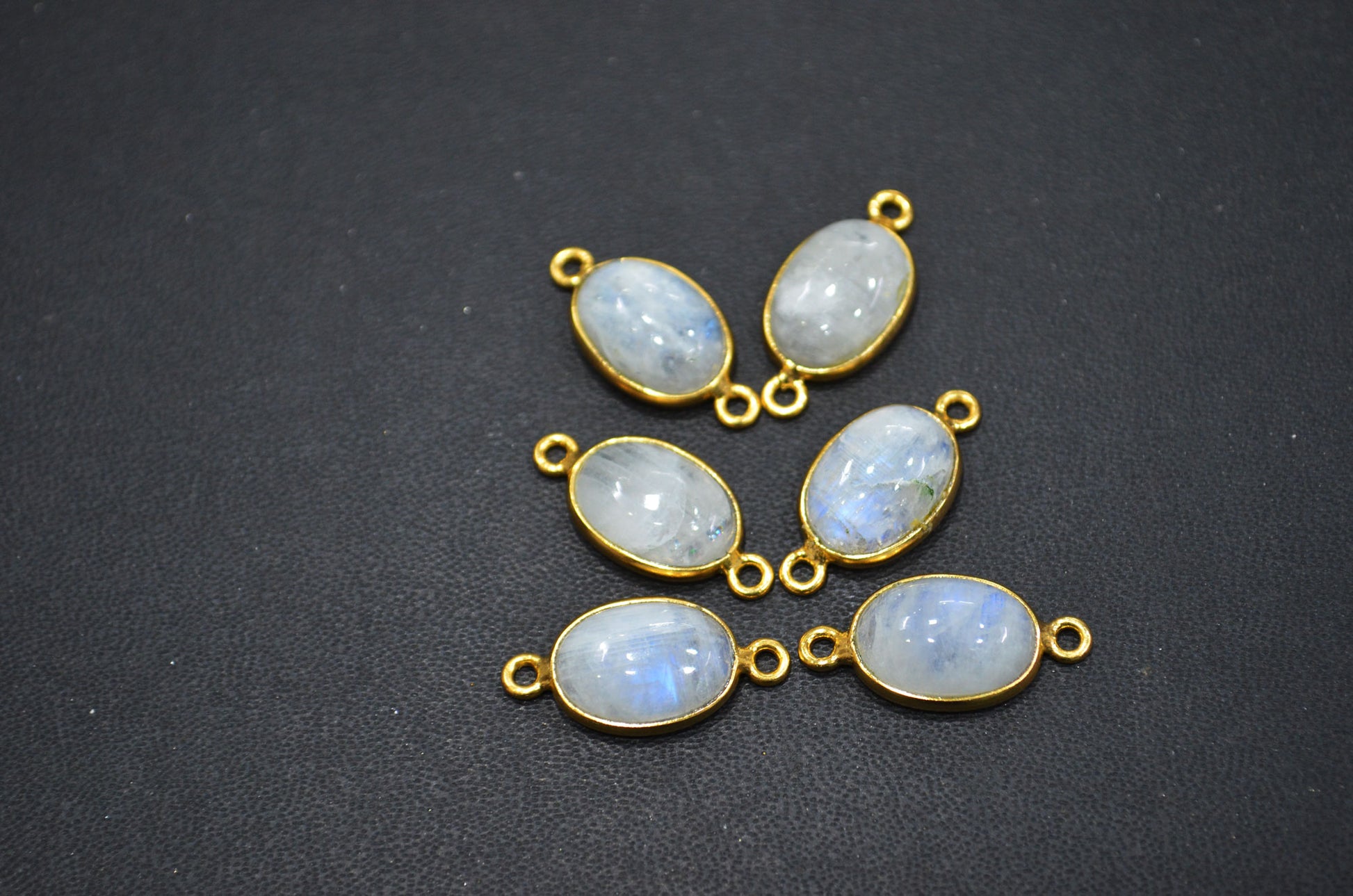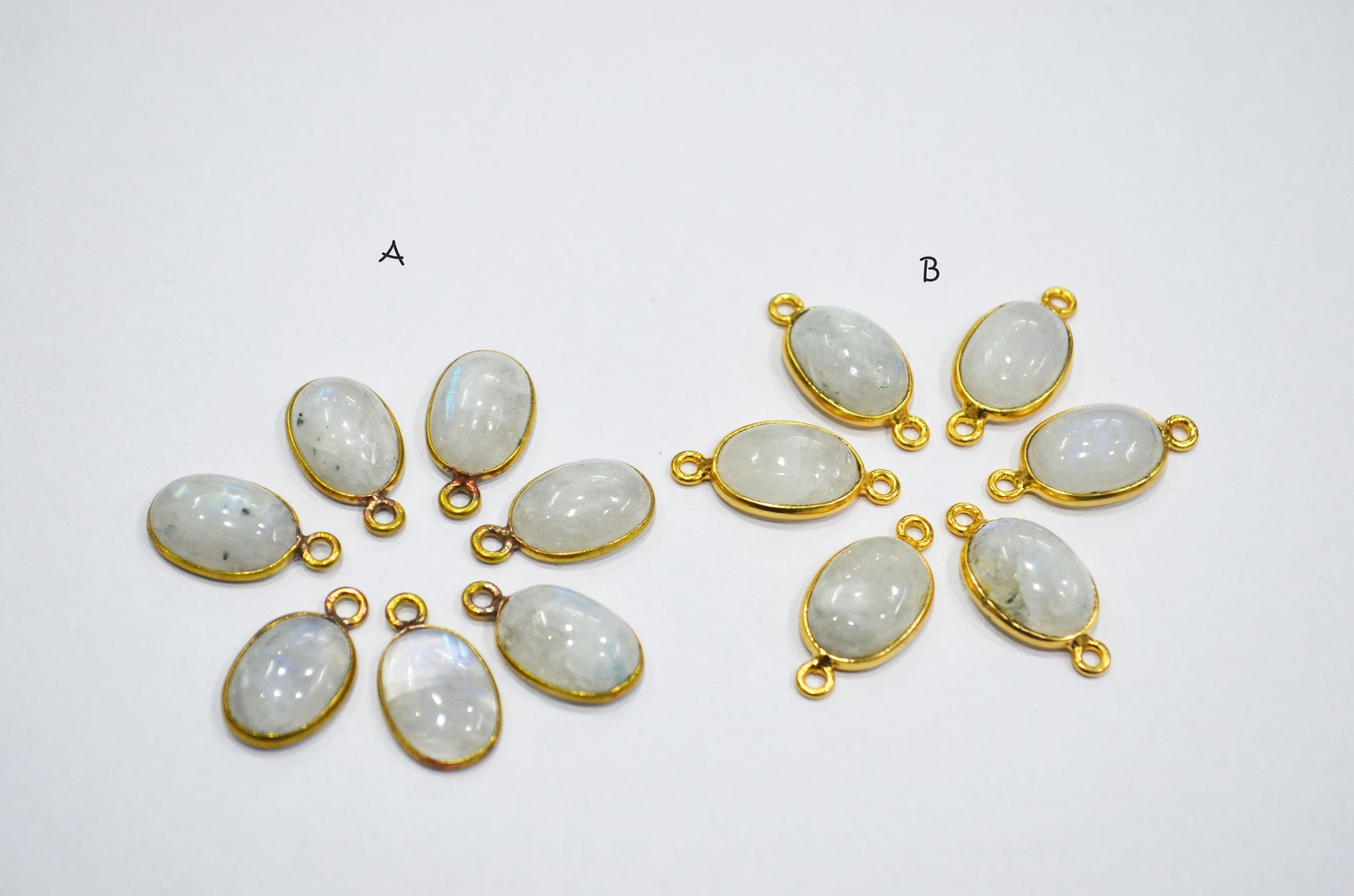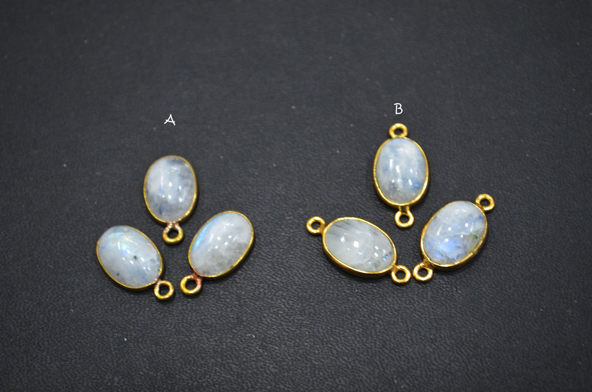 Rainbow Moonstone Smooth Oval Shape Single And Double Bail Connector , Rainbow Moonstone Cabochon Bezel Connector , Sold By Piece , 10x14 mm , RB-6237