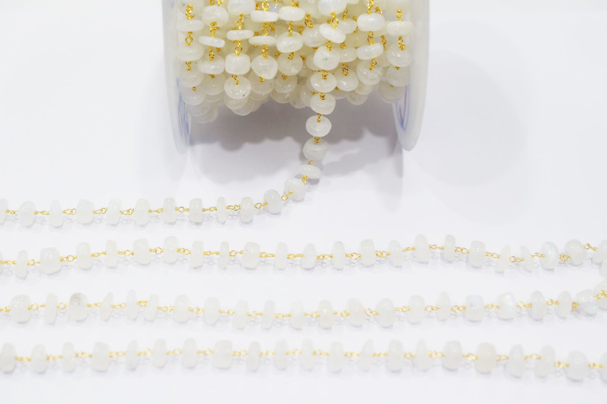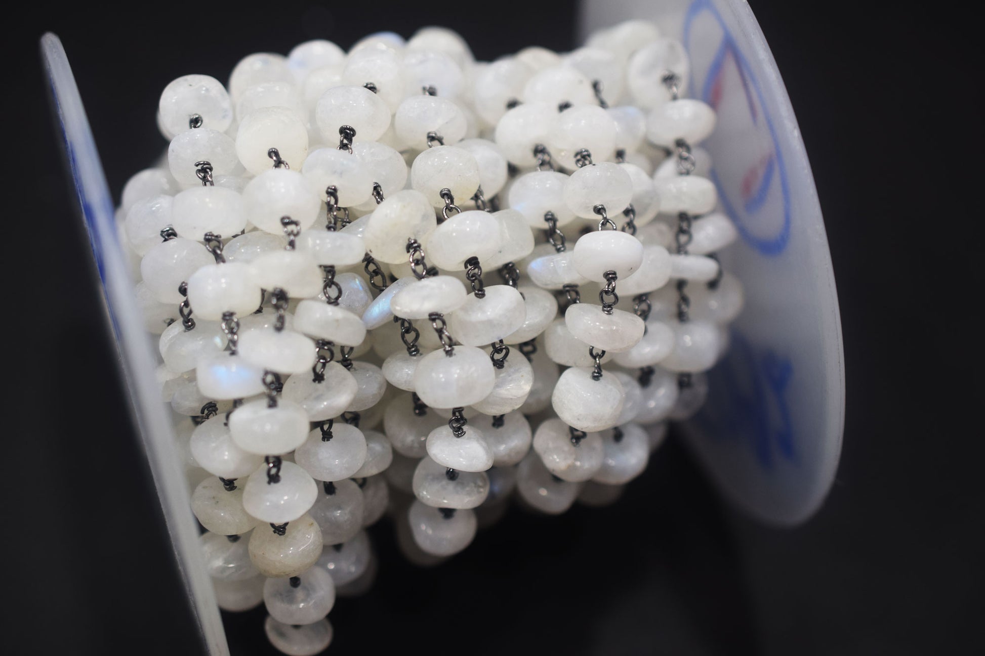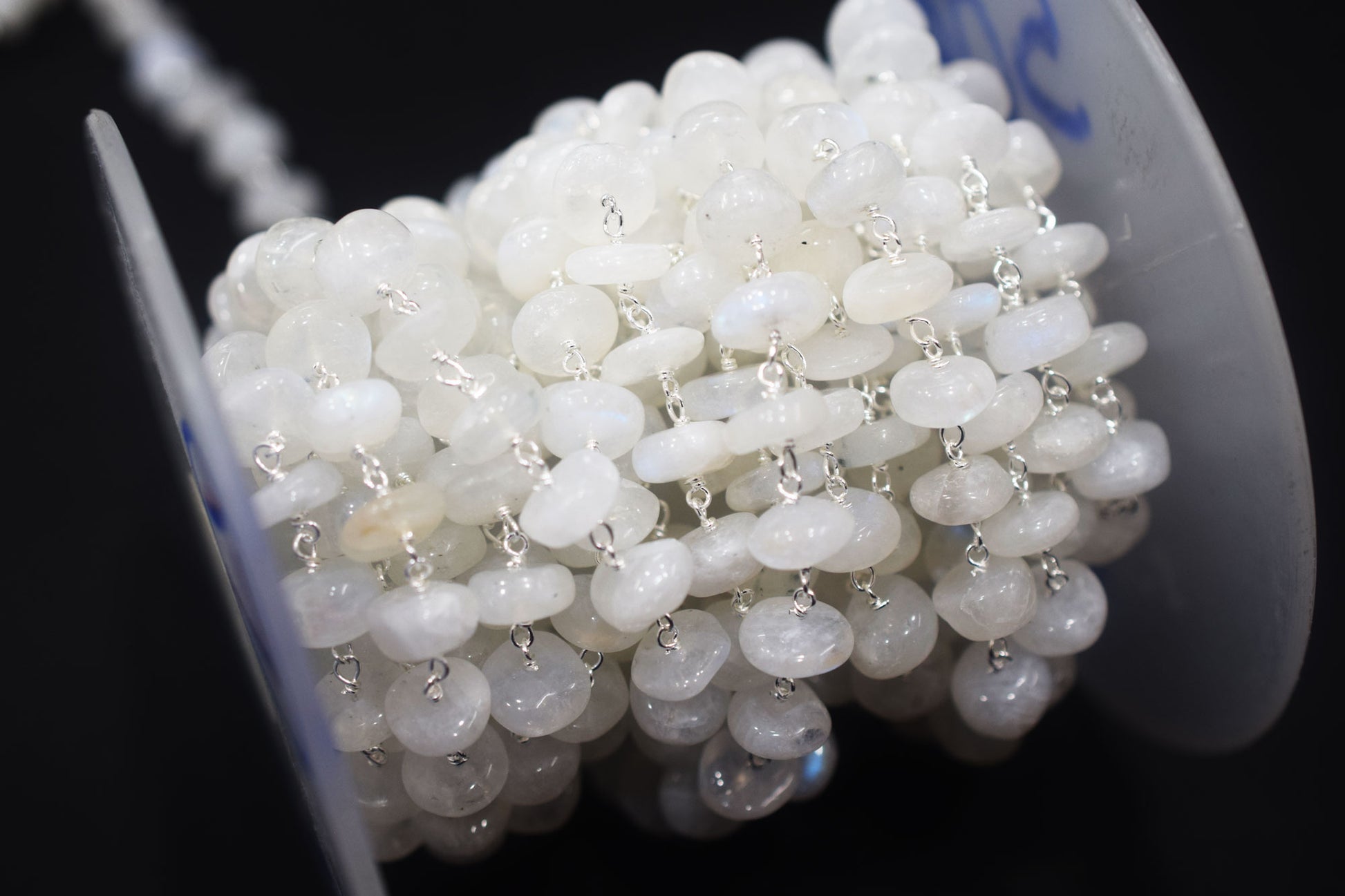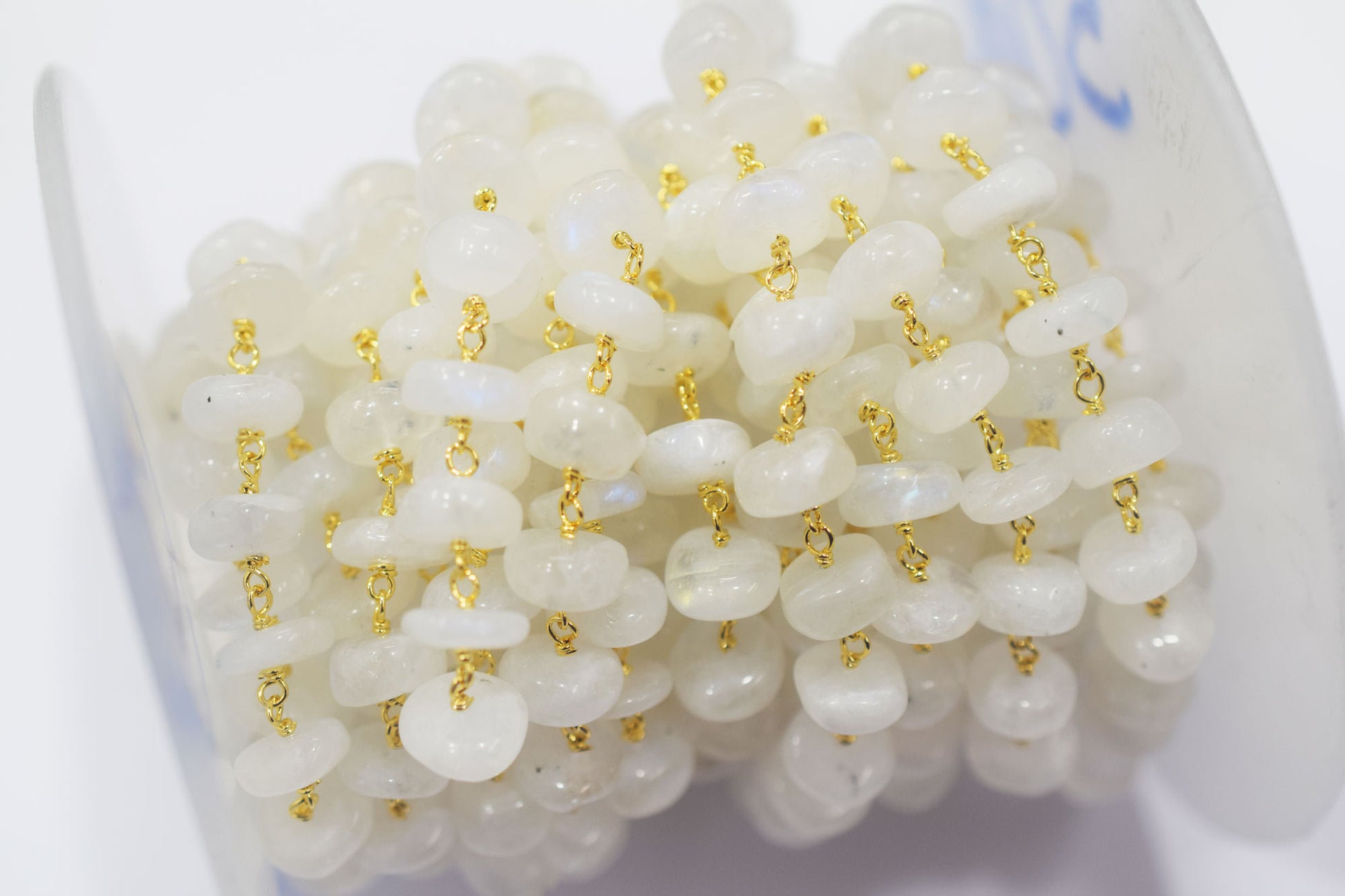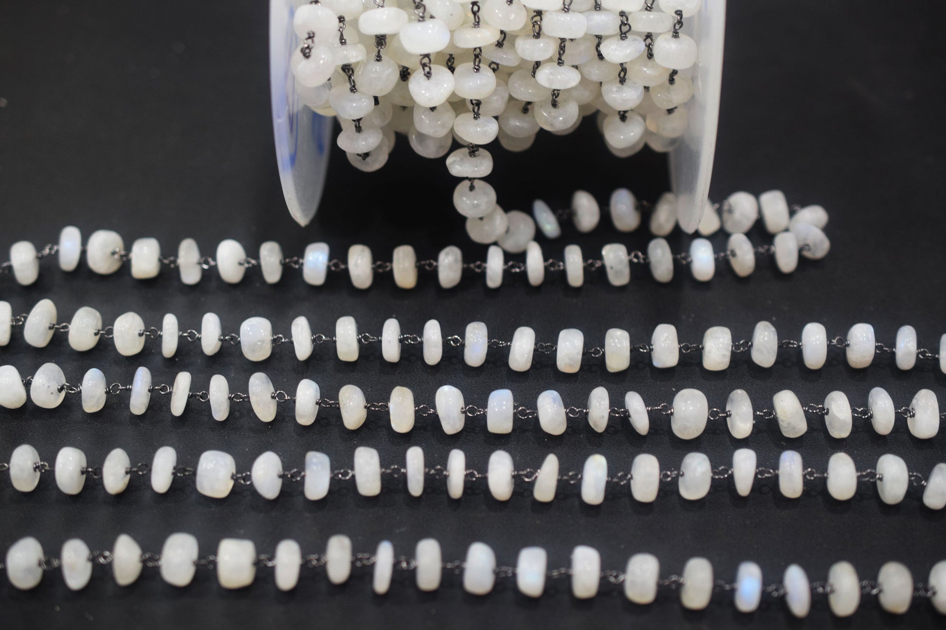 Rainbow Moonstone Smooth Rondelle Shape Rosary Beaded Chain , Rainbow Moonstone Wire Wrapped Chain , 8 - 9 mm , RB-6478