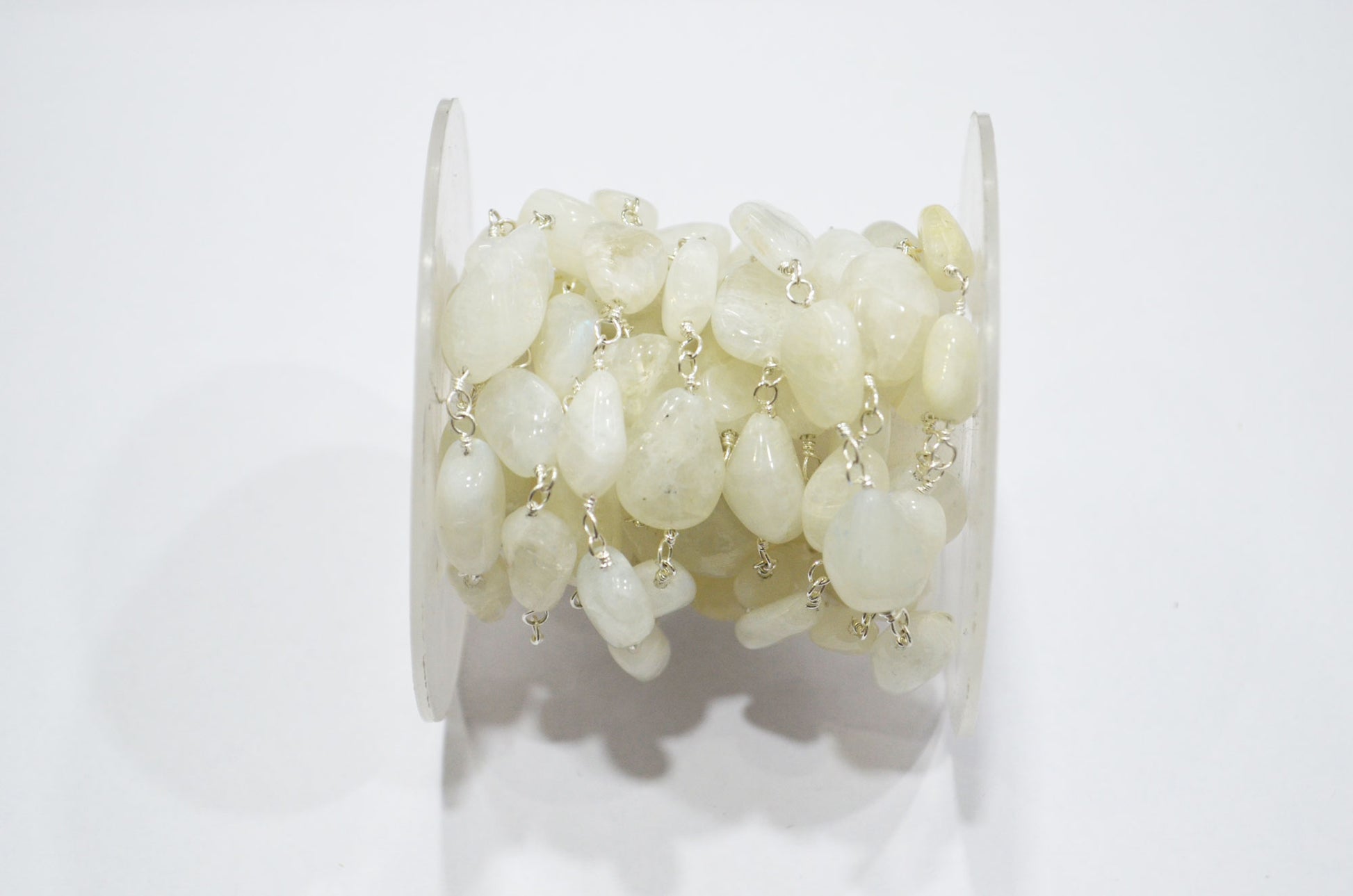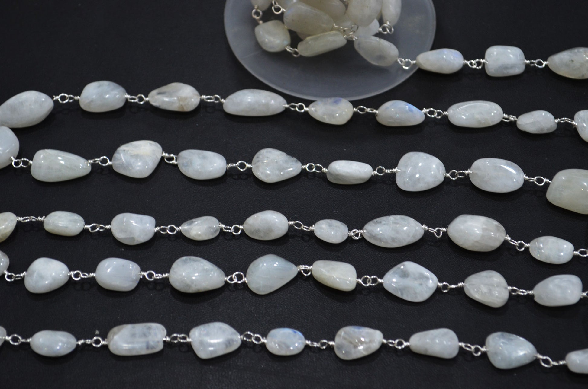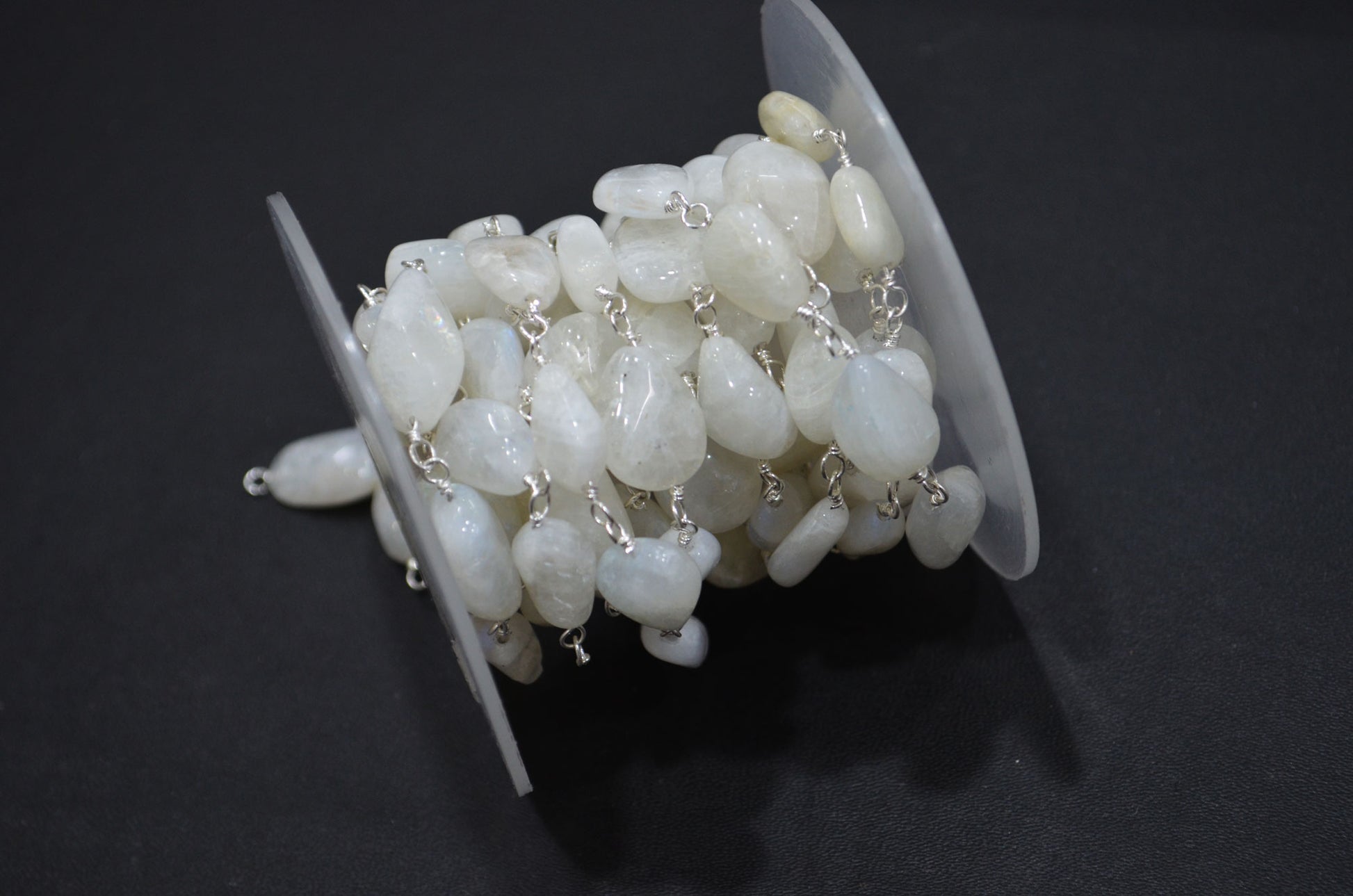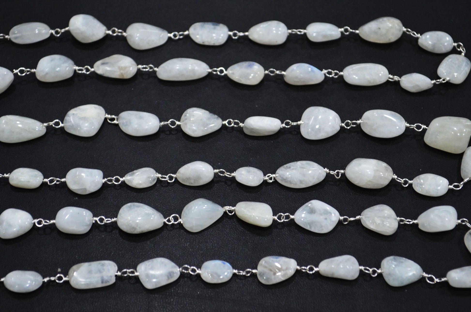 Rainbow Moonstone Smooth Rosary Beaded Chain , Rainbow Moonstone Tumble Shape Wire Wrapped Chain , 8 - 14 mm , RB-6006