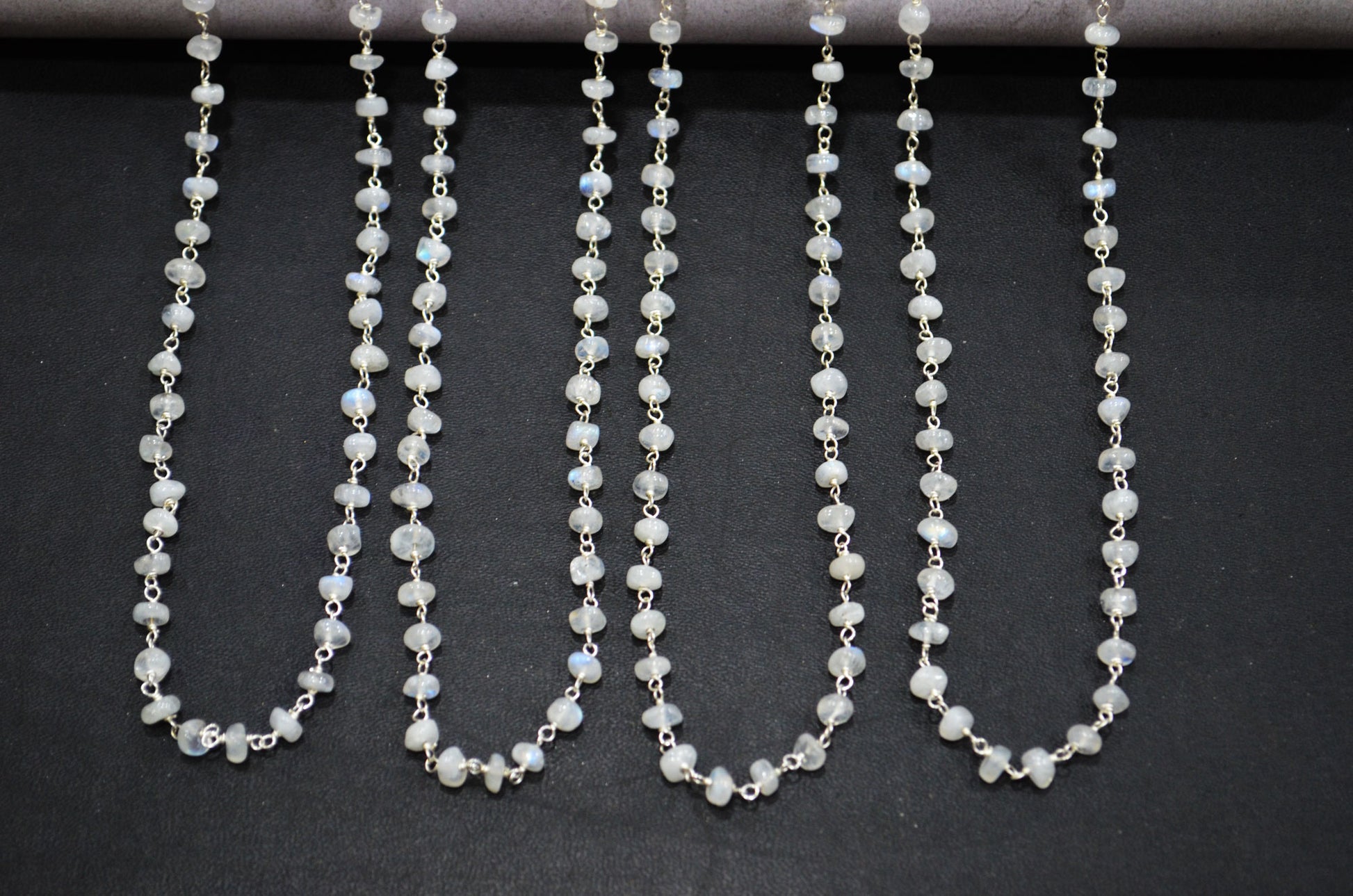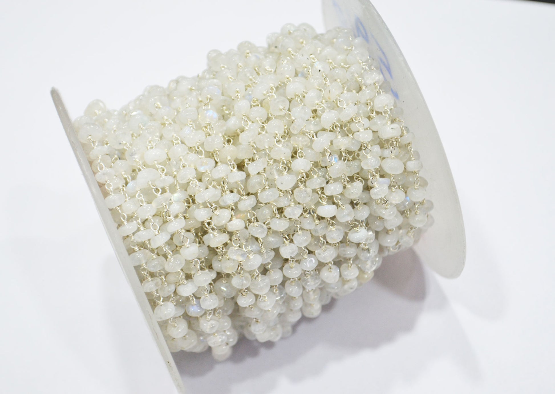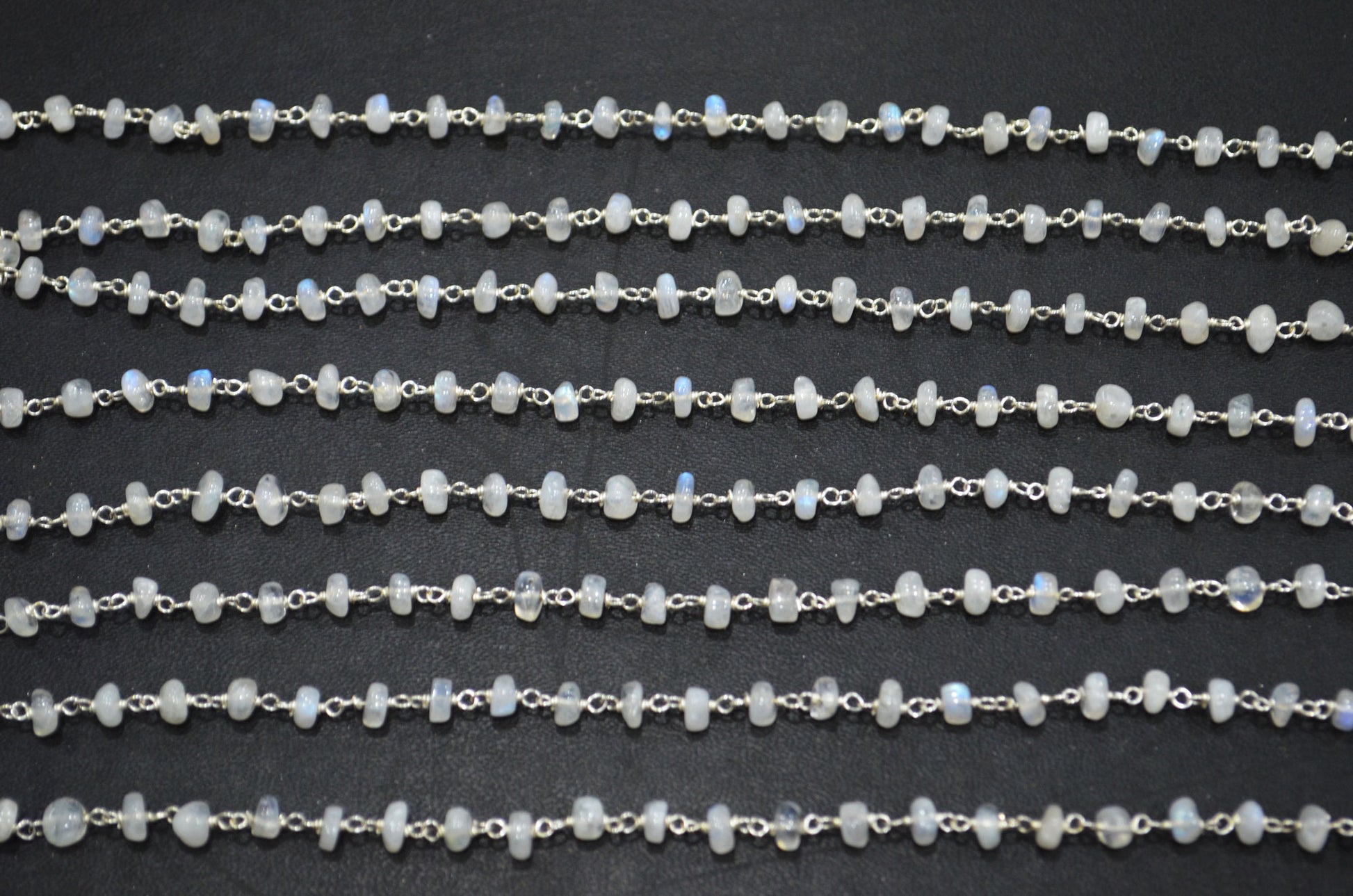Rainbow Moonstone Smooth Uneven Rondelle Shape Rosary Beaded Chain , Rainbow Moonstone Wire Wrapped Chain , 4.50 - 5 mm , RB-5918