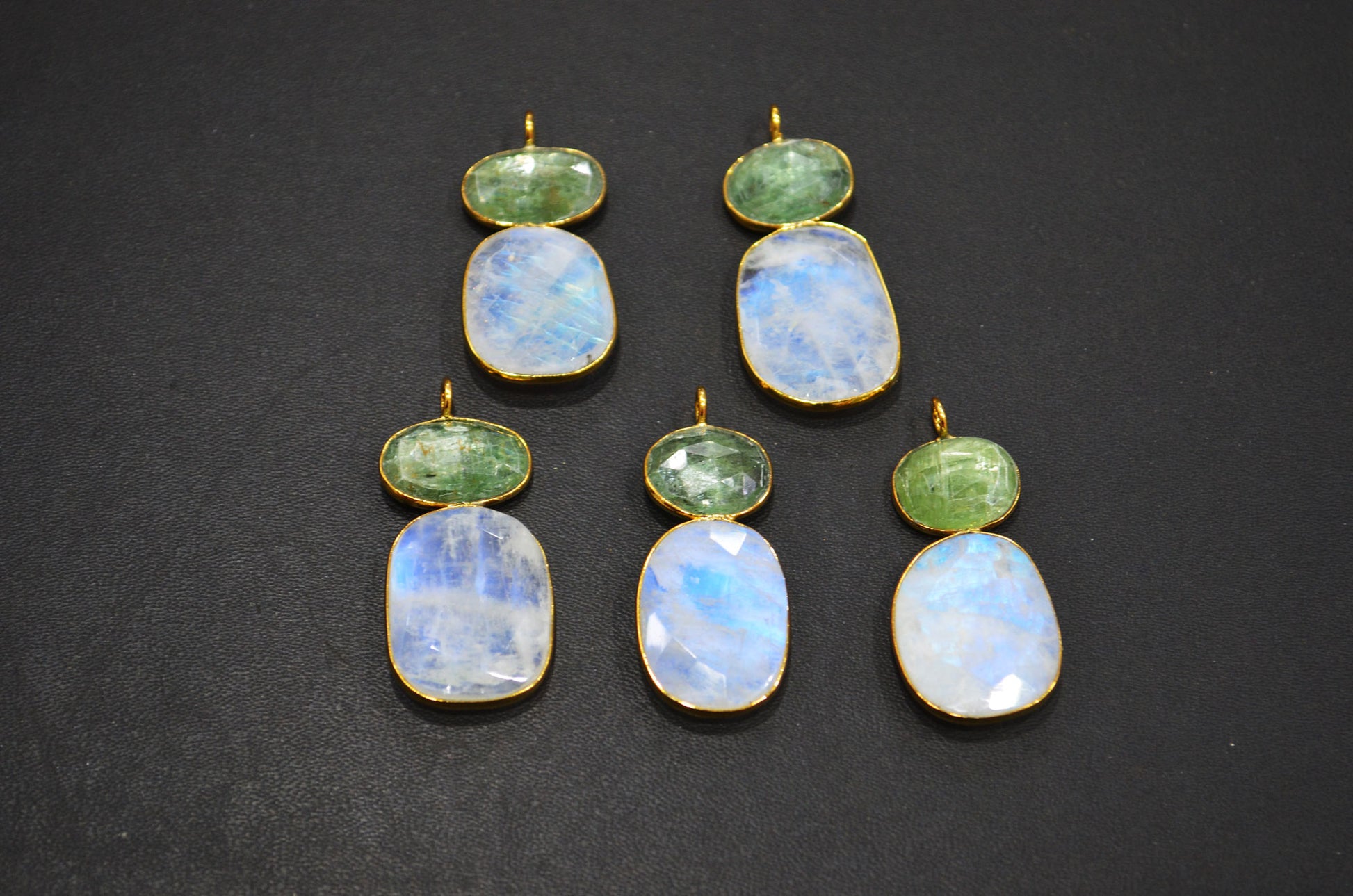 Rainbow Moonstone Faceted Fancy Shape Connector , Green Kyanite Faceted Single Bail Bezel Connector , Sold By Piece , 38 - 45 mm , 32493