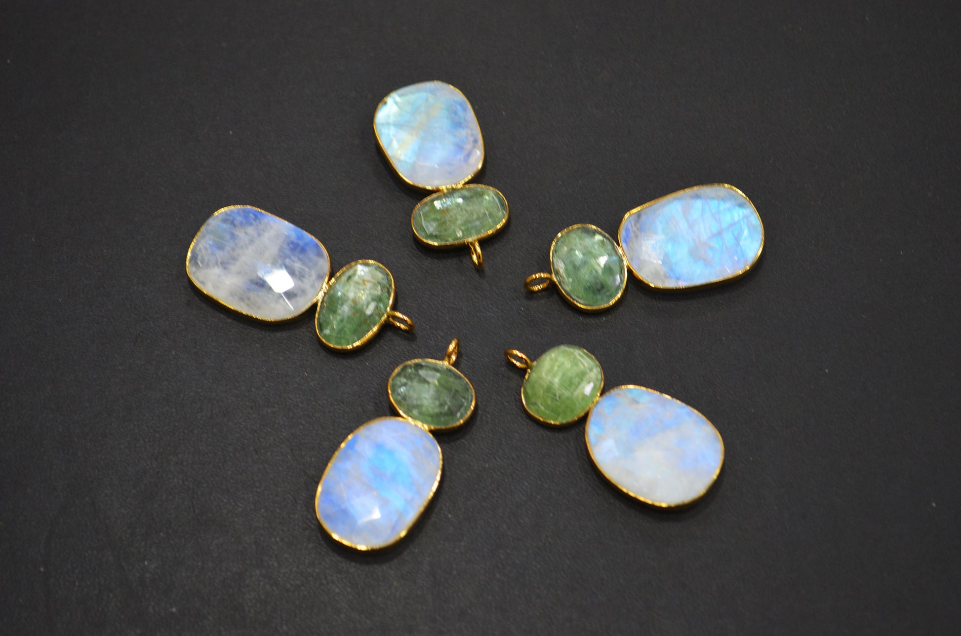 Rainbow Moonstone With Green Kyanite Fancy Shape Connector , Sold By Piece , 38 - 45 mm , 32493