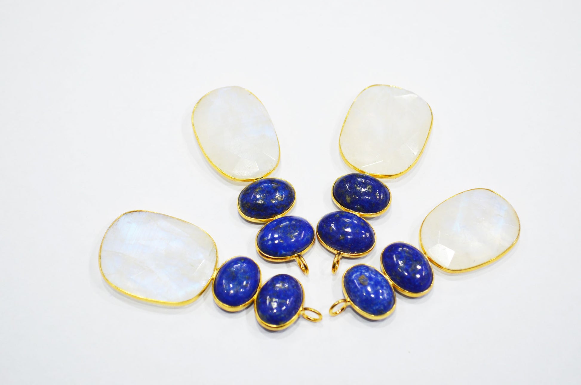 Rainbow Moonstone With Lapis Lazuli Fancy Shape Connector , Sold By Piece , 55 - 63 mm , 32495